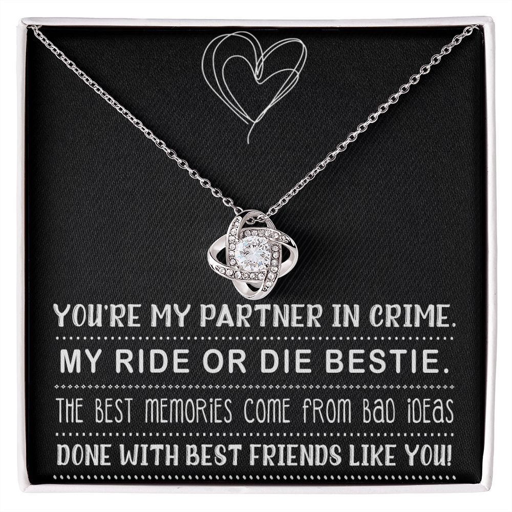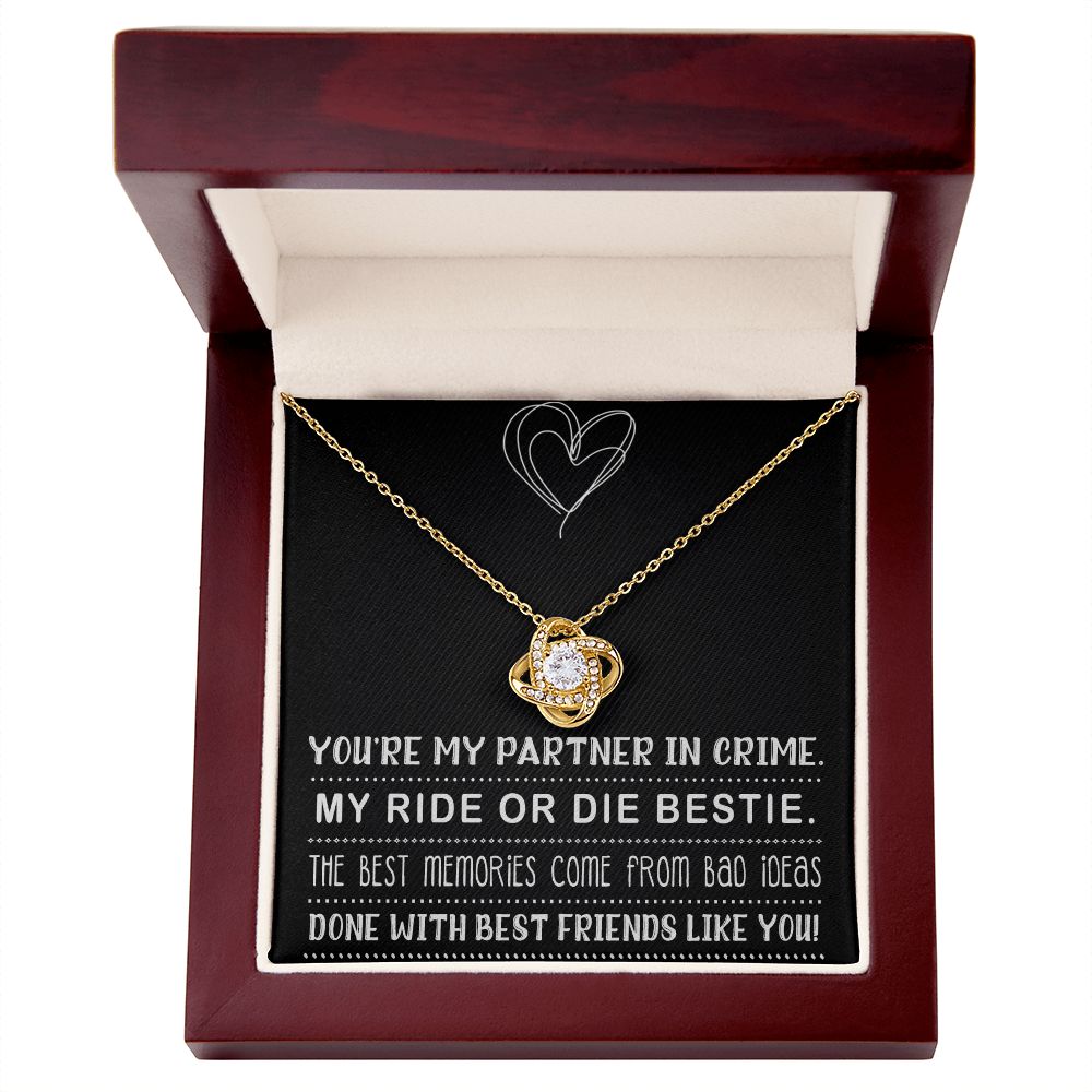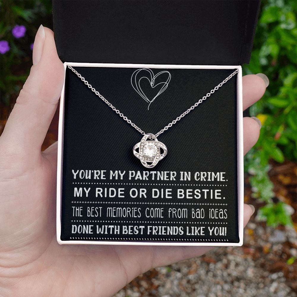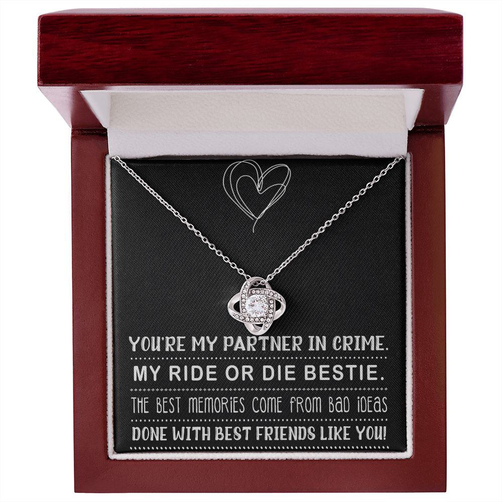 MY RIDE OR DIE BESTIE, LOVE KNOT NECKLACE WITH MESSAGE CARD, FOR FRIENDS, BFF, BIRTHDAY, FRIENDSHIP DAY GIFT FOR HER