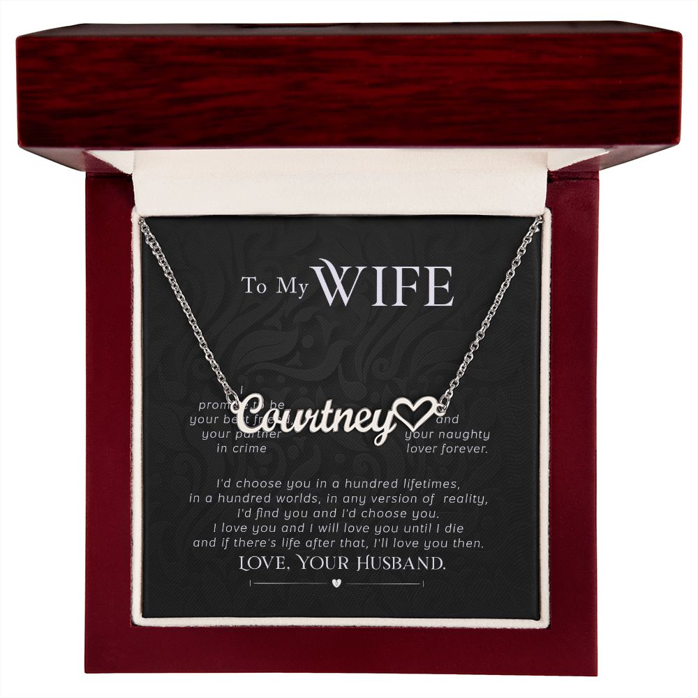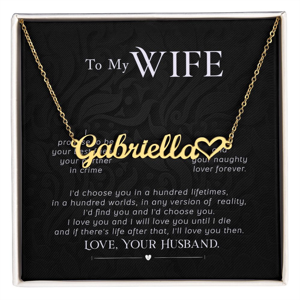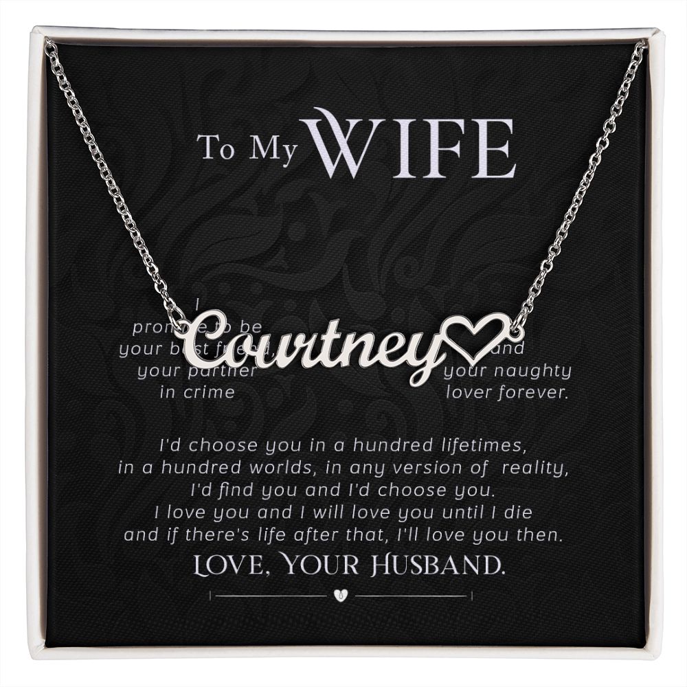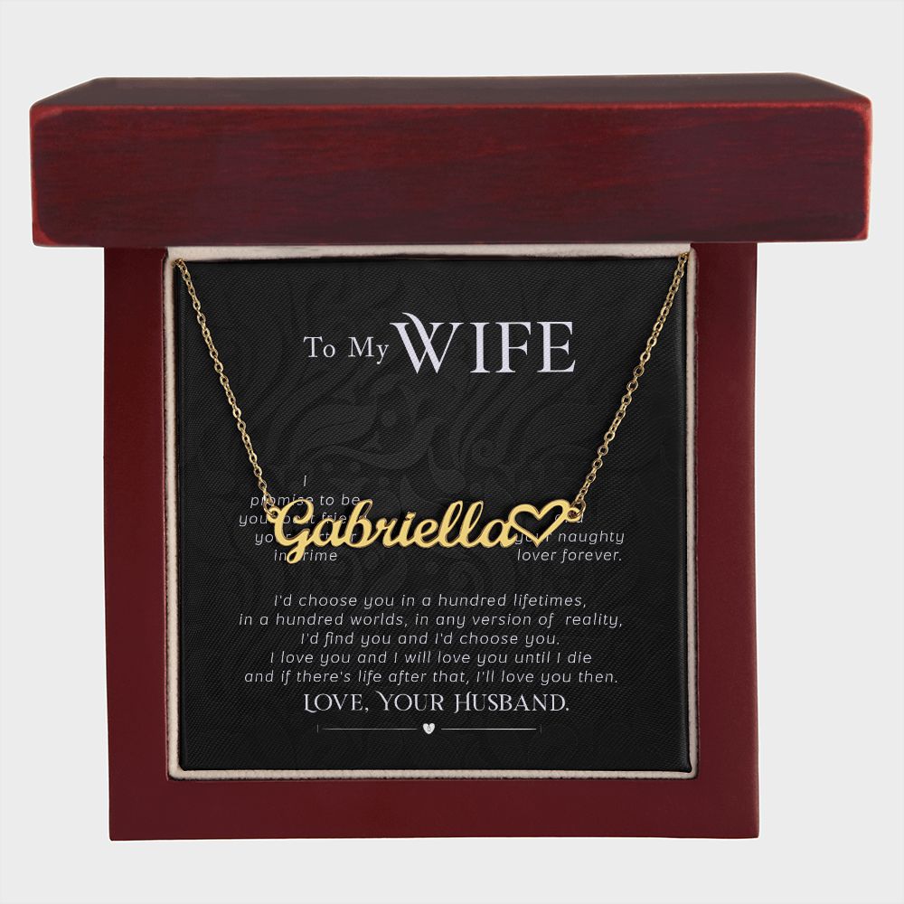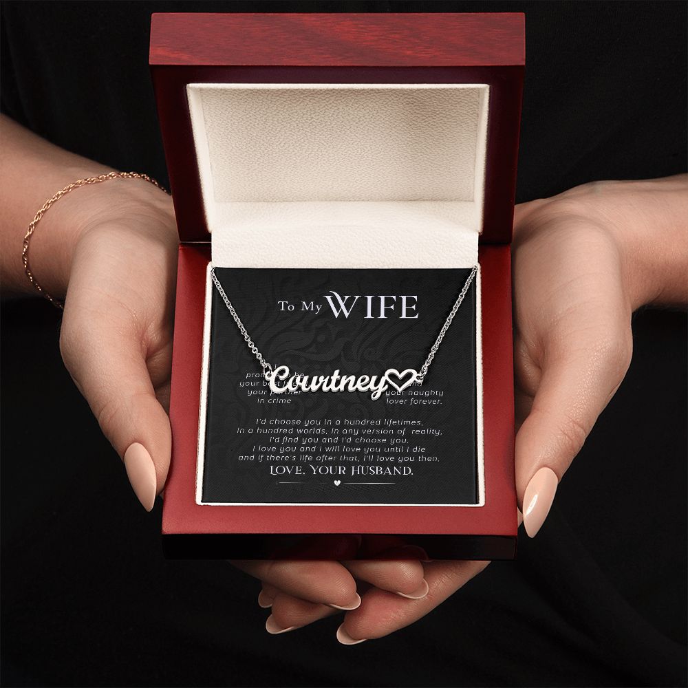 MY WIFE, CUSTOM NAME WITH HEART NECKLACE, GIFT FOR HER, NECKLACE PENDANT WITH MESSAGE CARD, FOR WIFE FROM HUSBAND