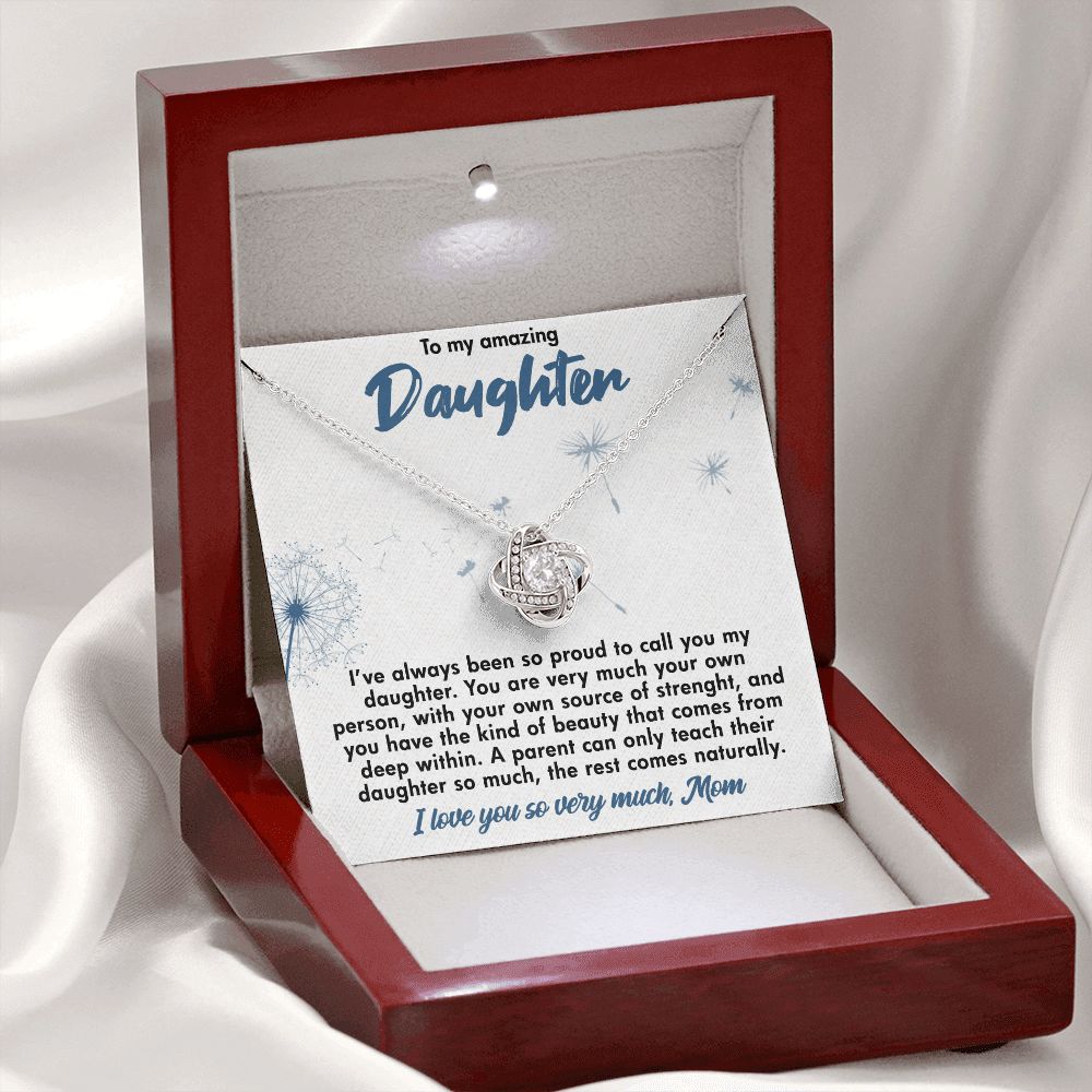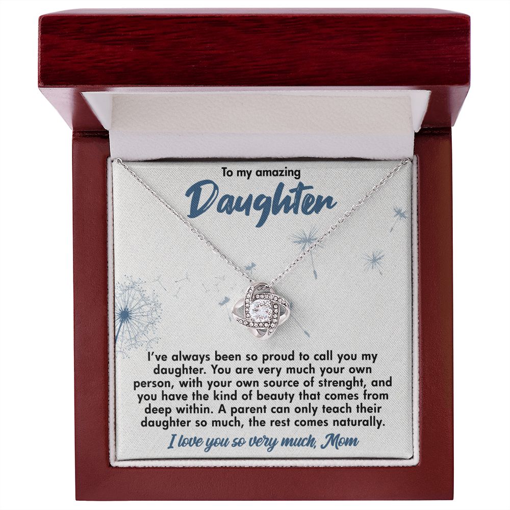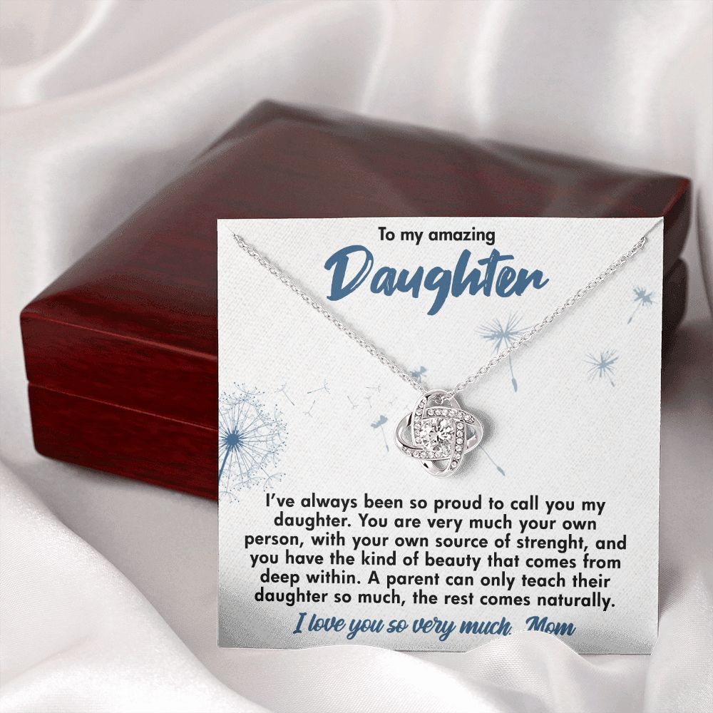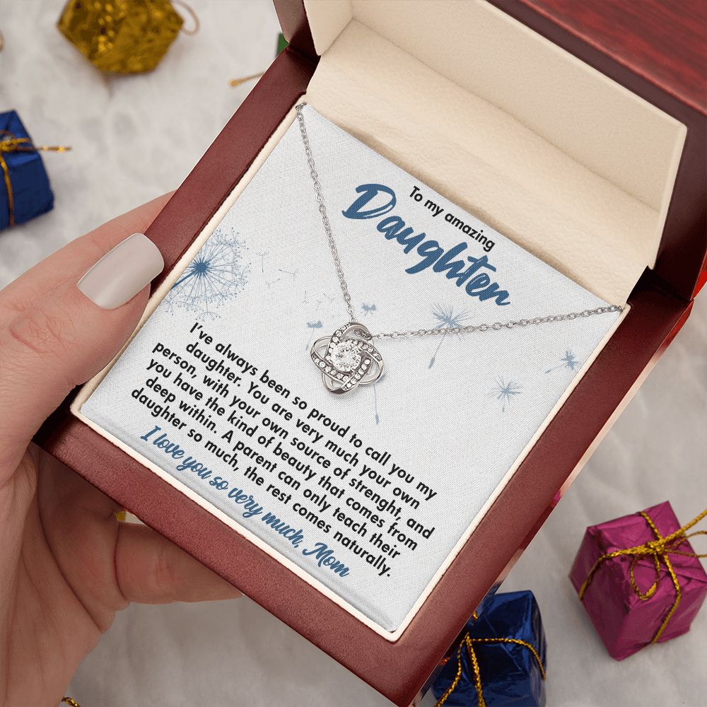 TO MY AMAZING DAUGHTER, LOVE KNOT NECKLACE WITH BEAUTIFUL MESSAGE CARD, BIRTHDAY GIFT FOR HER, UNIQUE GIFT