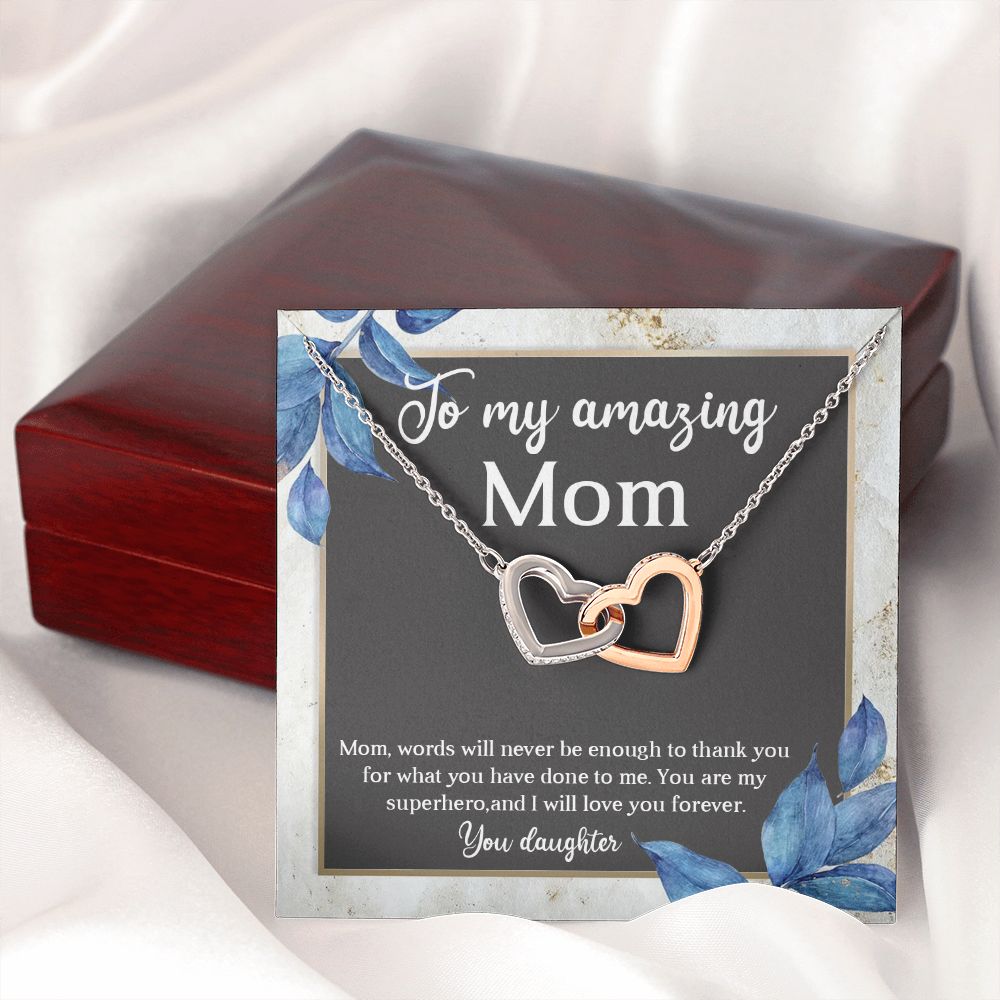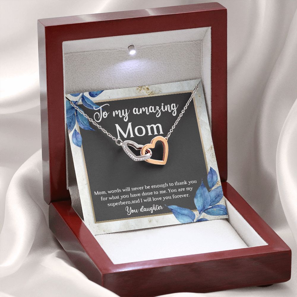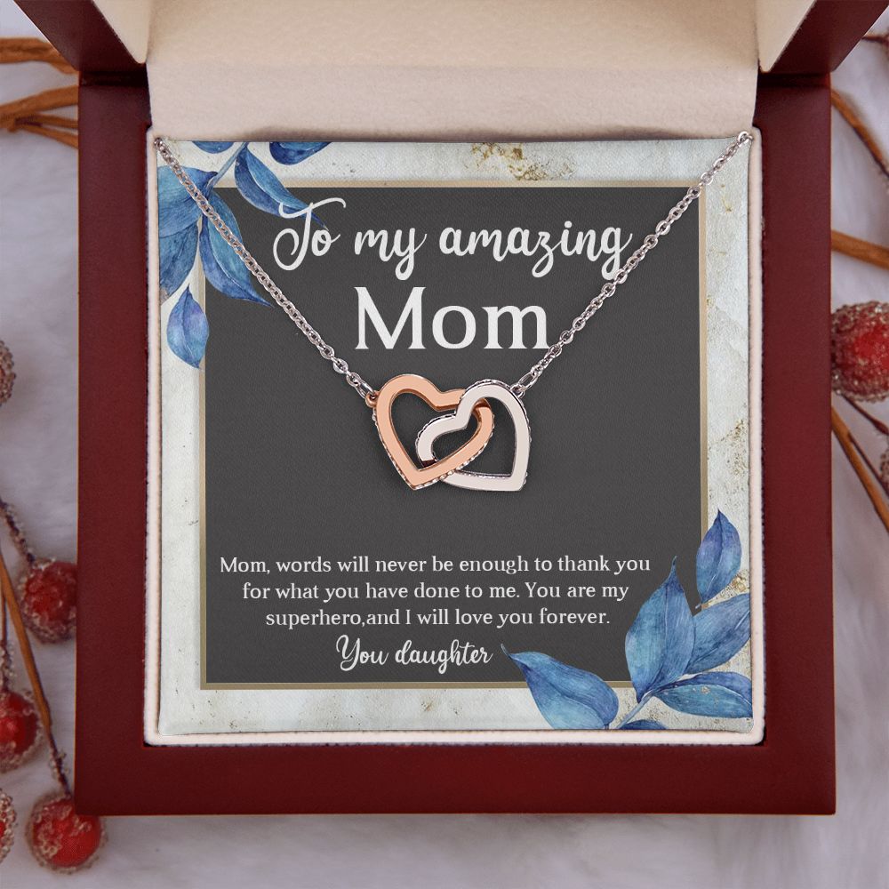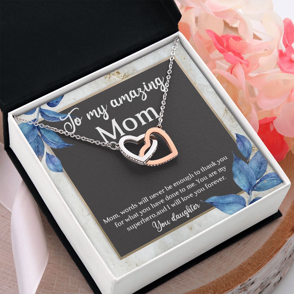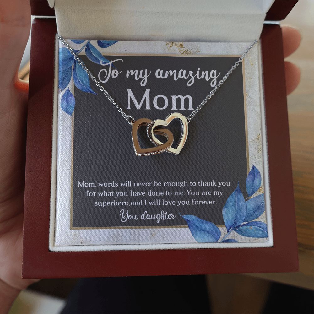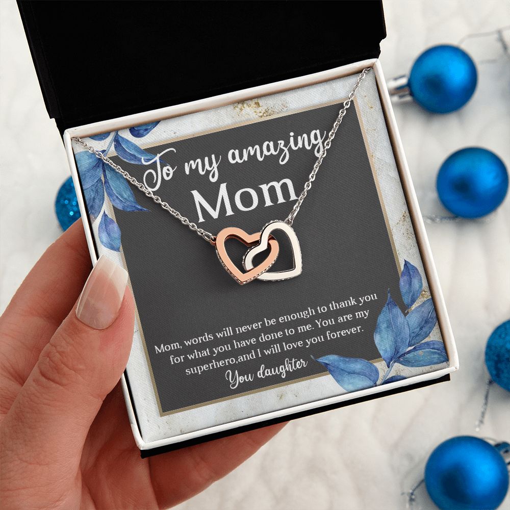TO MY AMAZING MOM, INTERLOCKING HEART NECKLACE FOR MOM, NECKLACE WITH MESSAGE CARD, BIRTHDAY, MOTHER'S DAY GIFT FOR HER
