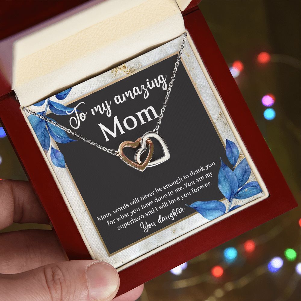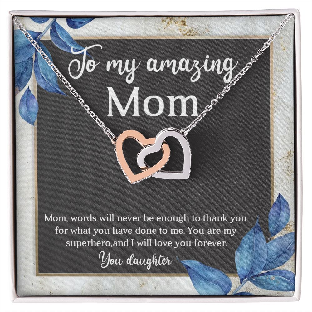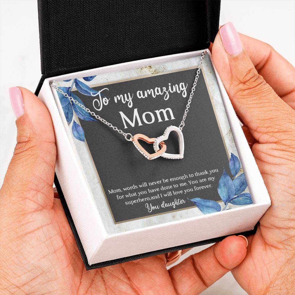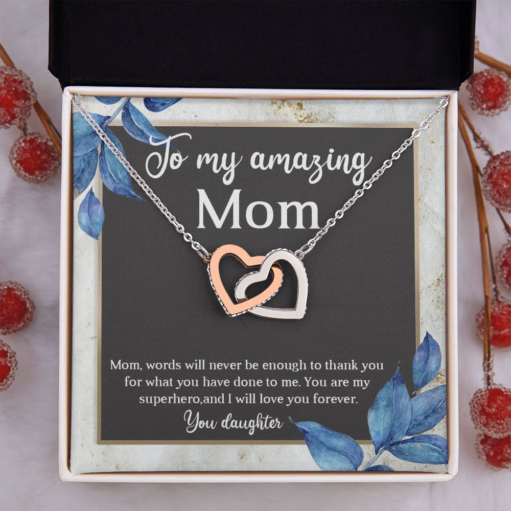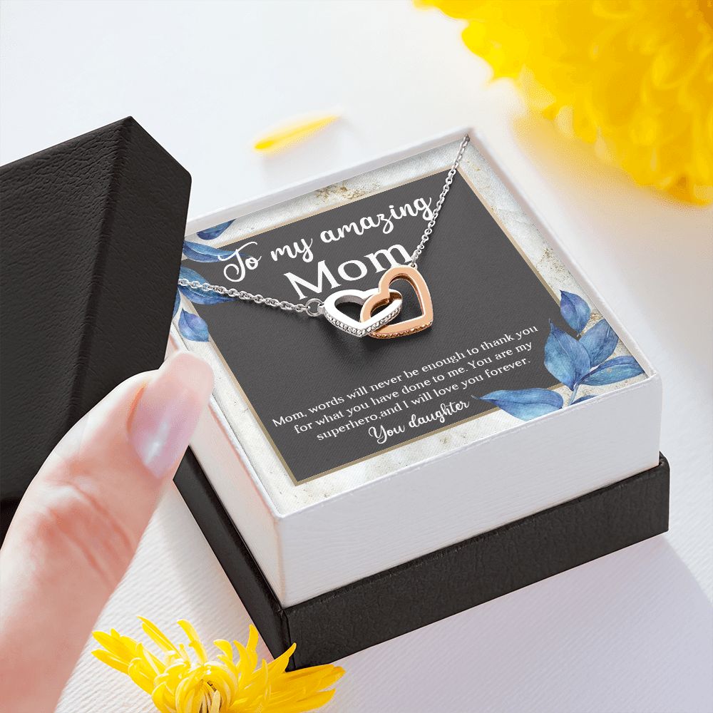 TO MY AMAZING MOM, INTERLOCKING HEART NECKLACE FOR MOM, NECKLACE WITH MESSAGE CARD, BIRTHDAY, MOTHER'S DAY GIFT FOR HER
