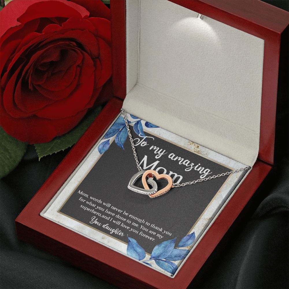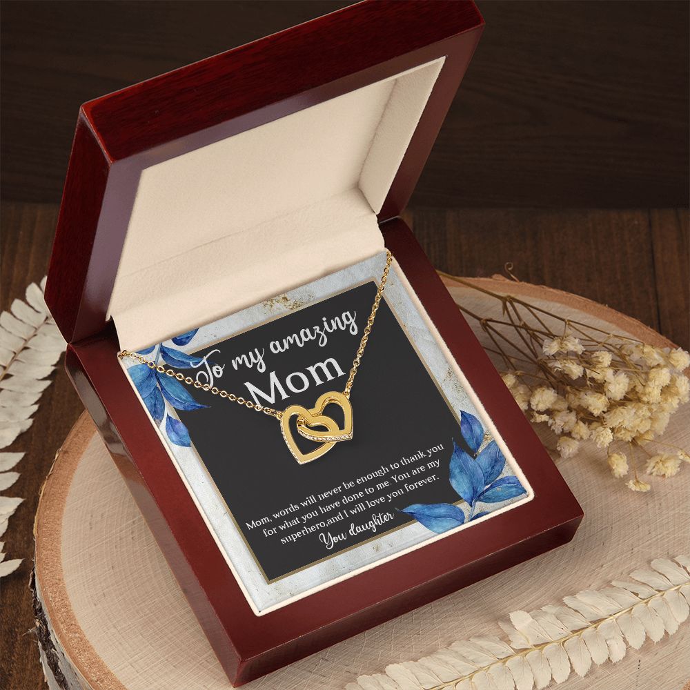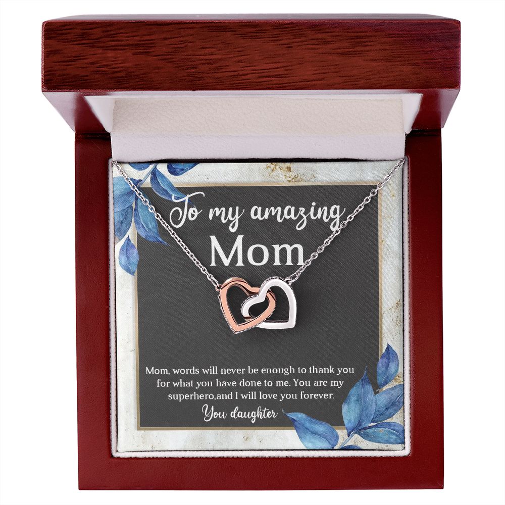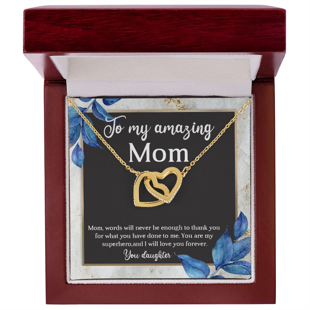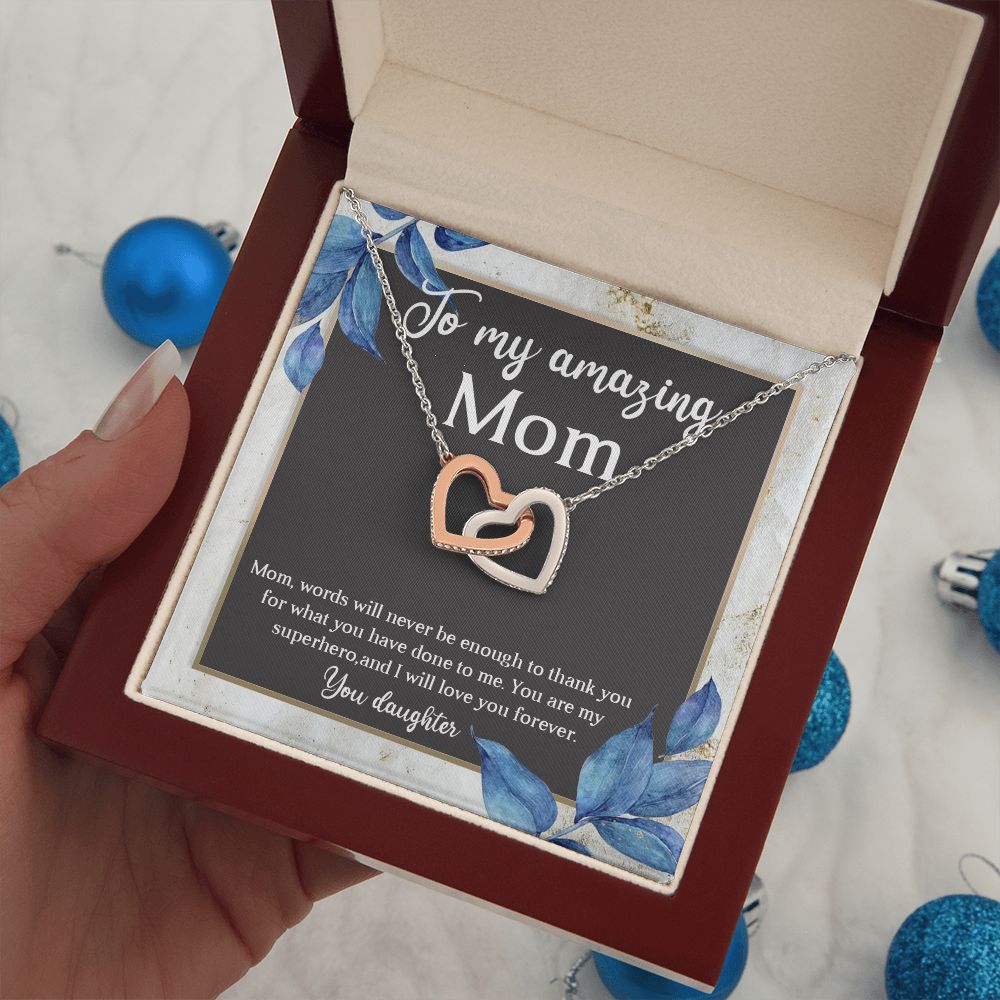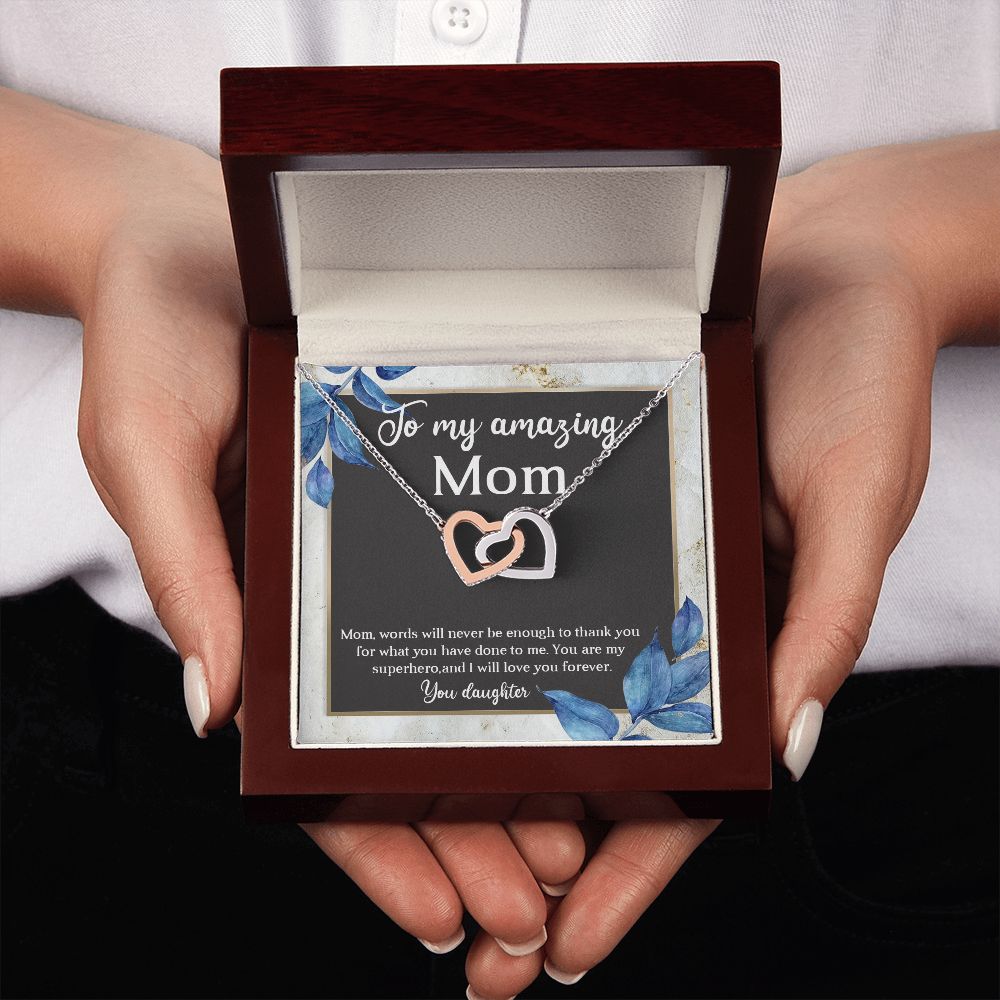 TO MY AMAZING MOM, INTERLOCKING HEART NECKLACE FOR MOM, NECKLACE WITH MESSAGE CARD, BIRTHDAY, MOTHER'S DAY GIFT FOR HER