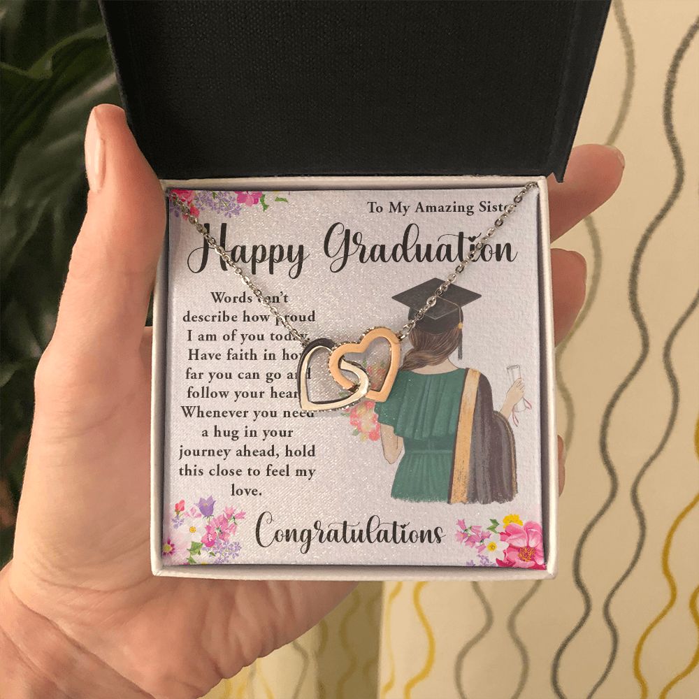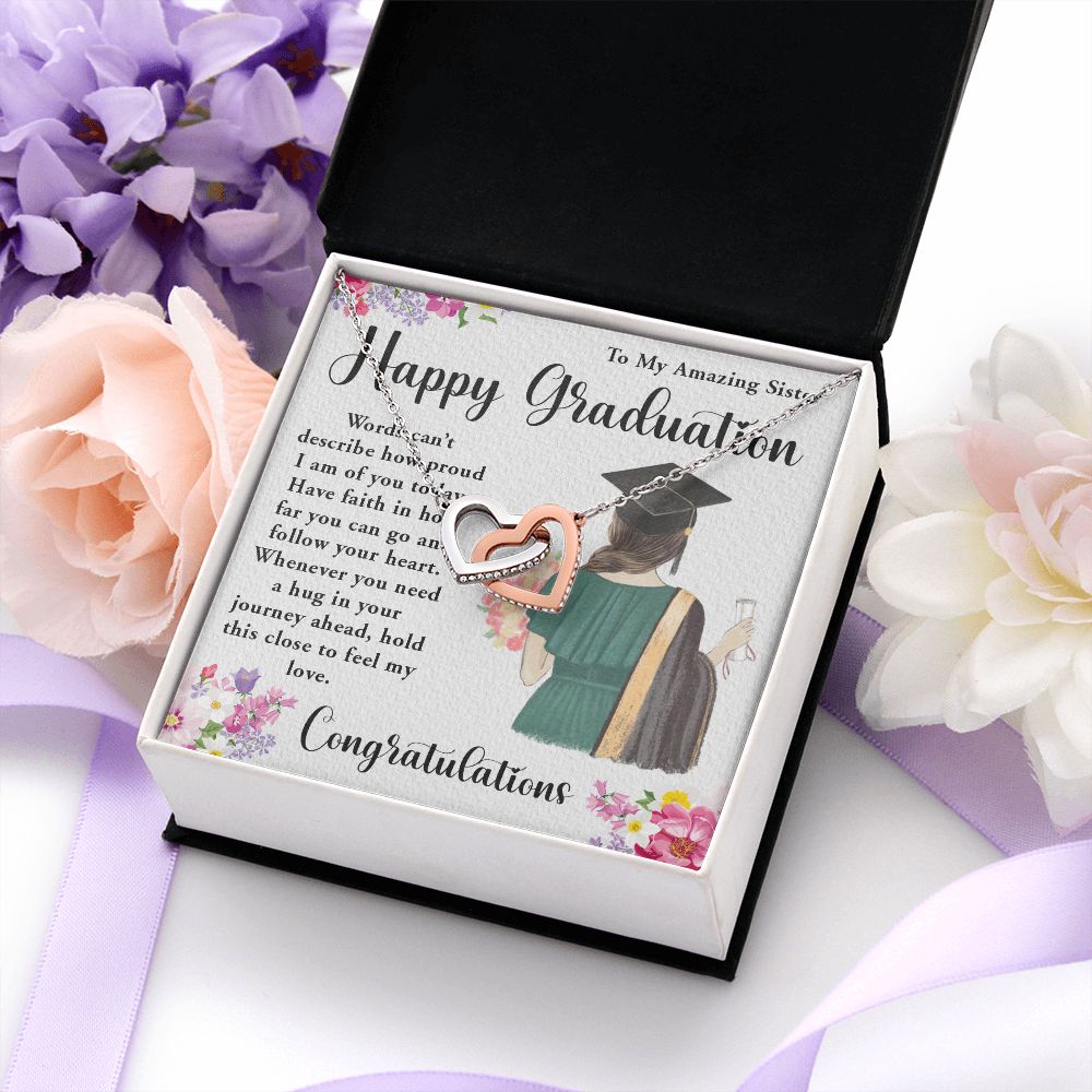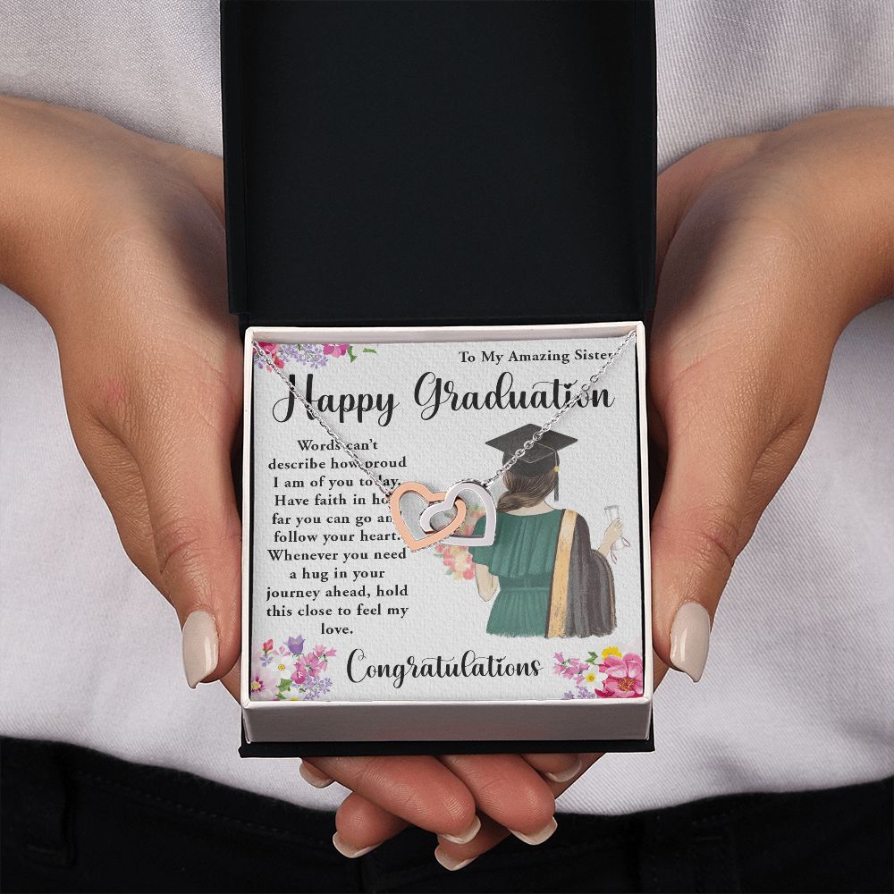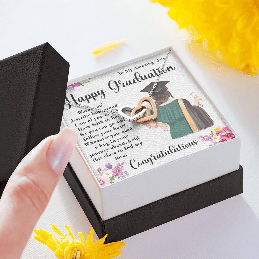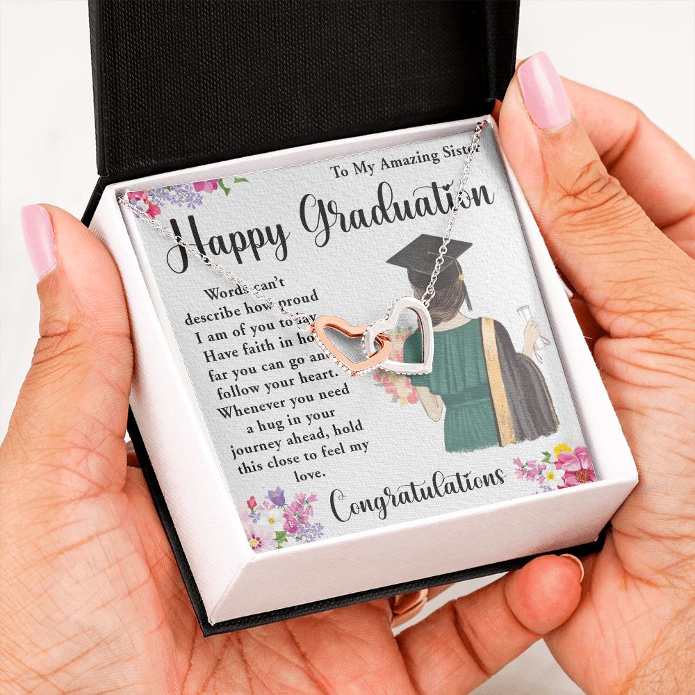 TO MY AMAZING SISTER, INTERLOCKING HEART NECKLACE FOR YOUR SISTER ON HER GRADUATION, CONGRATULATION GIFT FOR HER