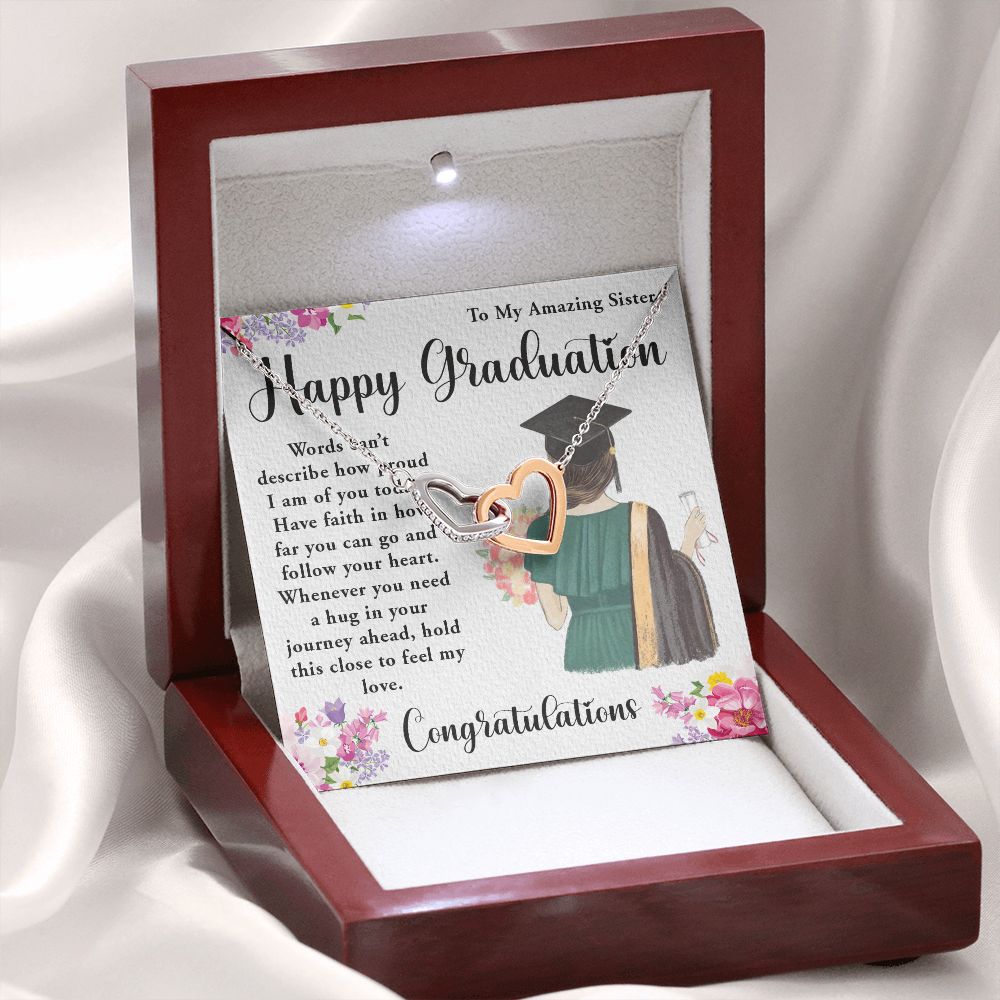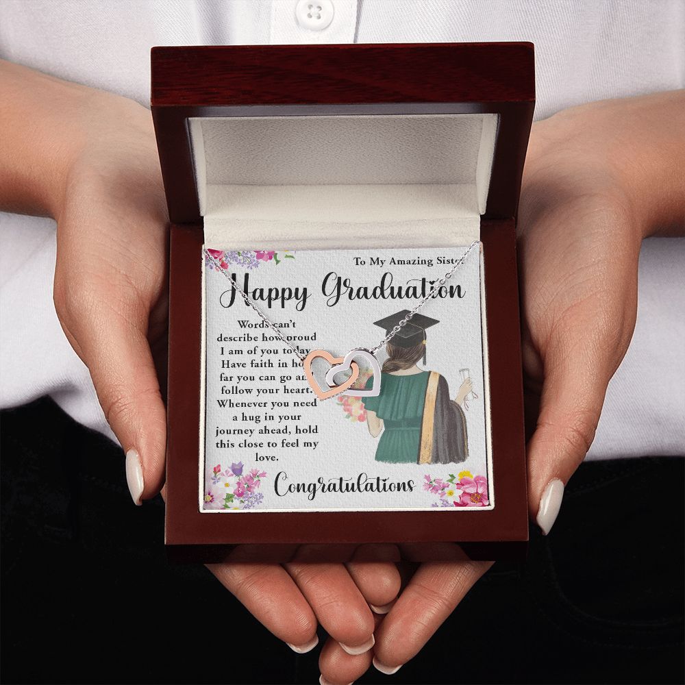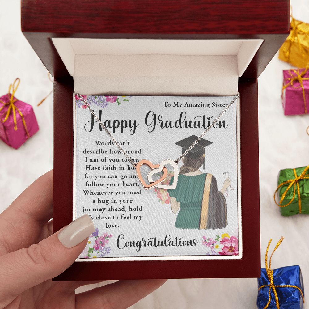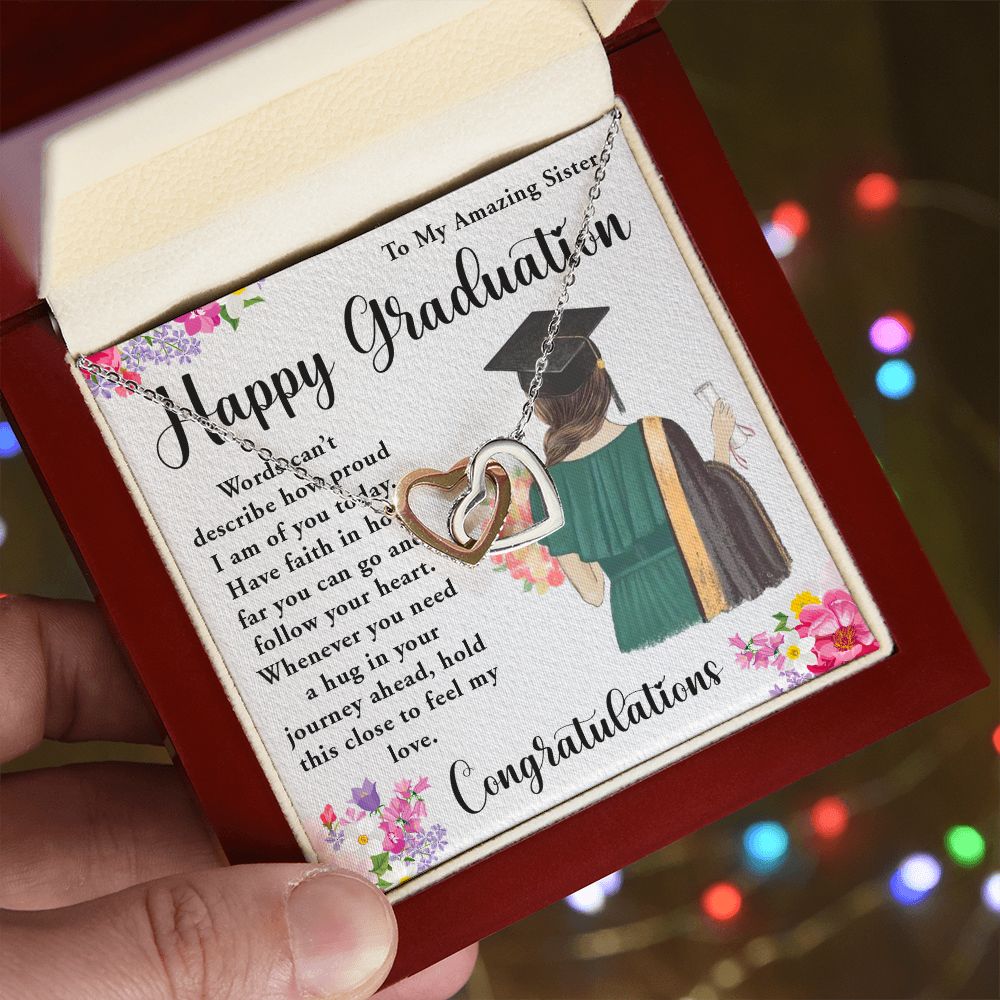 TO MY AMAZING SISTER, INTERLOCKING HEART NECKLACE FOR YOUR SISTER ON HER GRADUATION, CONGRATULATION GIFT FOR HER