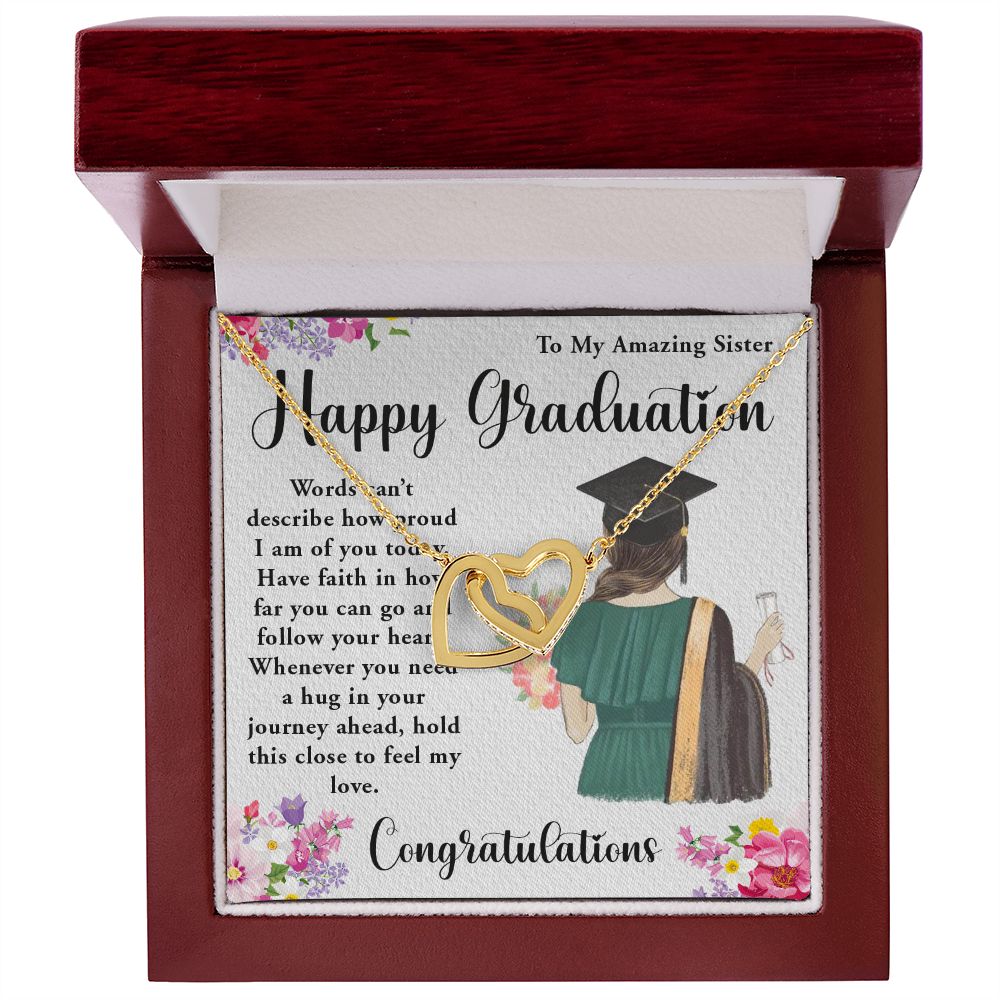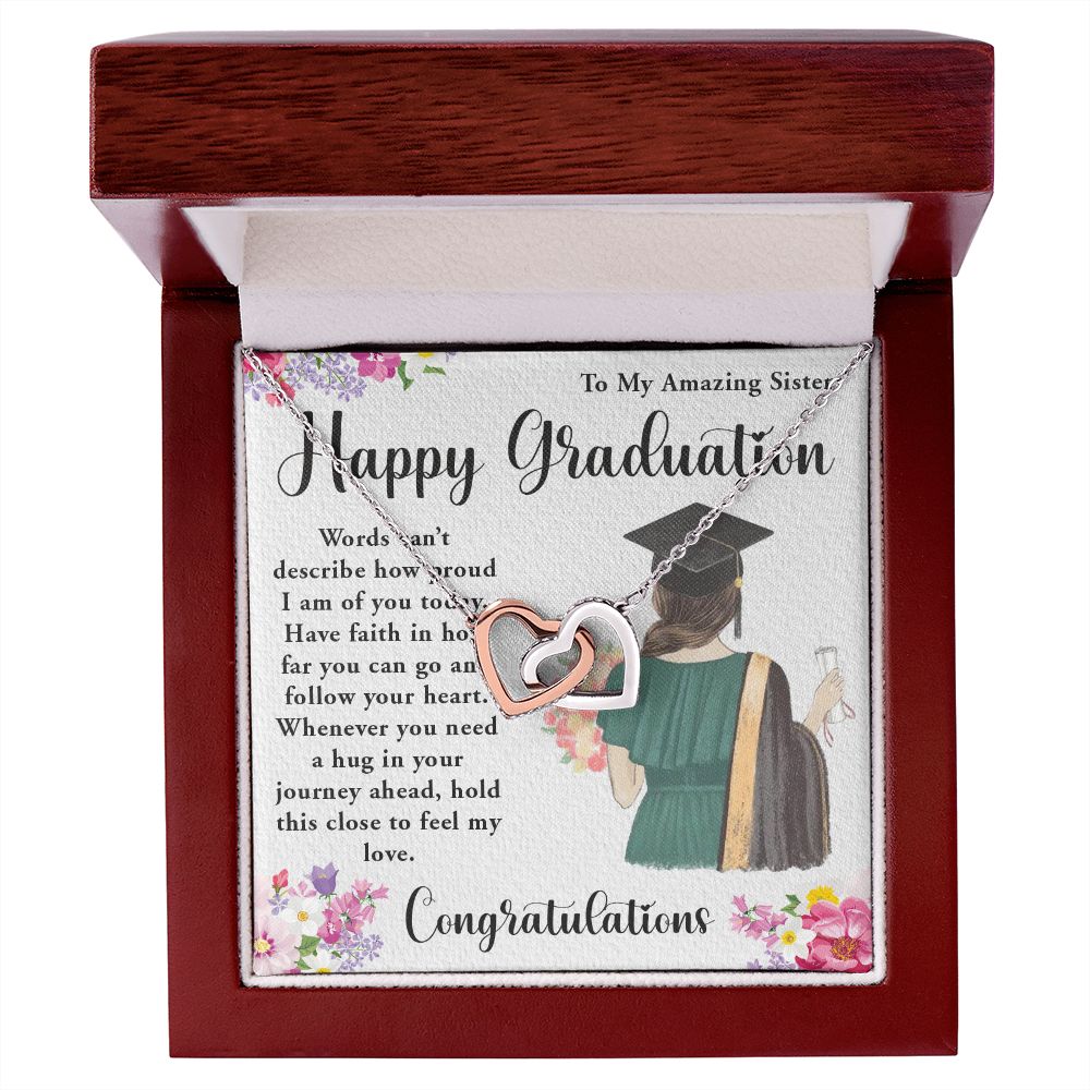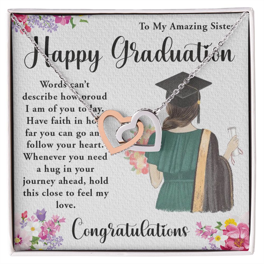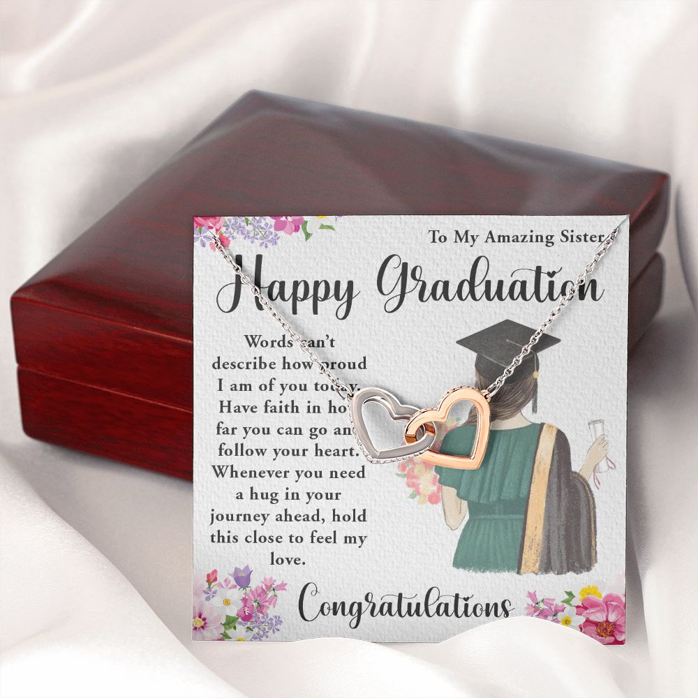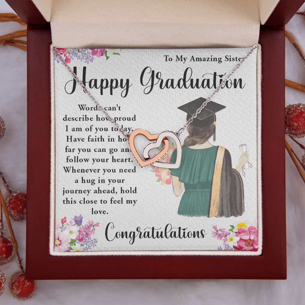 TO MY AMAZING SISTER, INTERLOCKING HEART NECKLACE FOR YOUR SISTER ON HER GRADUATION, CONGRATULATION GIFT FOR HER