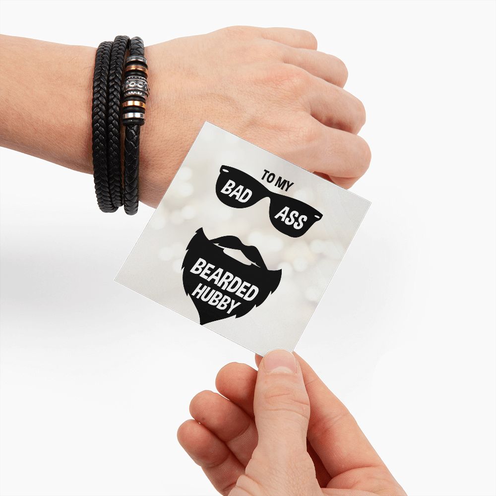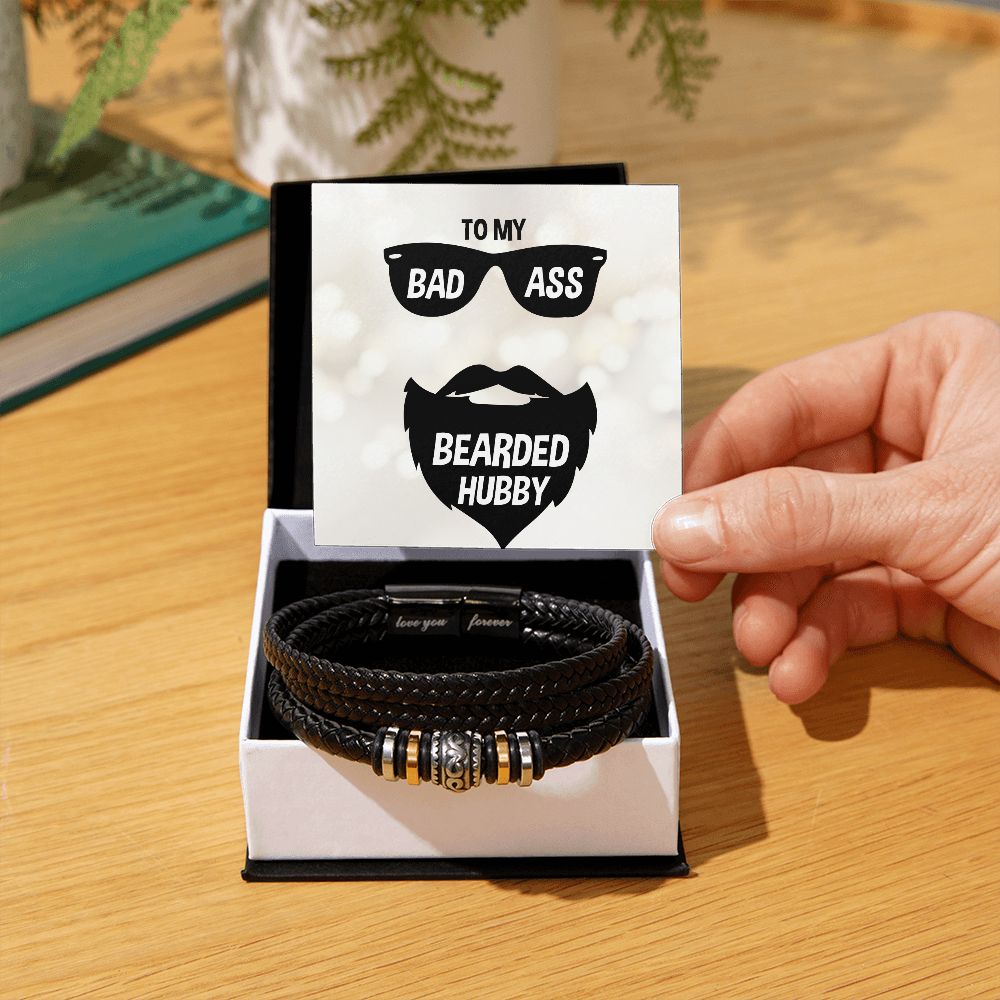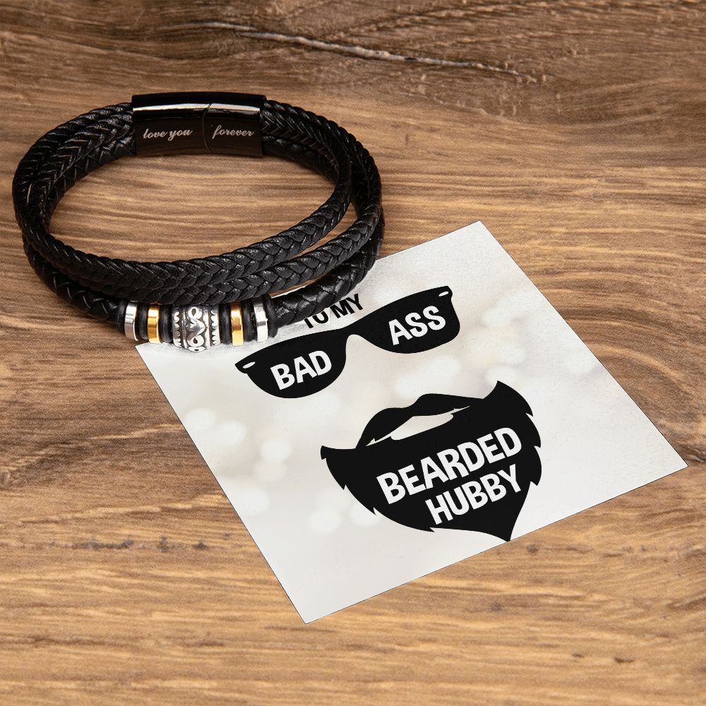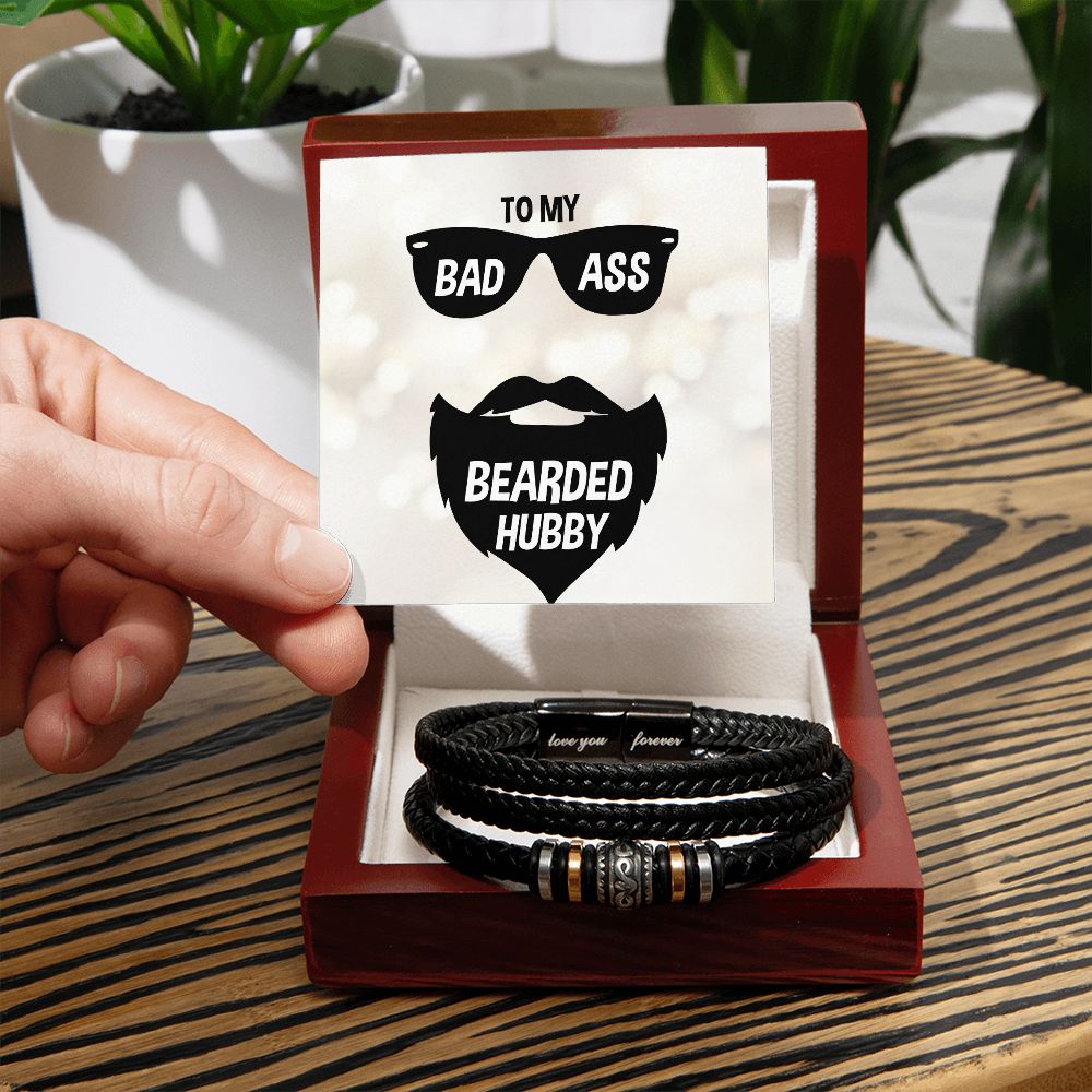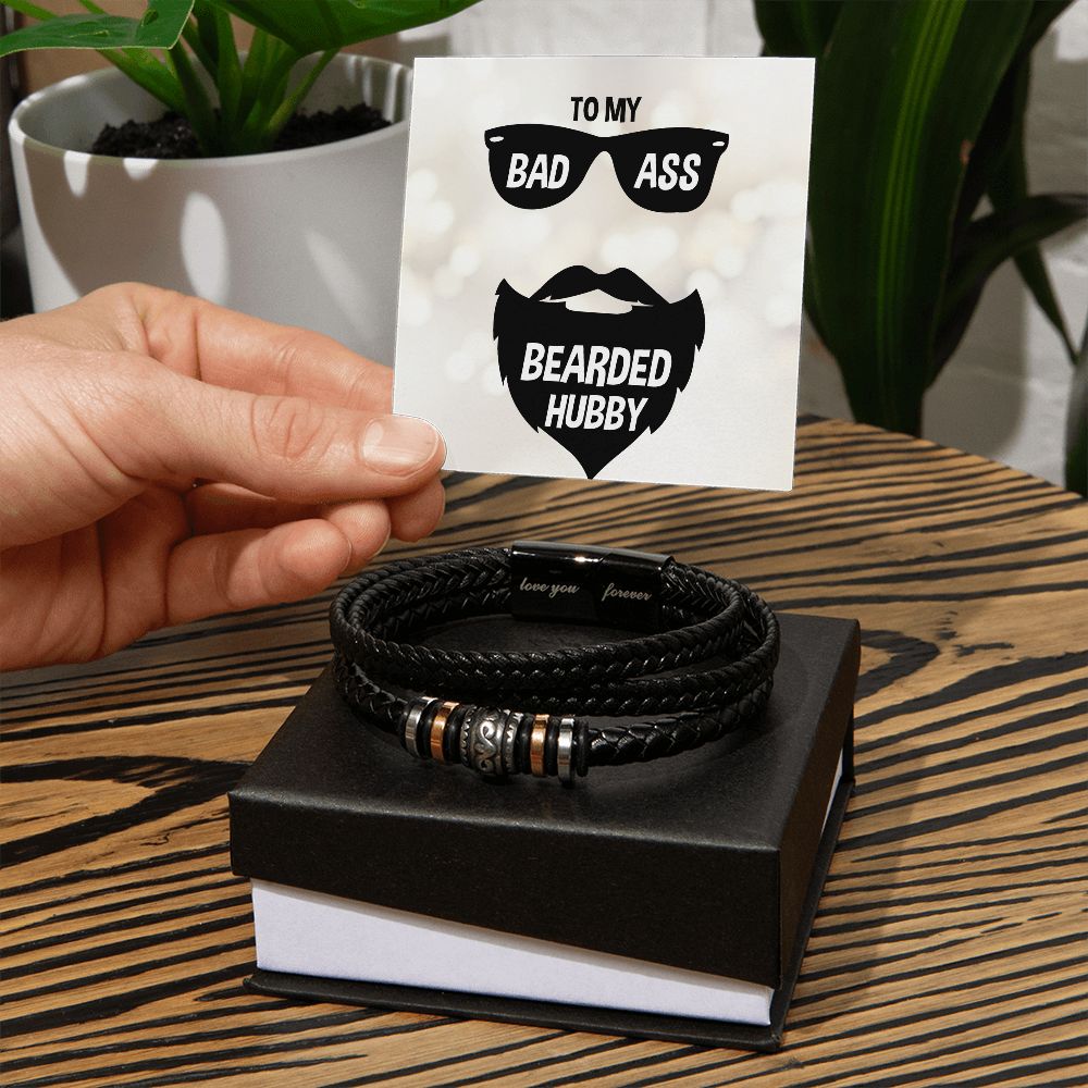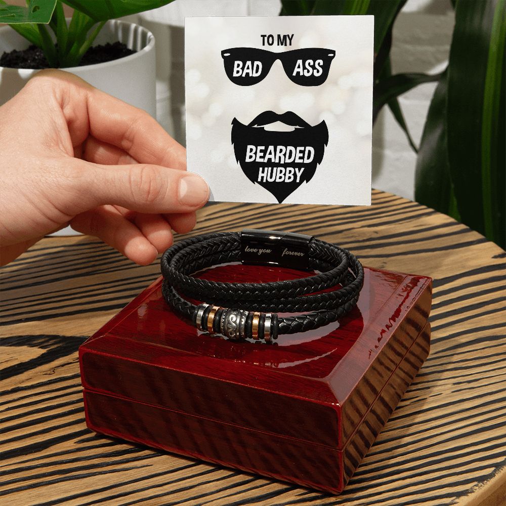 TO MY BADASS BEARDED HUBBY, LOVE YOU FOREVER MEN'S BRACELET FOR HUSBAND, BIRTHDAY/ANNIVERSARY GIFT FOR HIM, BRACELET WITH ENGRAVED MESSAGE AND MESSAGE CARD FOR YOUR HUSBAND