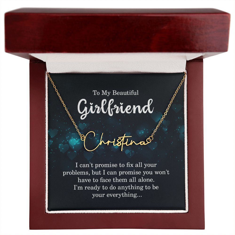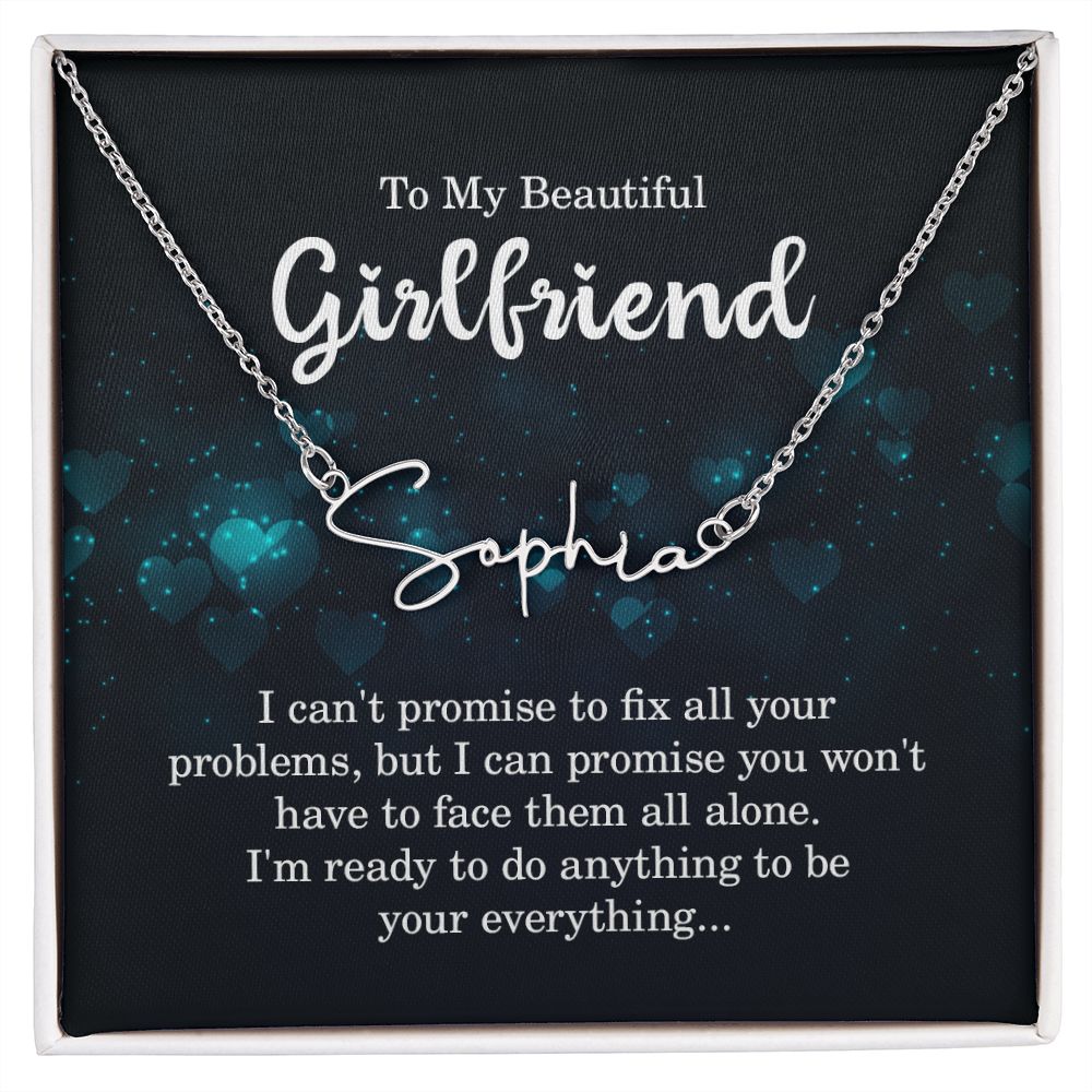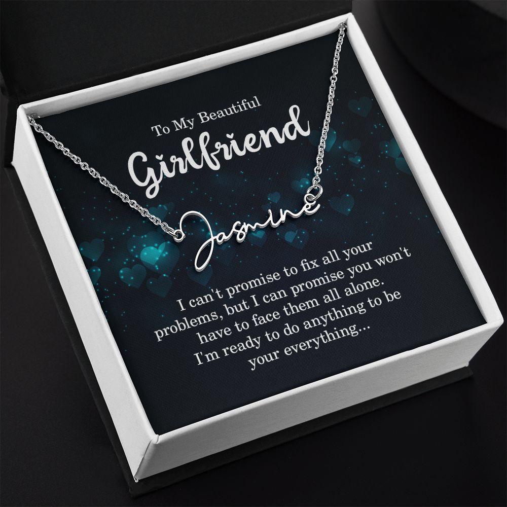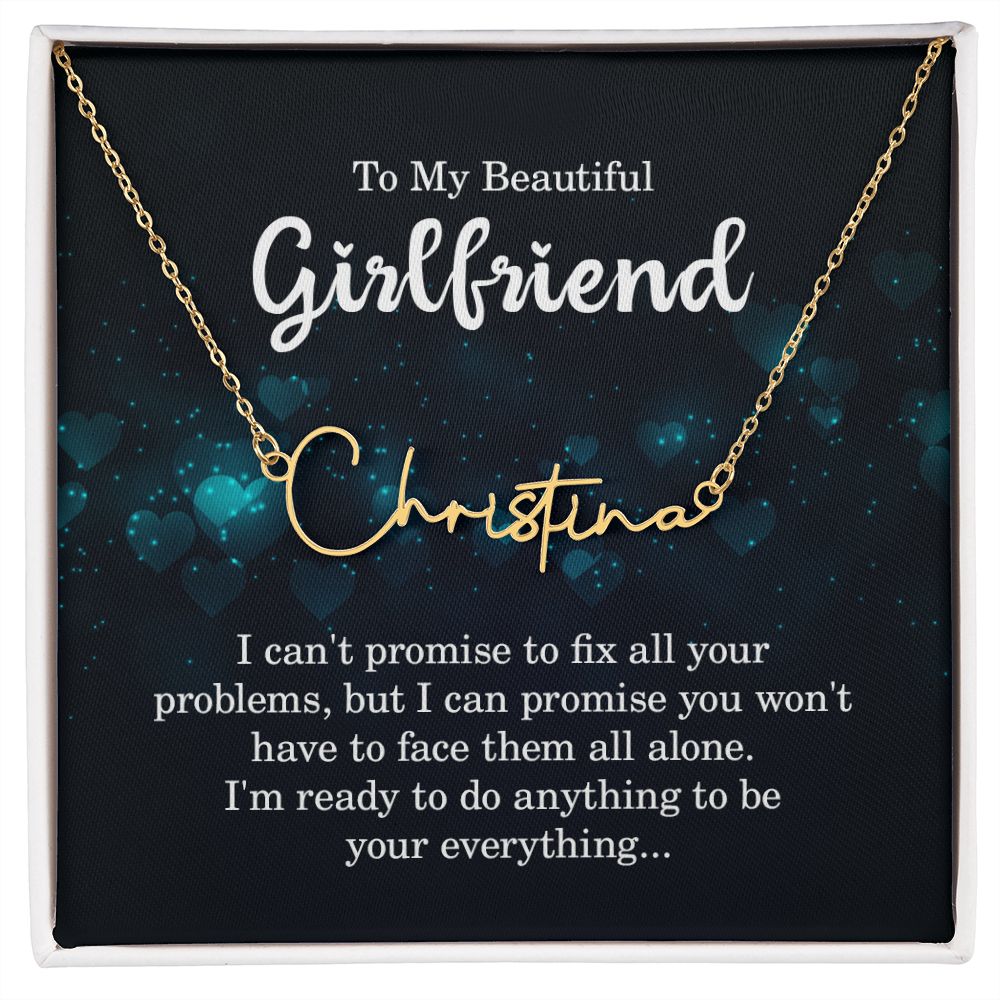 TO MY BEAUTIFUL GIRLFRIEND, SIGNATURE NAME NECKLACE WITH MESSAGE CARD, BIRTHDAY GIFT FOR HER, NECKLACE PENDANT FOR GIRLFRIEND FROM BOYFRIEND
