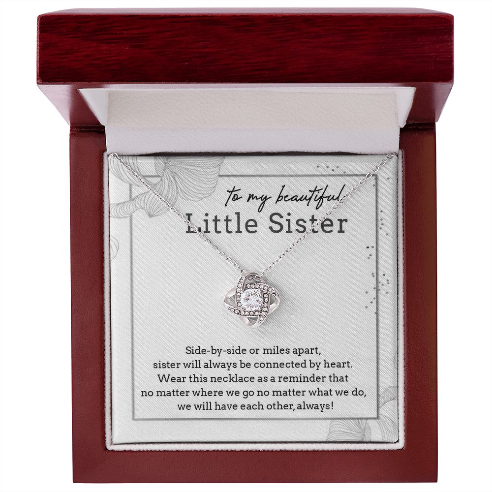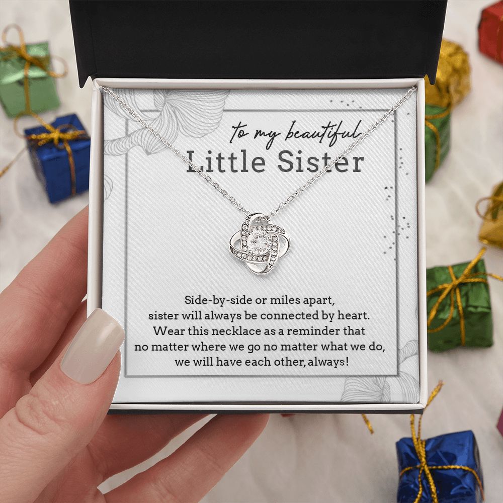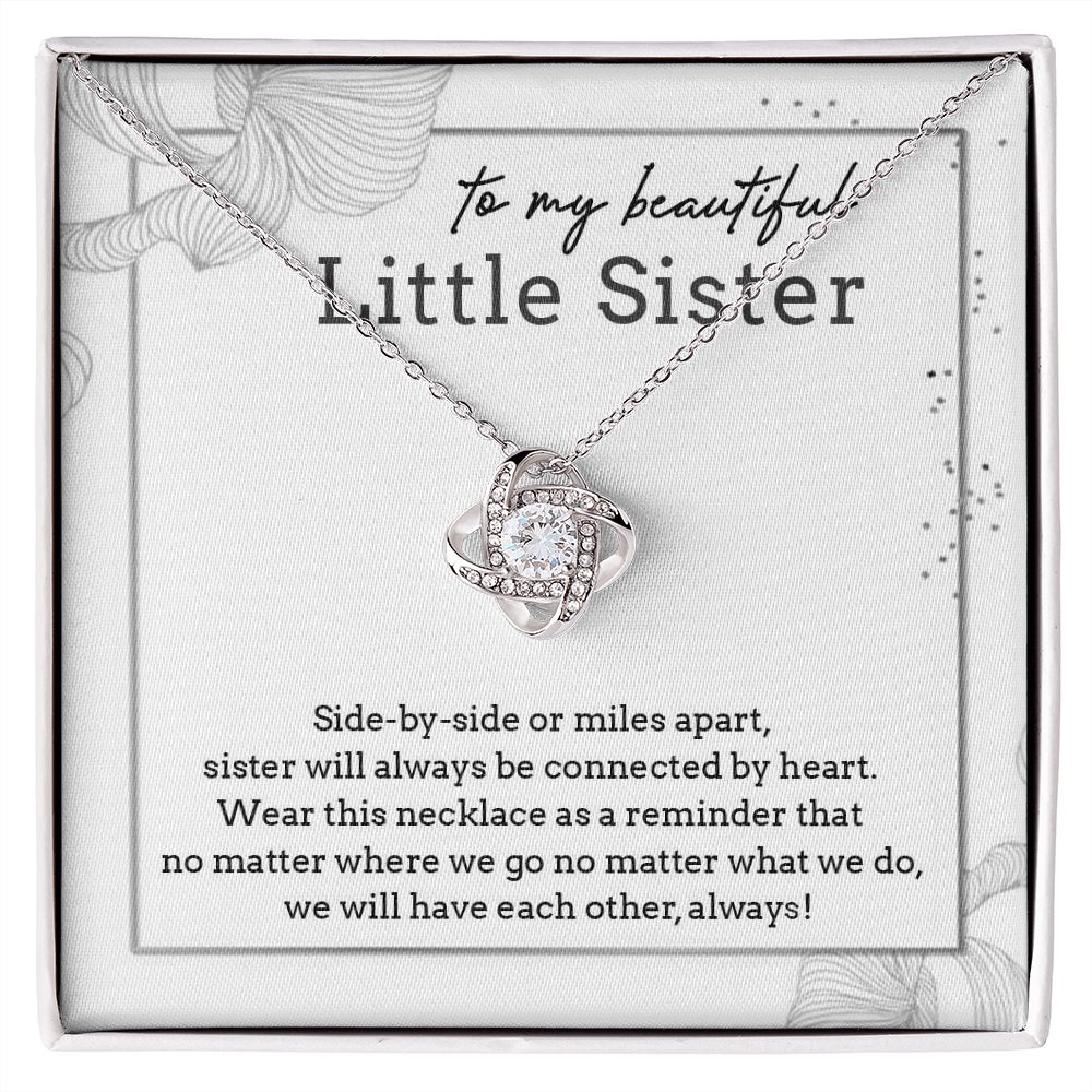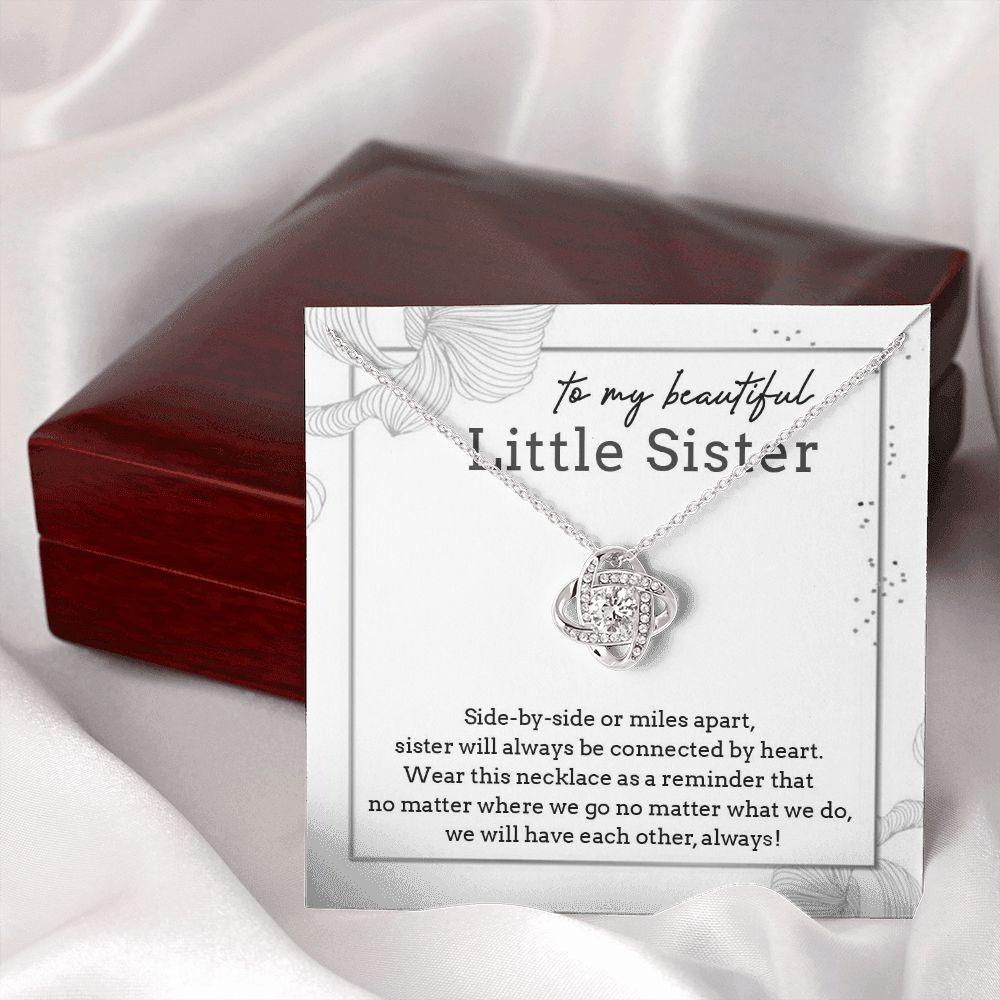 TO MY BEAUTIFUL LITTLE SISTER, LOVE KNOT NECKLACE FOR SISTER, FOREVER BEST FRIEND, BFF, BIRTHDAY/ FRIENDSHIP DAY GIFT FOR HER