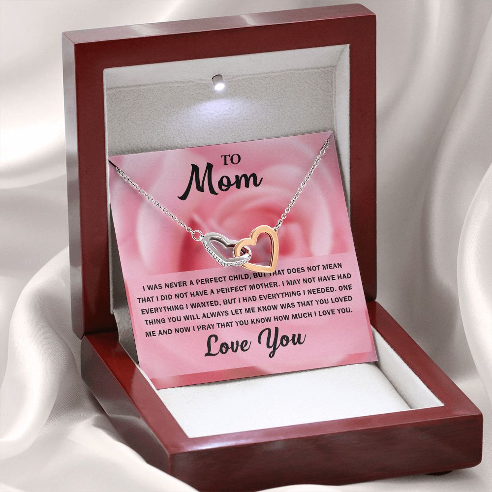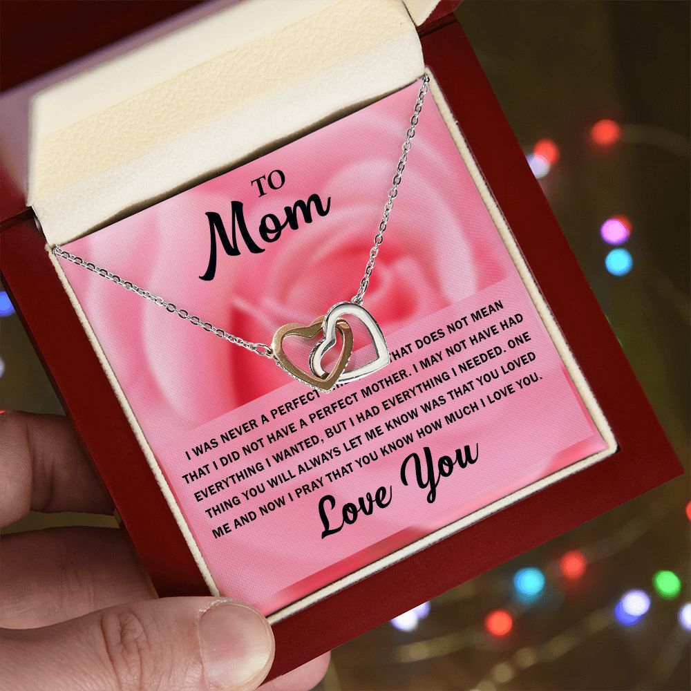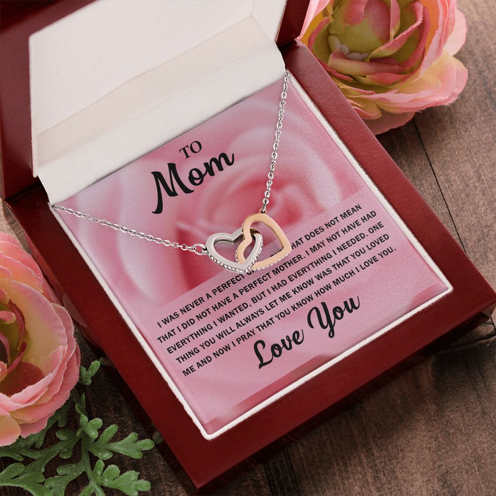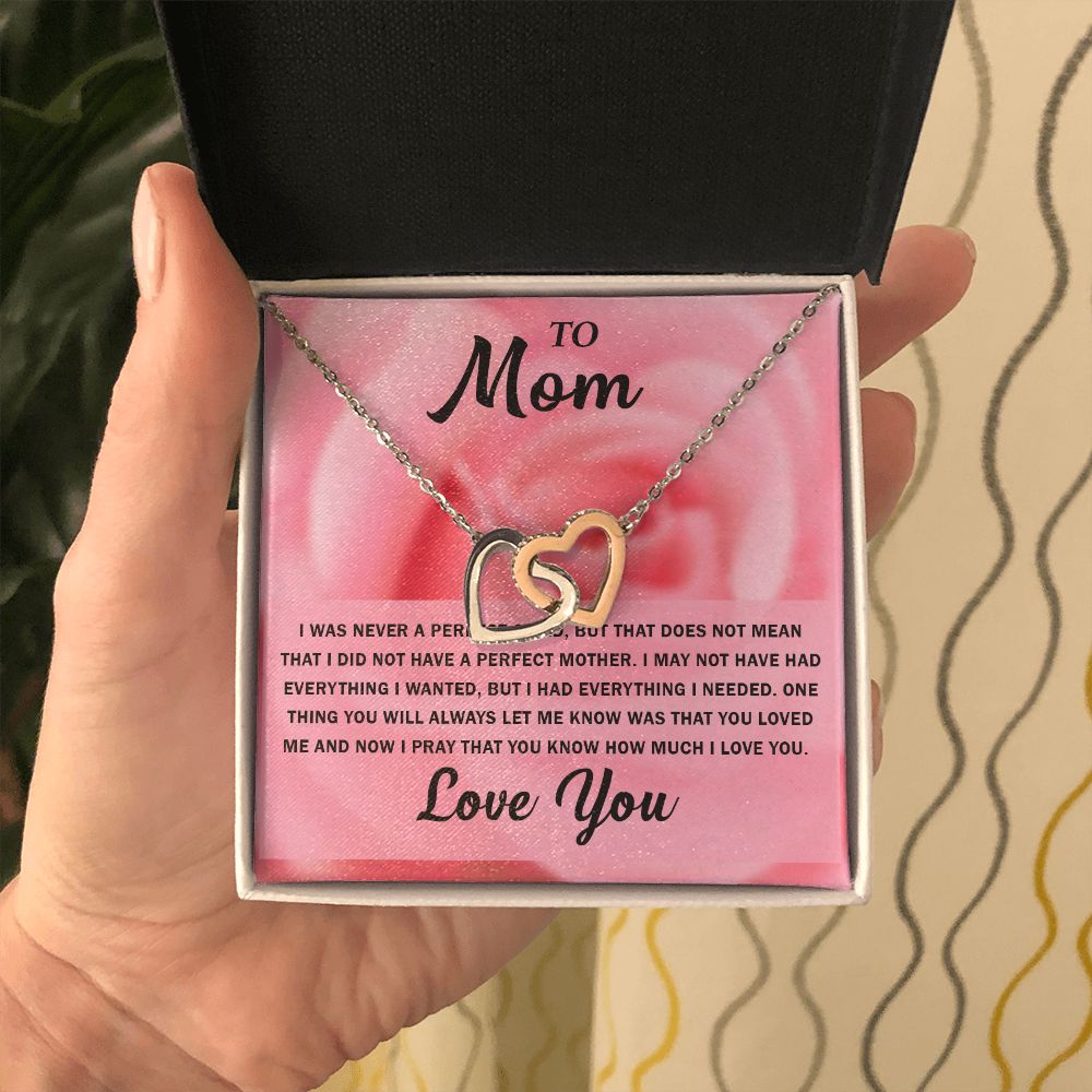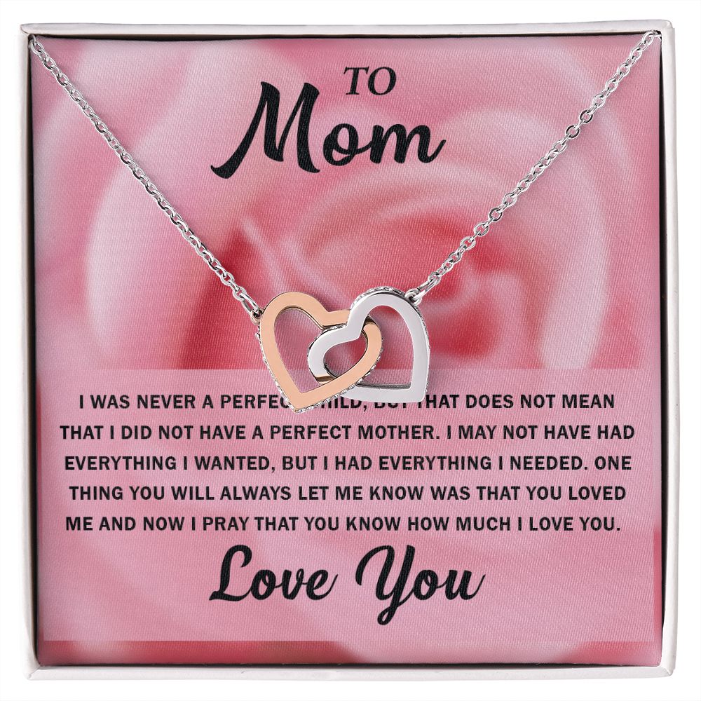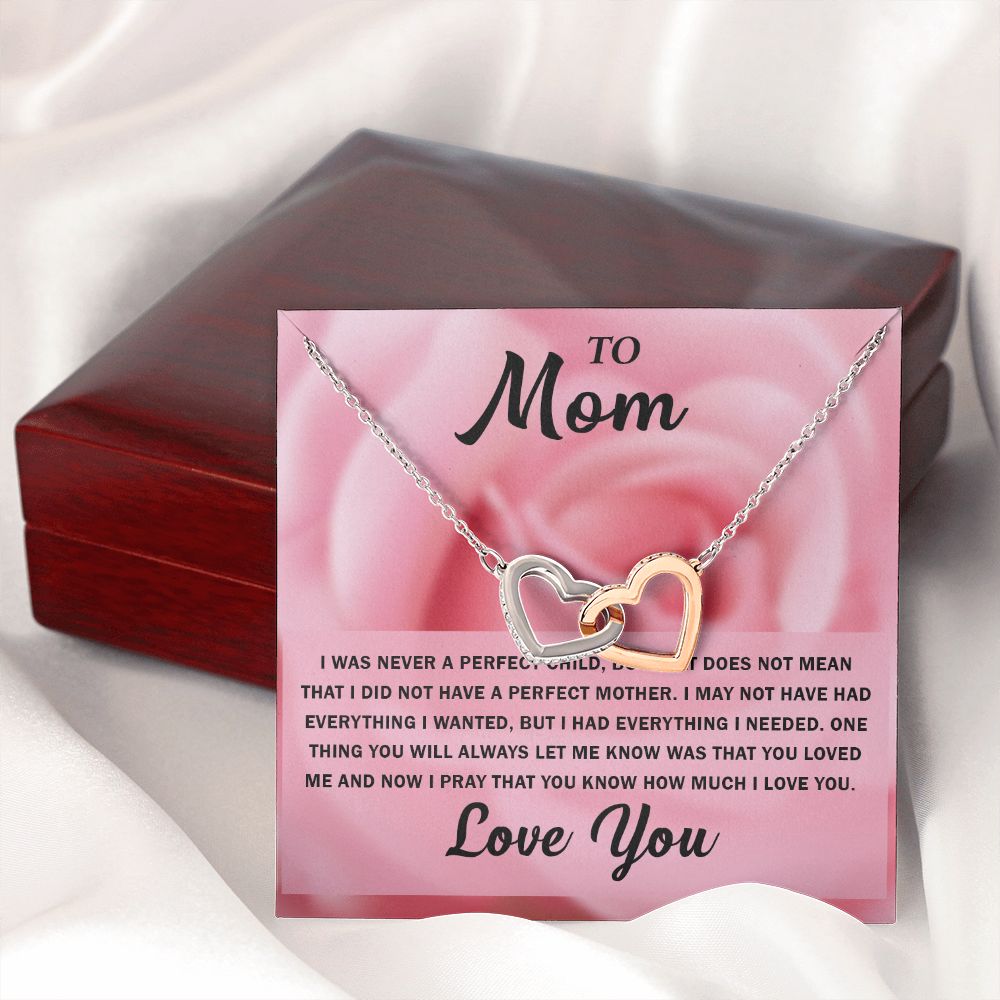 To My Beautiful Mom, Interlocking Hearts Necklace with Special Message Card - Perfect Birthday Gift from Daughter/Son