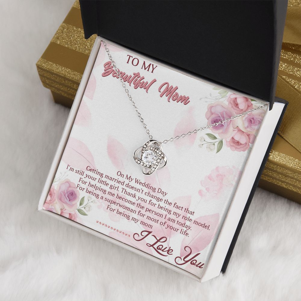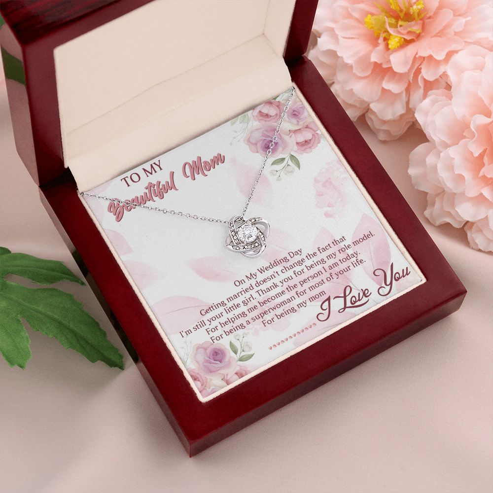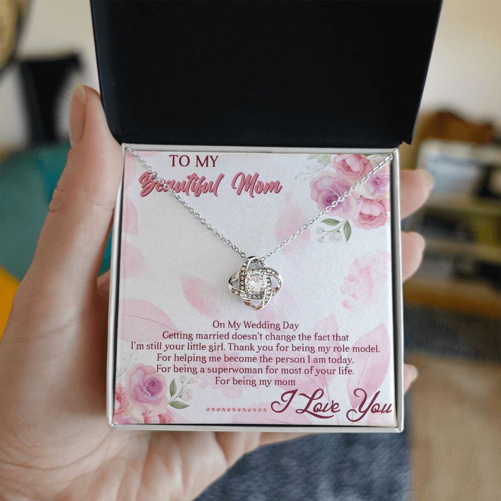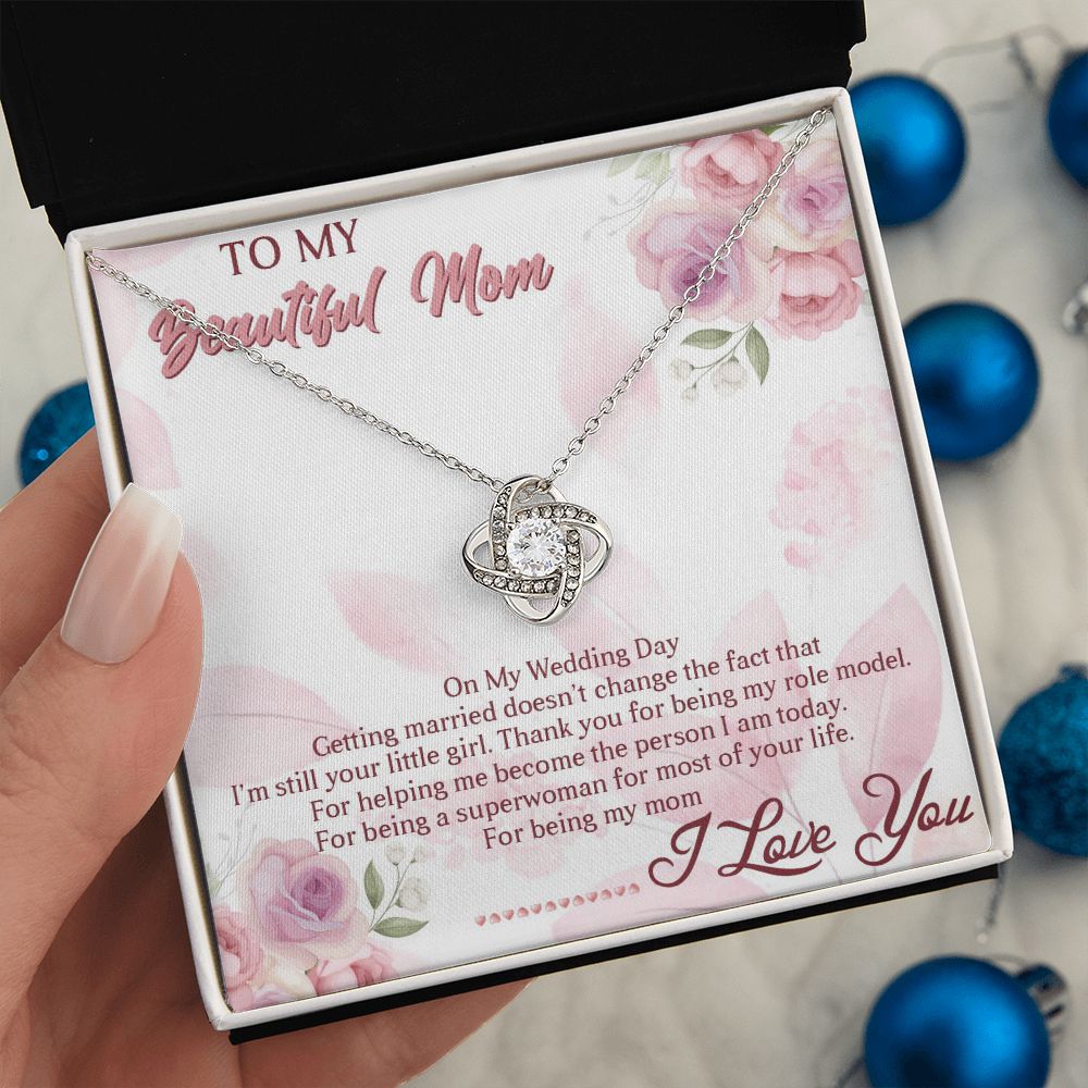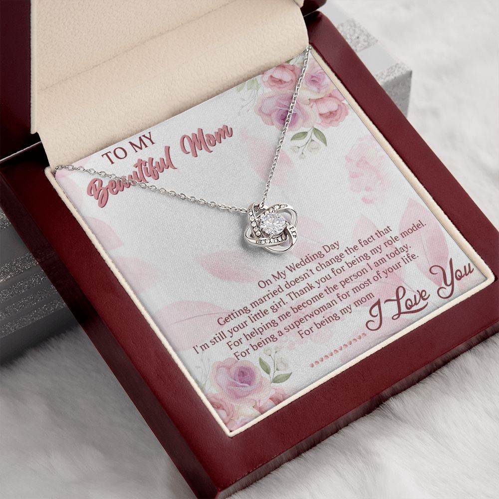 TO MY BEAUTIFUL MOM, LOVE KNOT NECKLACE FOR MOM, NECKLACE WITH MESSAGE CARD, BIRTHDAY, MOTHER'S DAY GIFT FOR HER