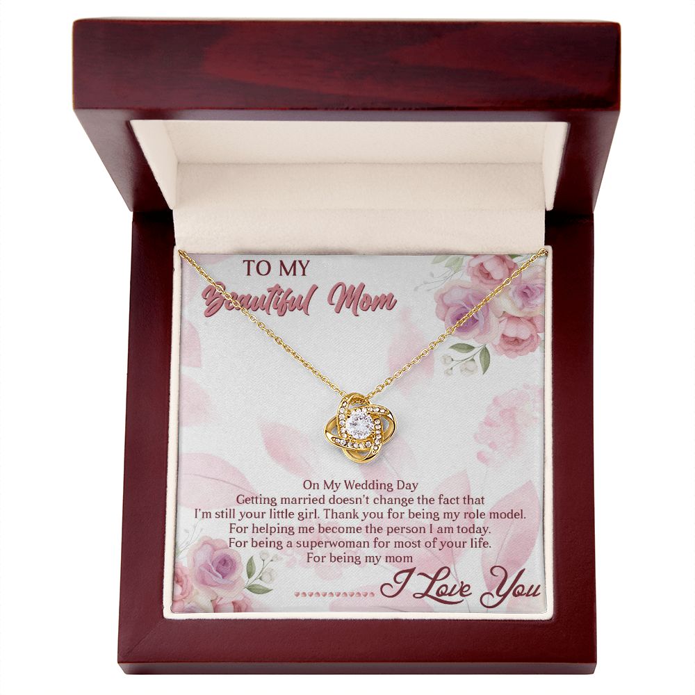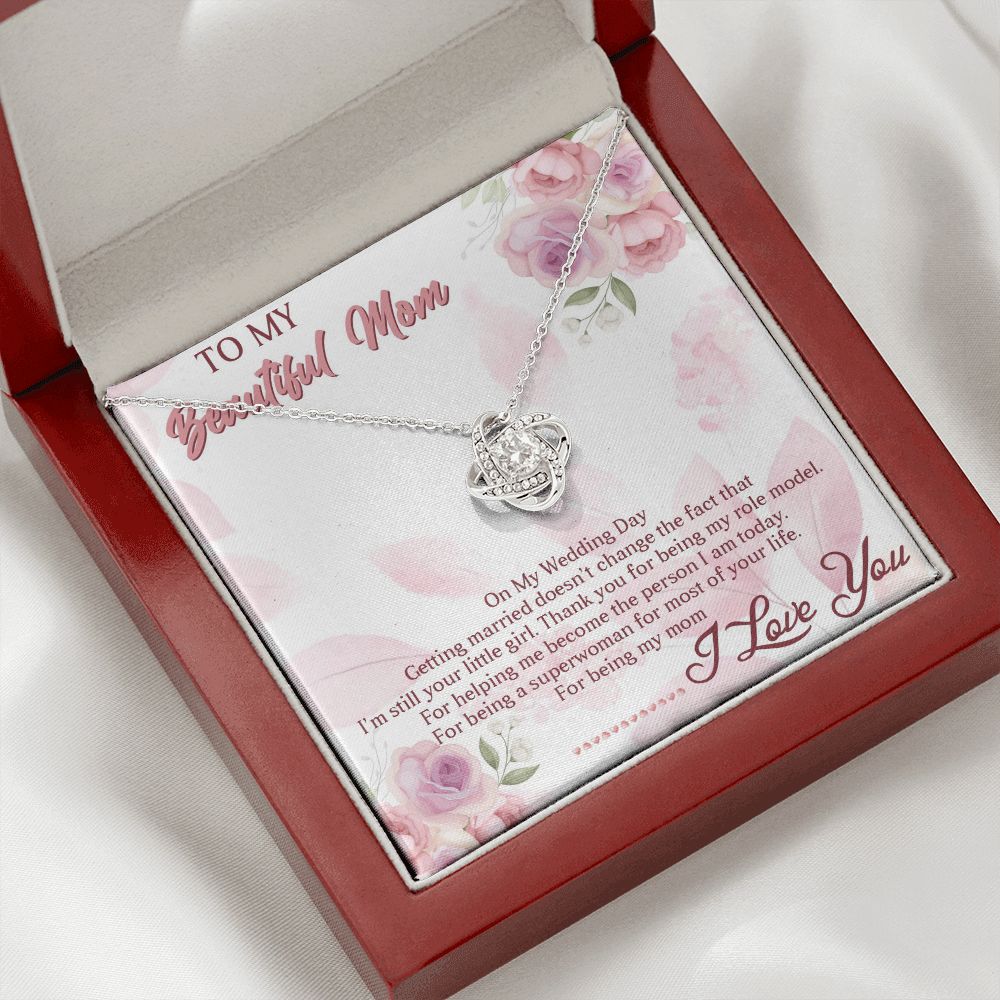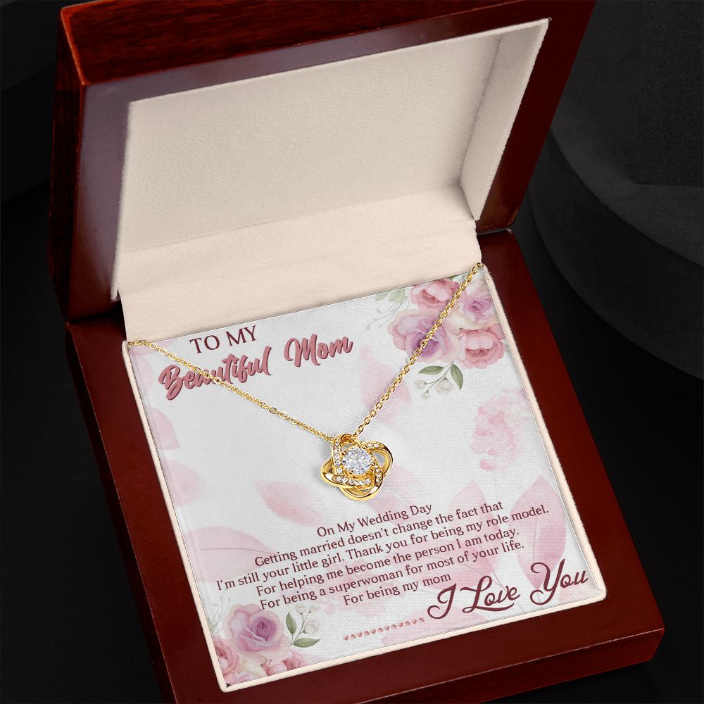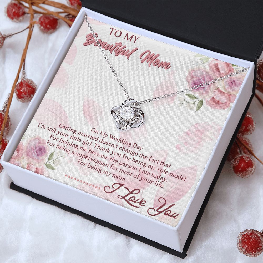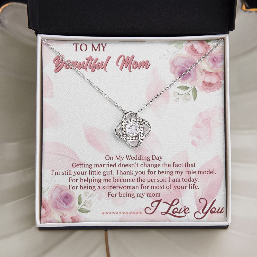 TO MY BEAUTIFUL MOM, LOVE KNOT NECKLACE FOR MOM, NECKLACE WITH MESSAGE CARD, BIRTHDAY, MOTHER'S DAY GIFT FOR HER