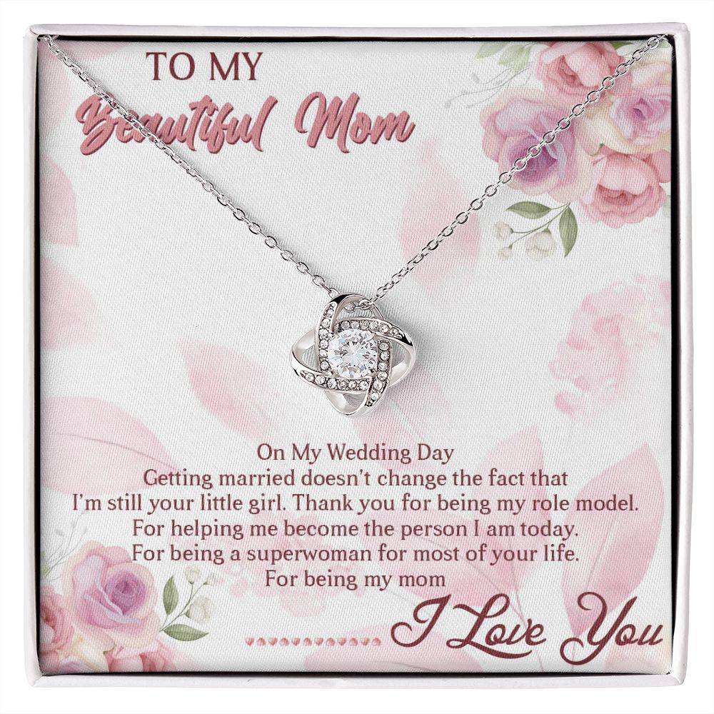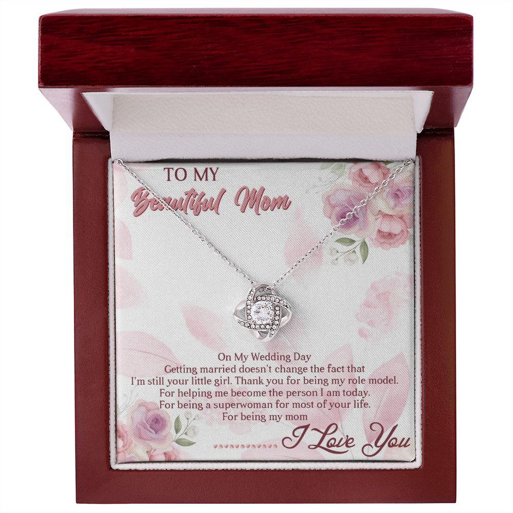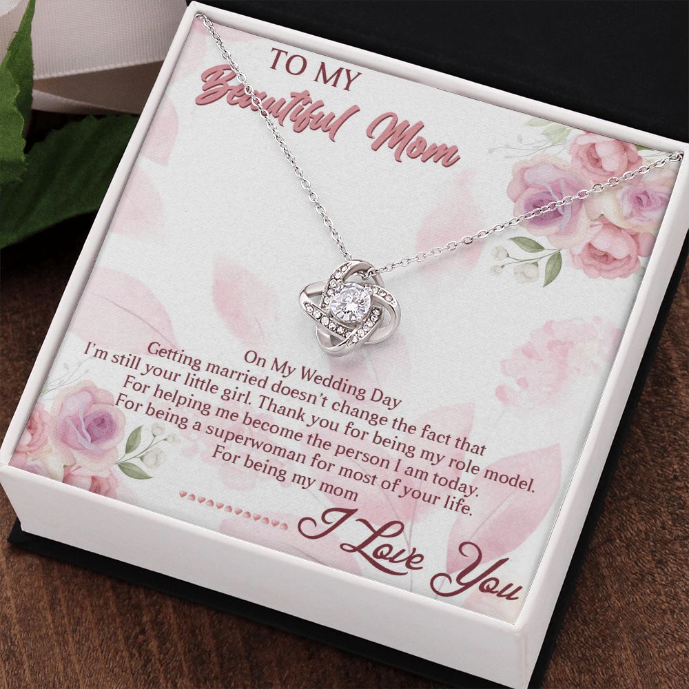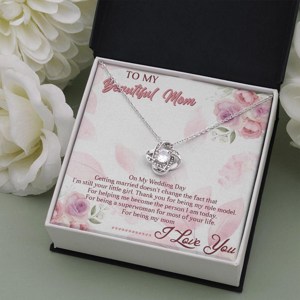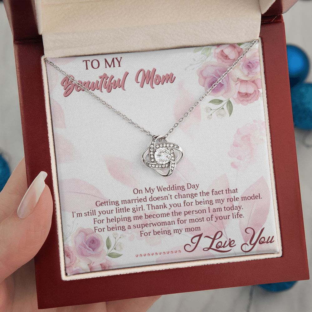 TO MY BEAUTIFUL MOM, LOVE KNOT NECKLACE FOR MOM, NECKLACE WITH MESSAGE CARD, BIRTHDAY, MOTHER'S DAY GIFT FOR HER