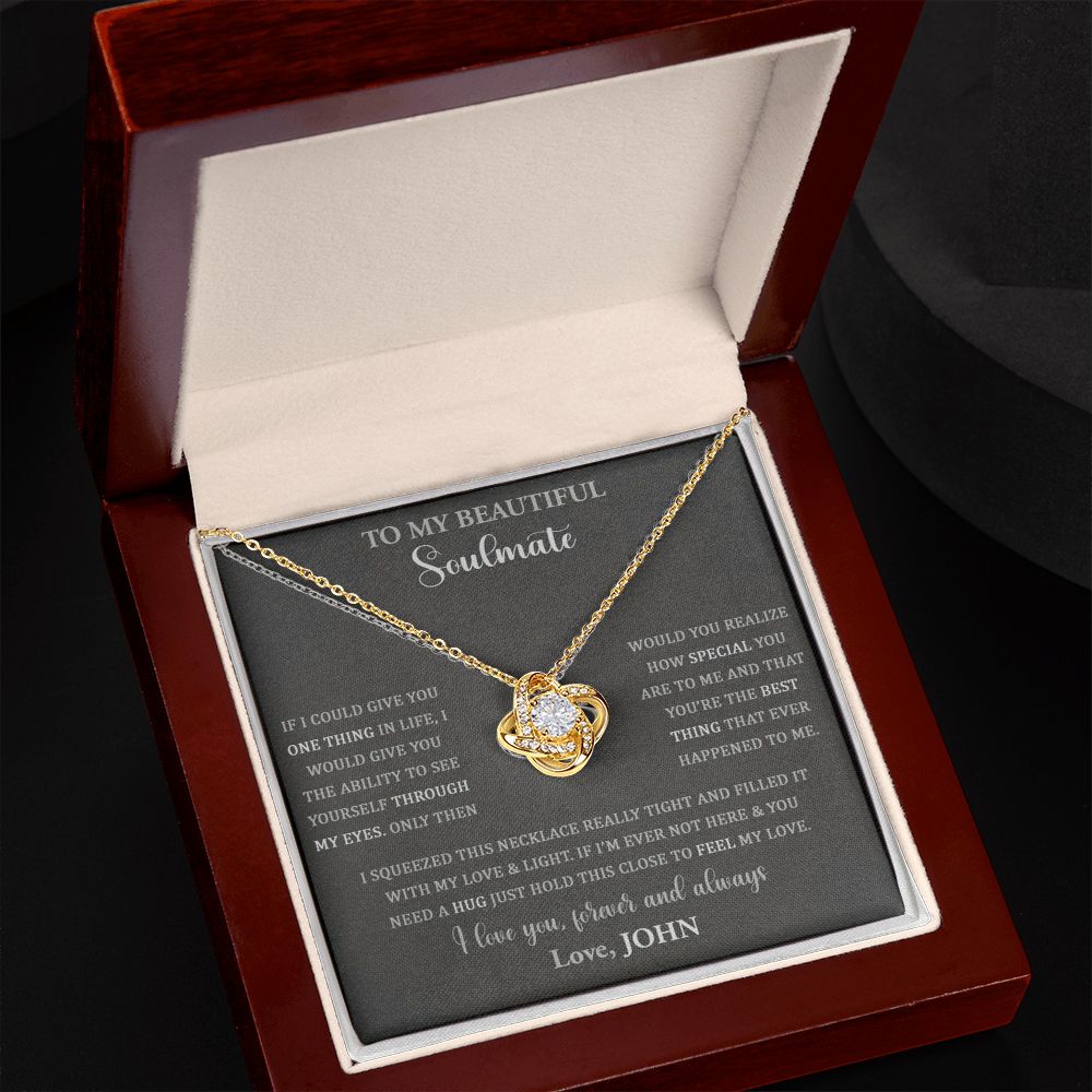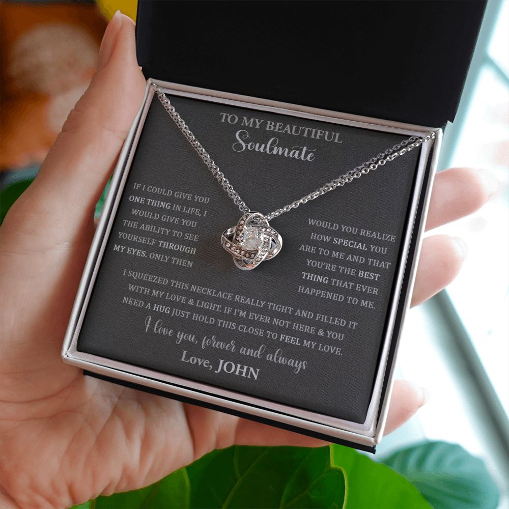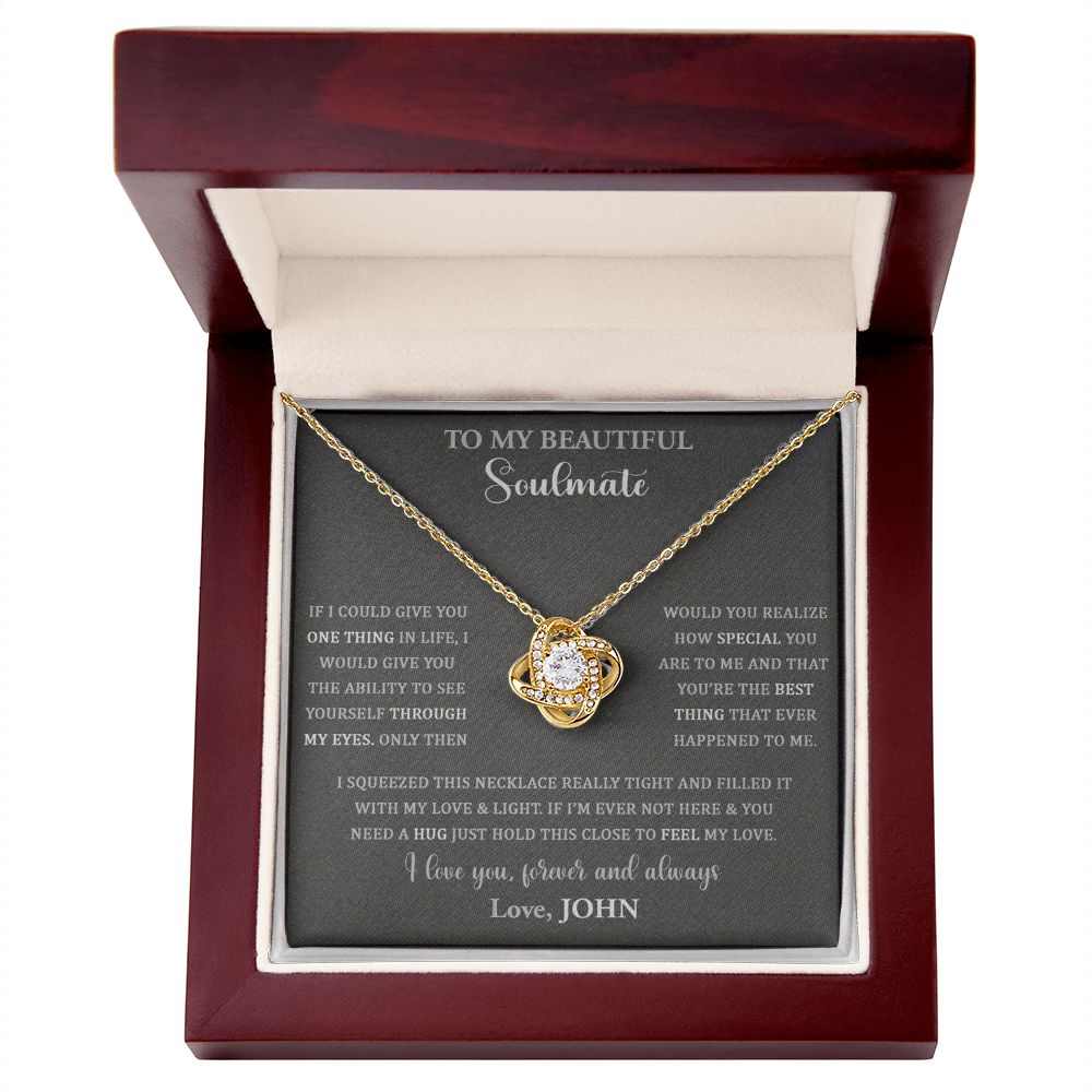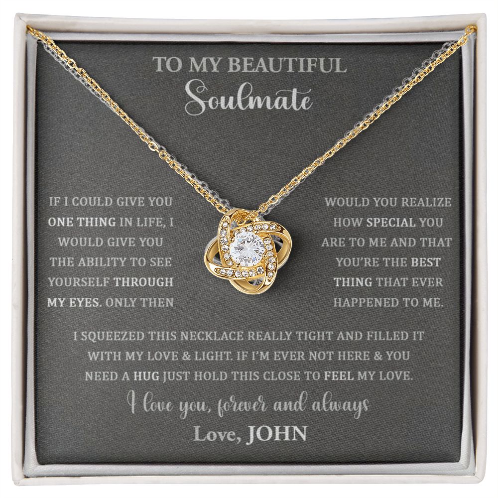 To My Beautiful Soulmate Love Knot Necklace Gift, Pendant For Her, Gift For Anniversary, Romantic Birthday Gift For Her, Jewelry For Her