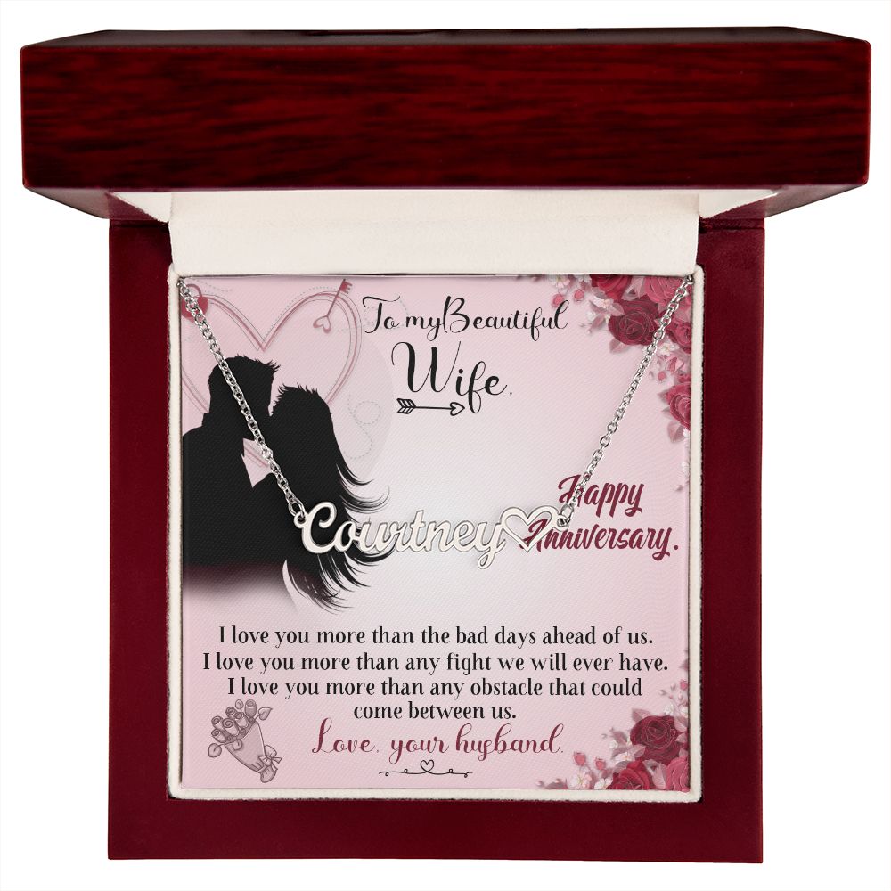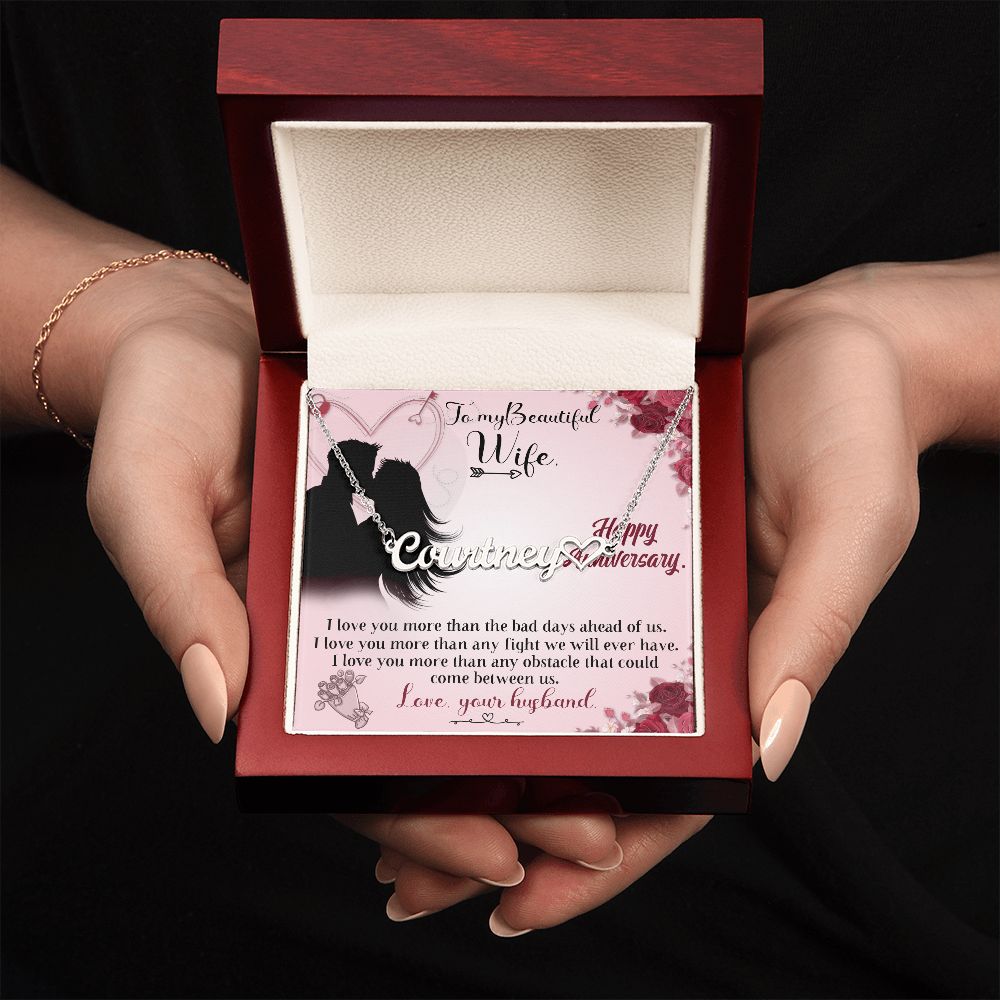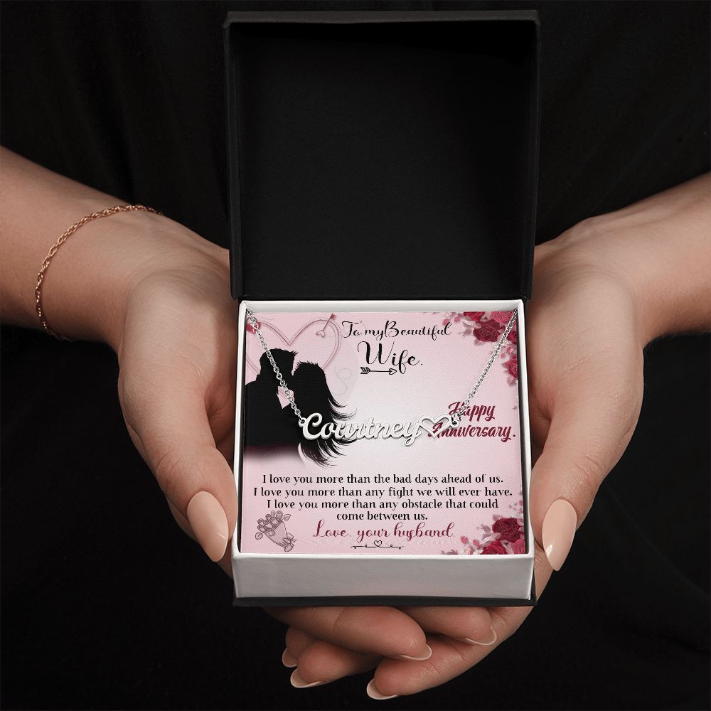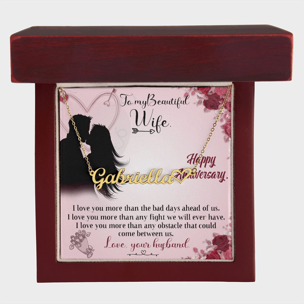 TO MY BEAUTIFUL WIFE HAPPY ANNIVERSARY, CUSTOM NAME WITH HEART NECKLACE, GIFT FOR HER, NECKLACE PENDANT WITH MESSAGE CARD, FOR WIFE FROM HUSBAND