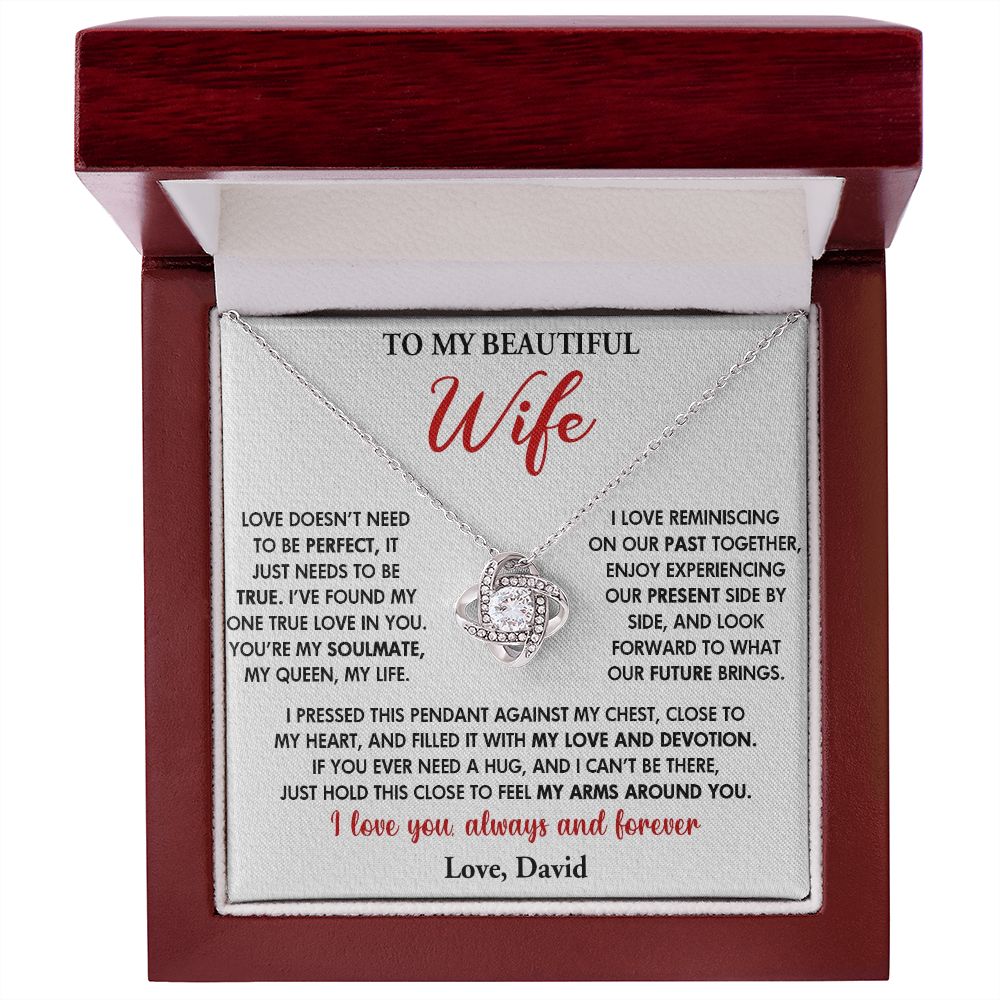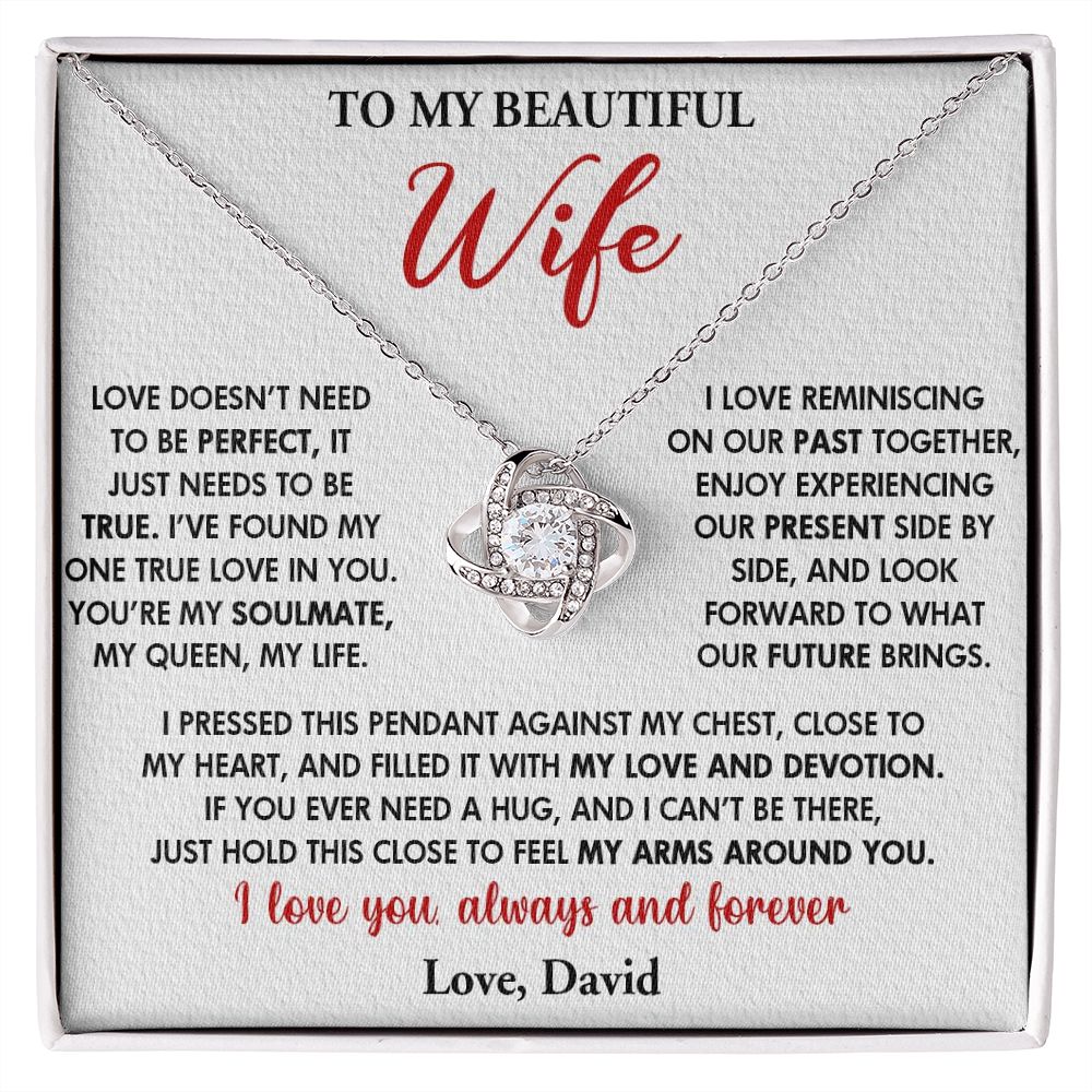 TO MY BEAUTIFUL WIFE, LOVE KNOT NECKLACE WITH CUSTOM NAME MESSAGE CARD, GIFT FOR WIFE/SOULMATE, BIRTHDAY GIFT FOR HER