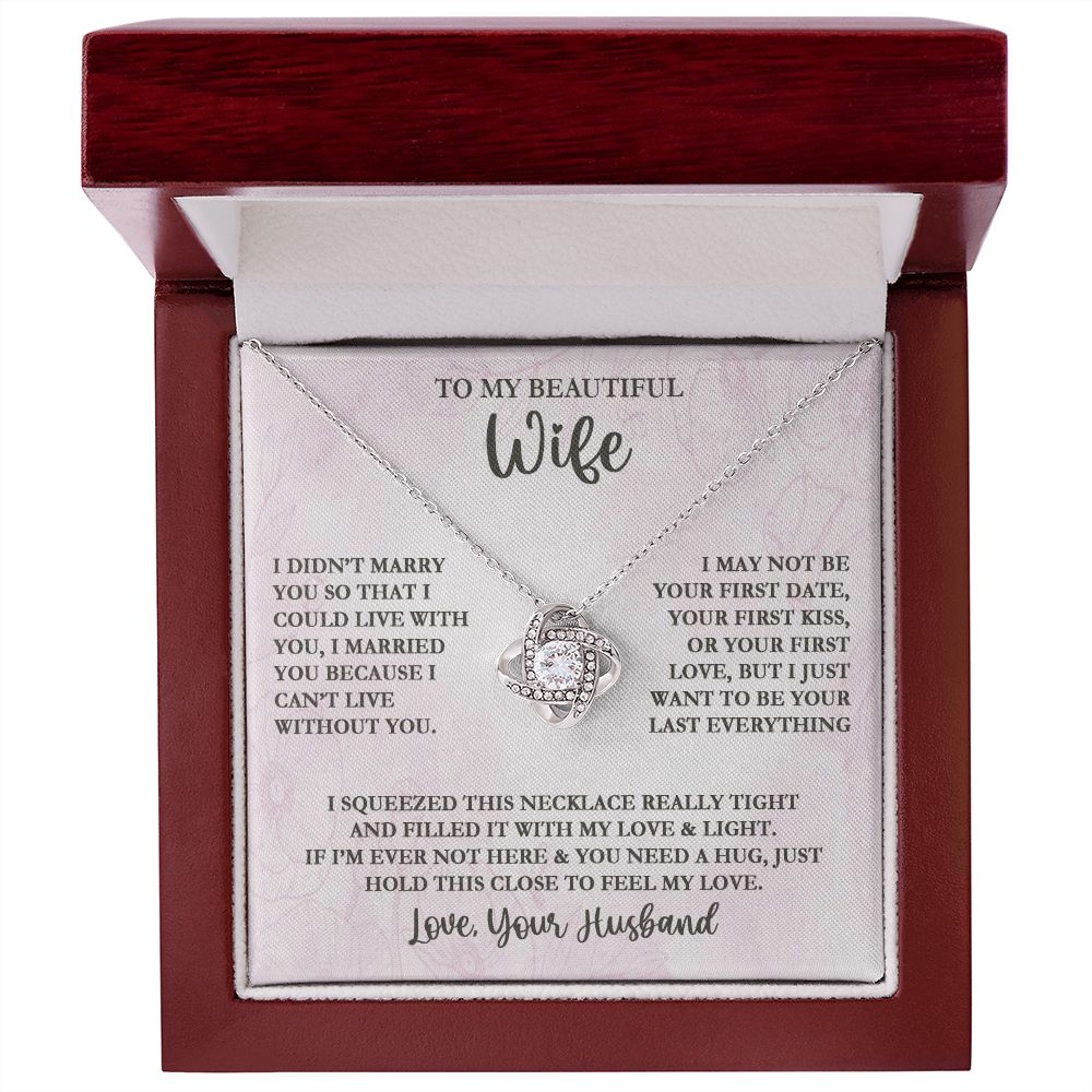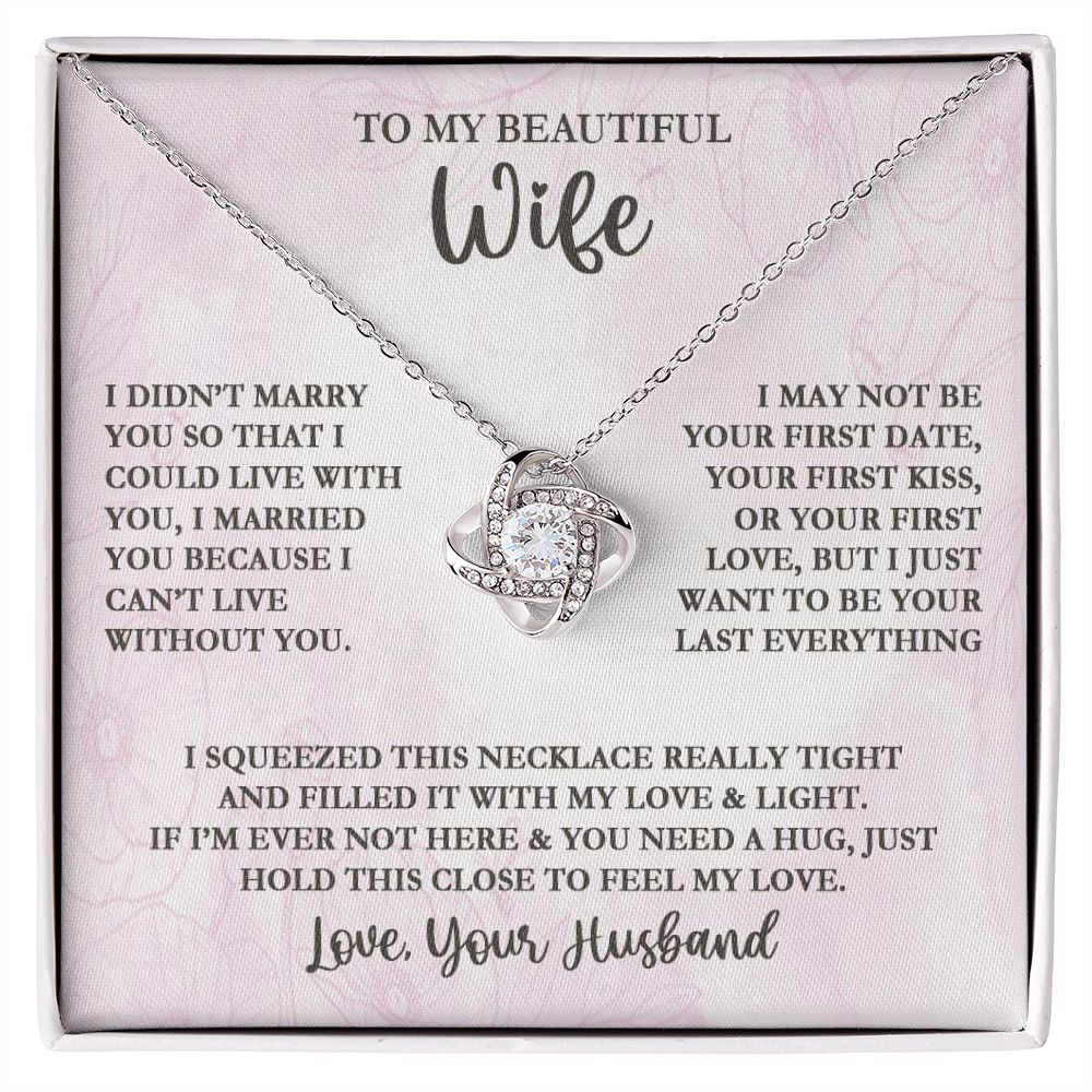 TO MY BEAUTIFUL WIFE, LOVE KNOT NECKLACE WITH MESSAGE CARD, GIFT FOR WIFE/SOULMATE, BIRTHDAY GIFT FOR HER