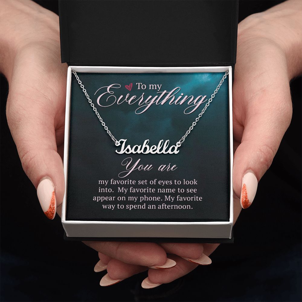 TO MY EVERYTHING, CUSTOM NAME NECKLACE, GIFT FOR HER, NECKLACE PENDANT WITH MESSAGE CARD, FOR WIFE FROM HUSBAND