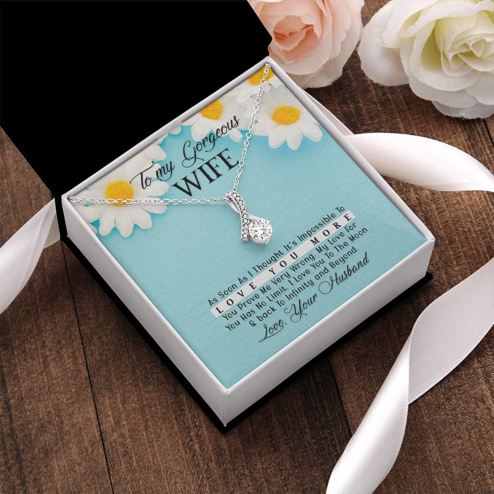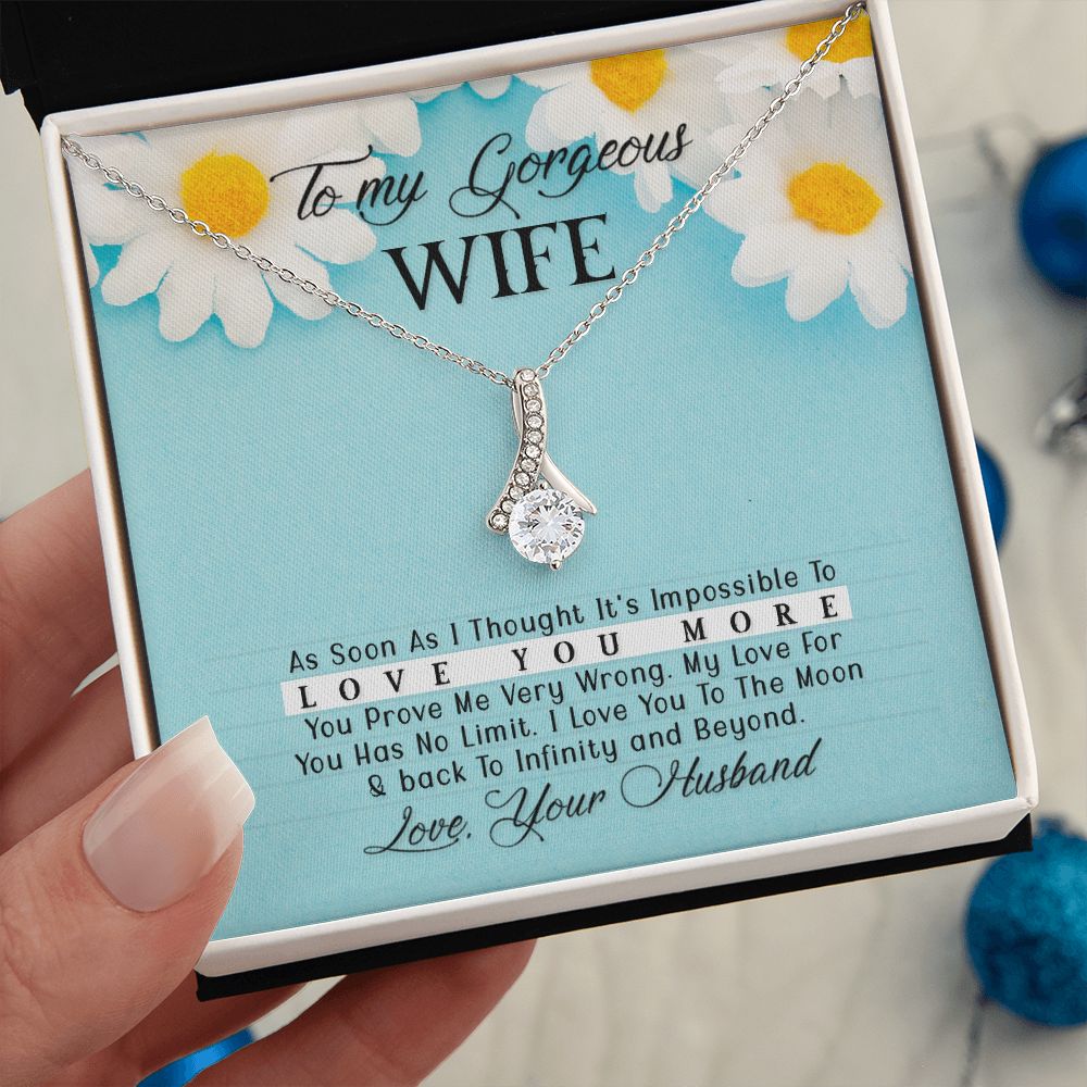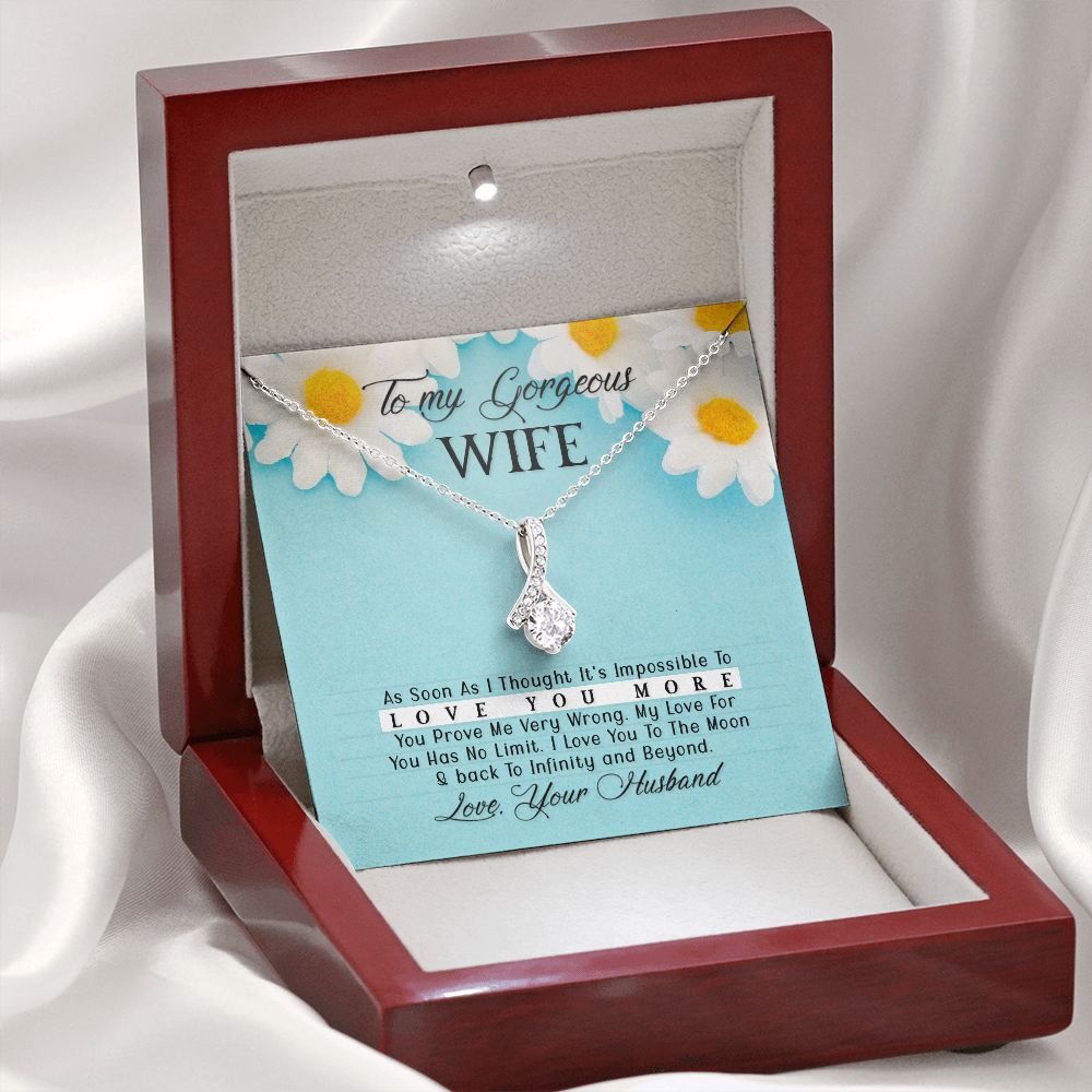 TO MY GORGEOUS WIFE, ALLURING BEAUTY NECKLACE WITH MESSAGE CARD, BIRTHDAY AND ANNIVERSAY GIFT FOR HER, NECKLACE FROM HUSBAND