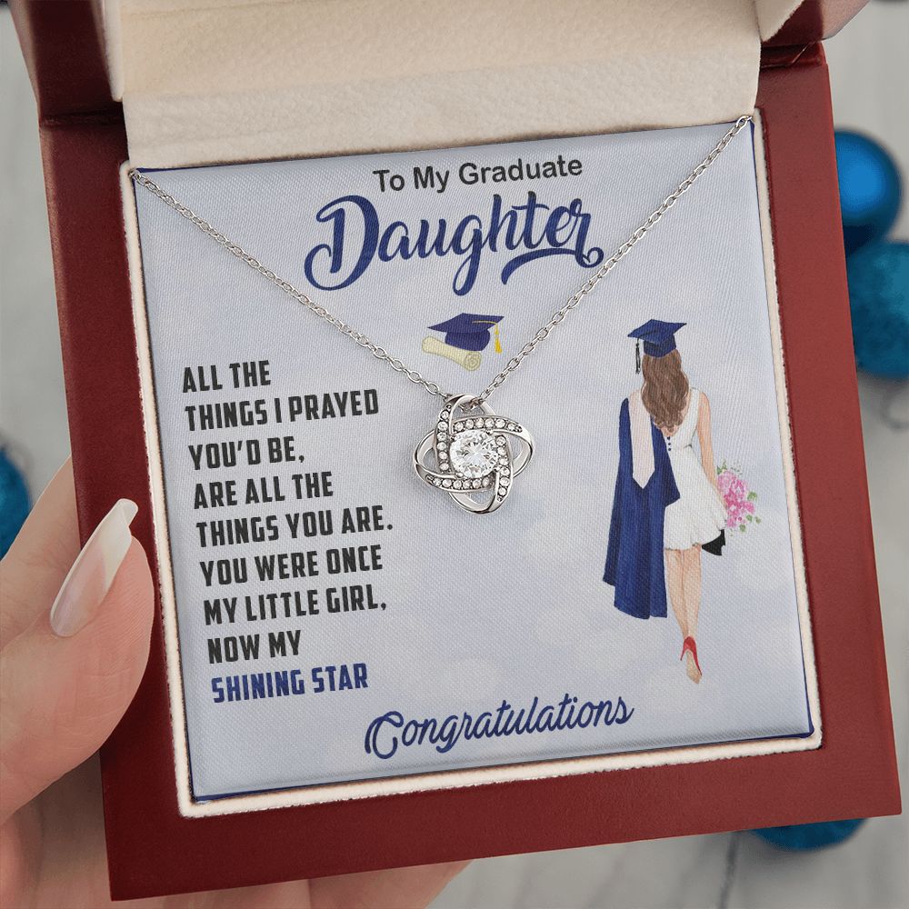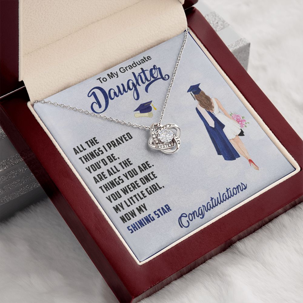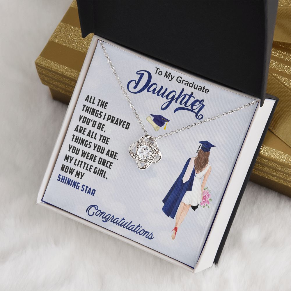 TO MY GRADUATE DAUGHTER, LOVE KNOT NECKLACE FOR DAUGHTER ON HER GRADUATION, FROM MOM/DAD, GRADUATION GIFT FOR HER