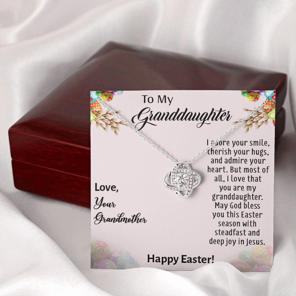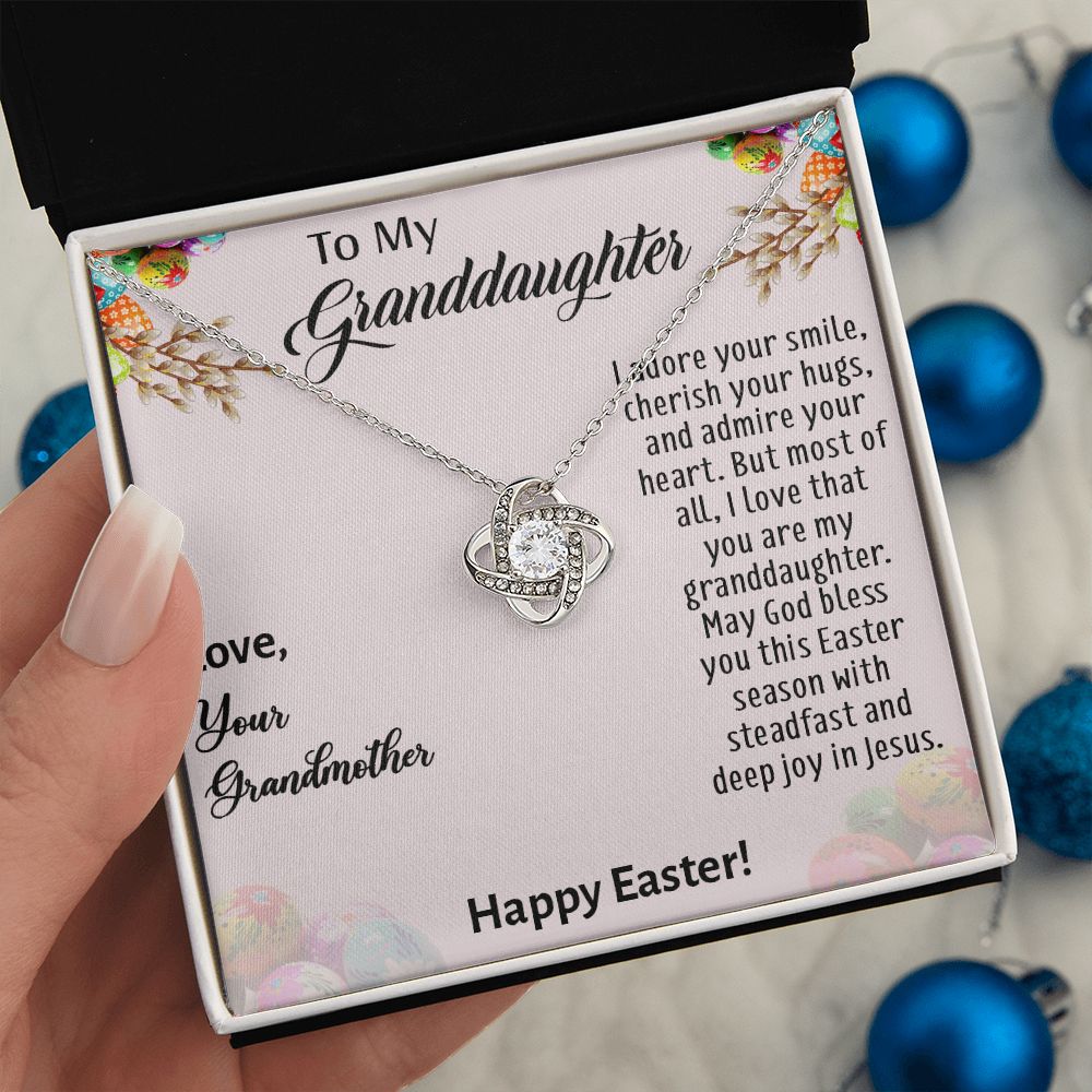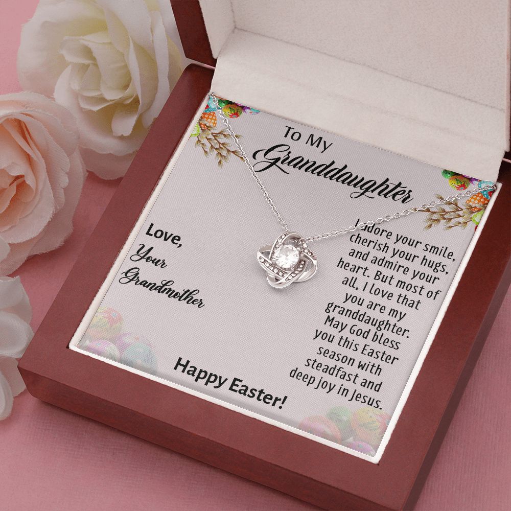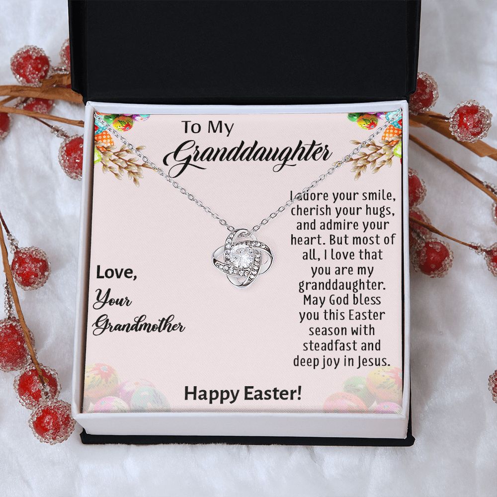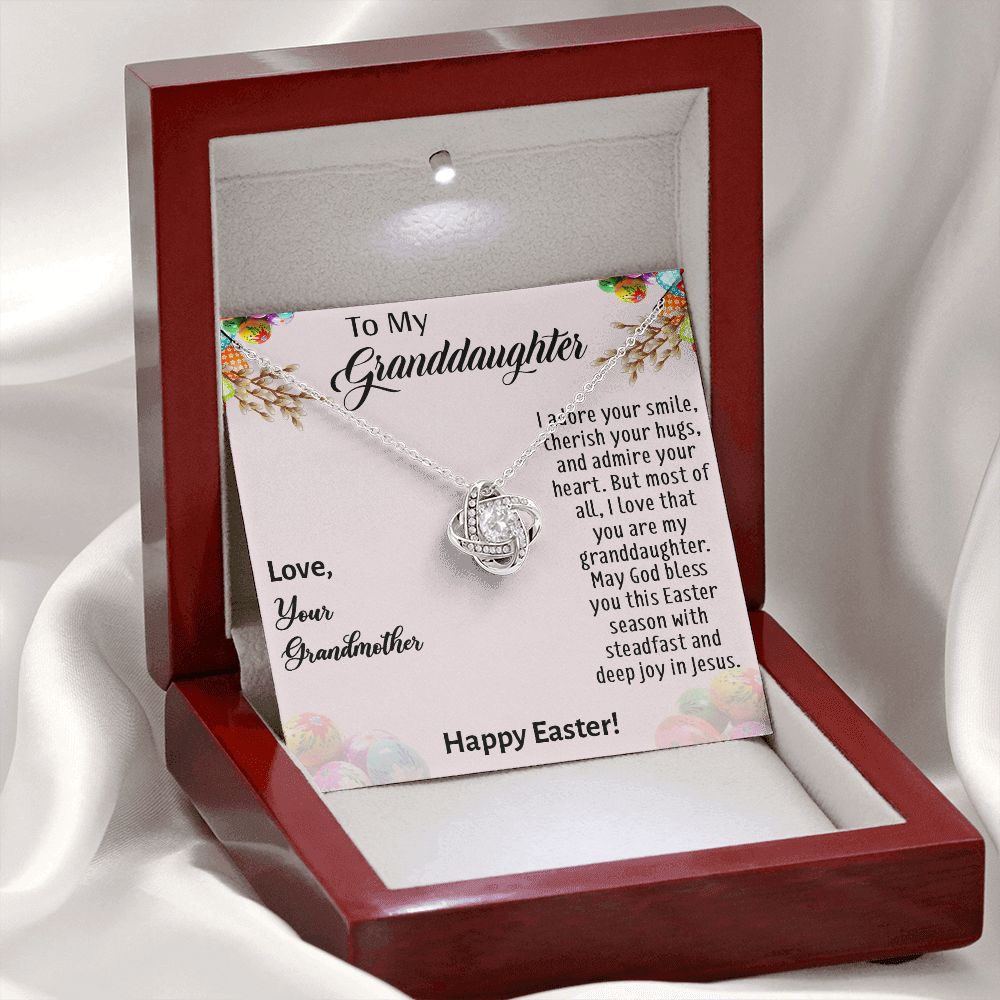 TO MY GRANDDAUGHTER, HAPPY EASTER, INTERLOCKING HEART NECKLACE WITH MESSAGE CARD, EASTER DAY GIFT FROM GRANDMOTHER
