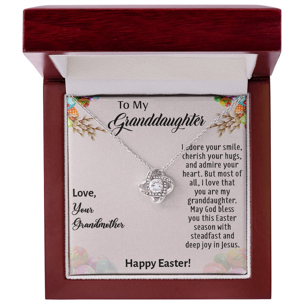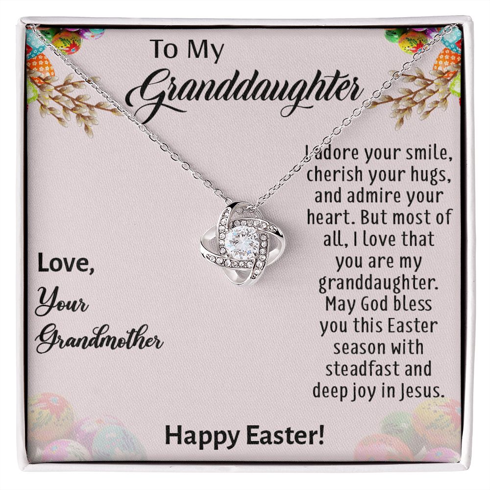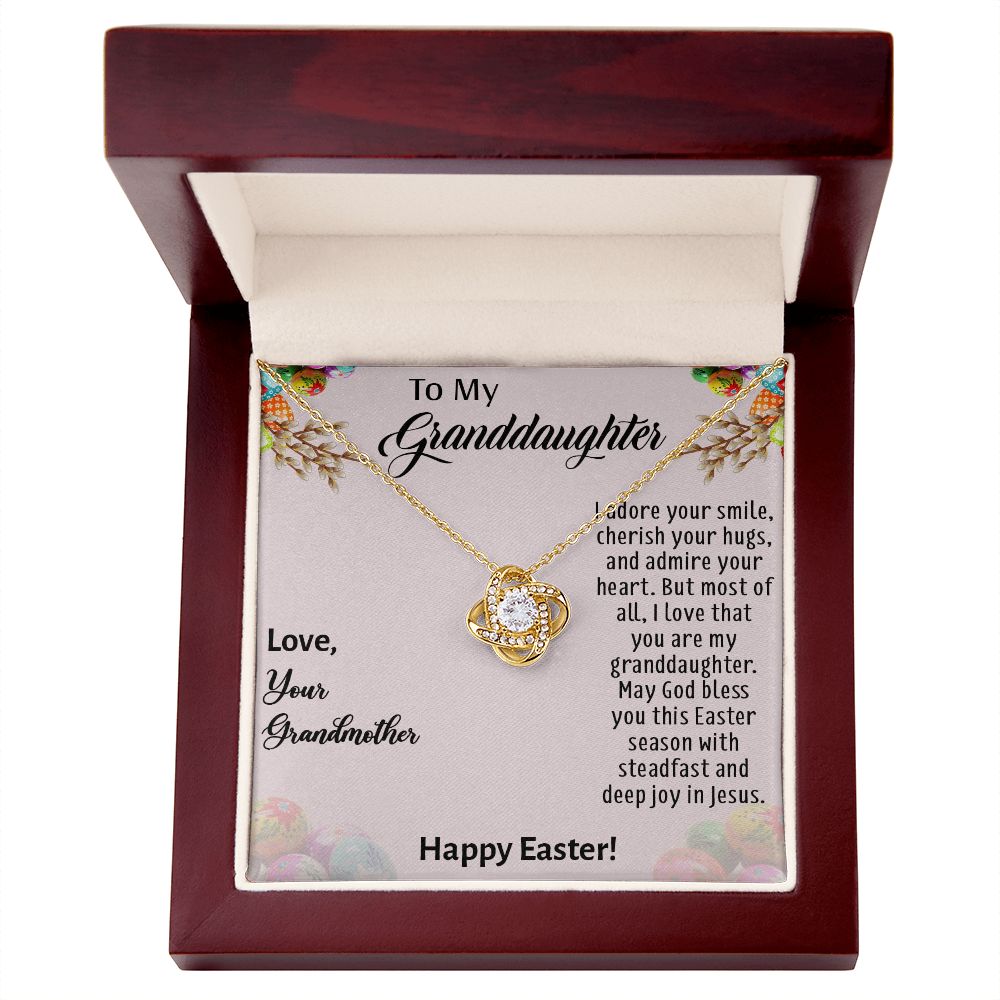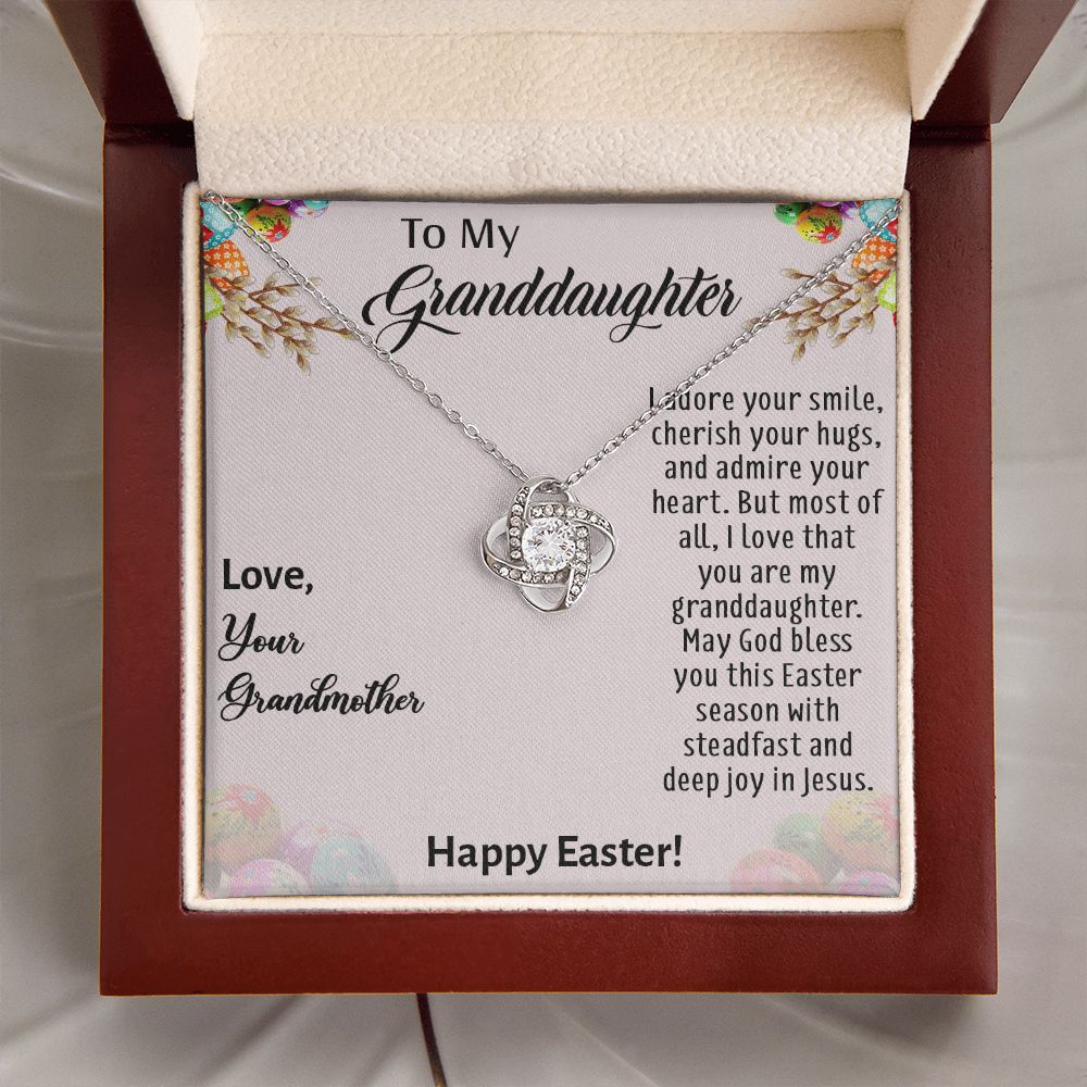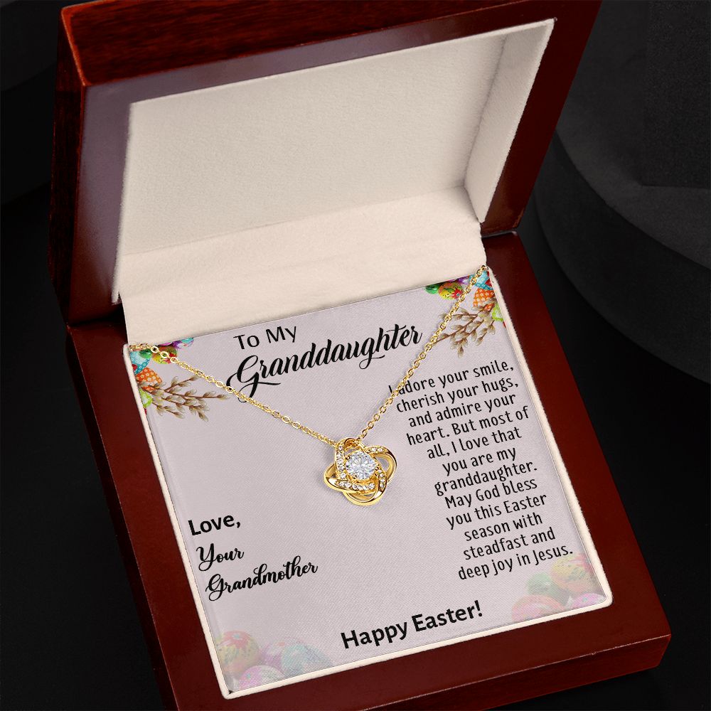 TO MY GRANDDAUGHTER, HAPPY EASTER, INTERLOCKING HEART NECKLACE WITH MESSAGE CARD, EASTER DAY GIFT FROM GRANDMOTHER