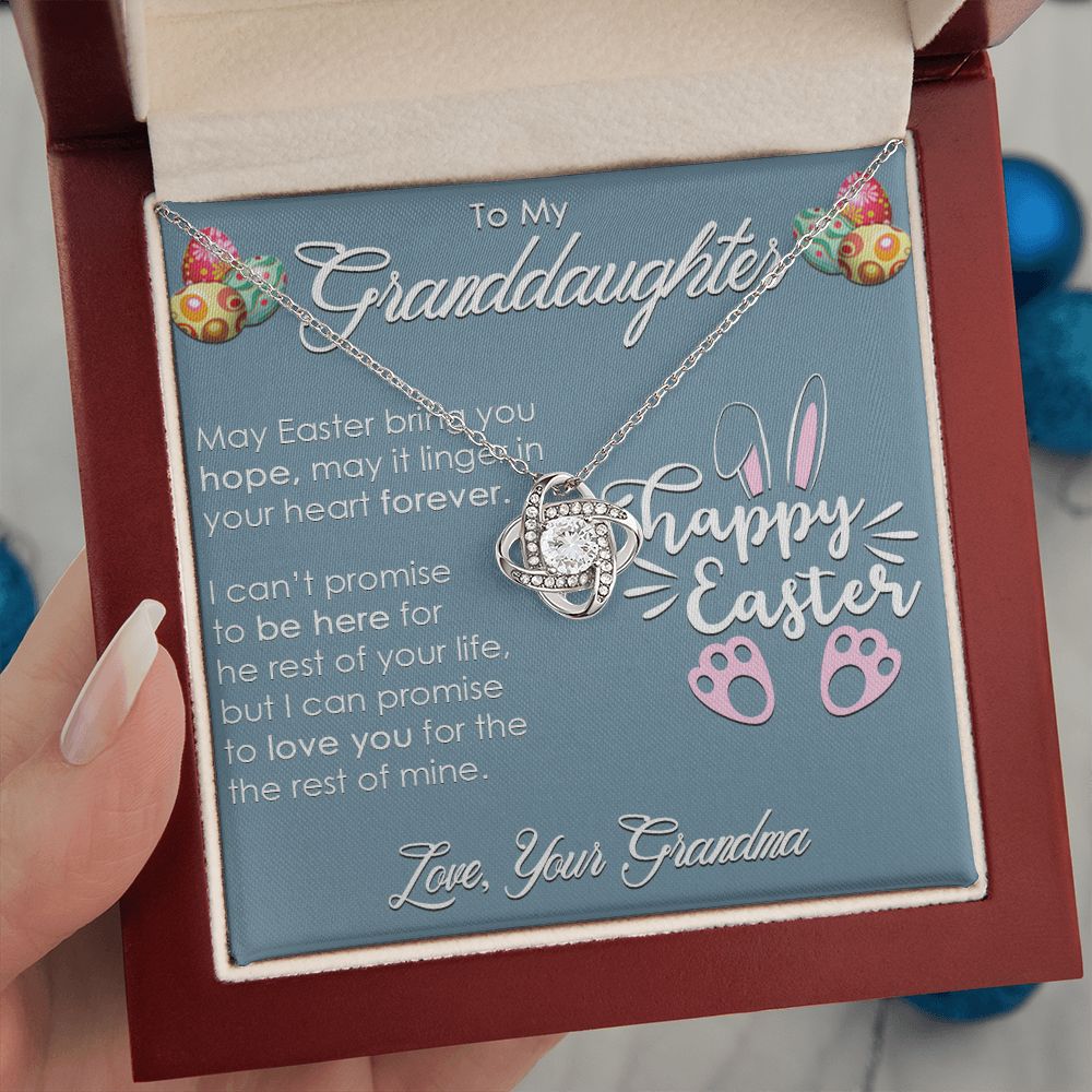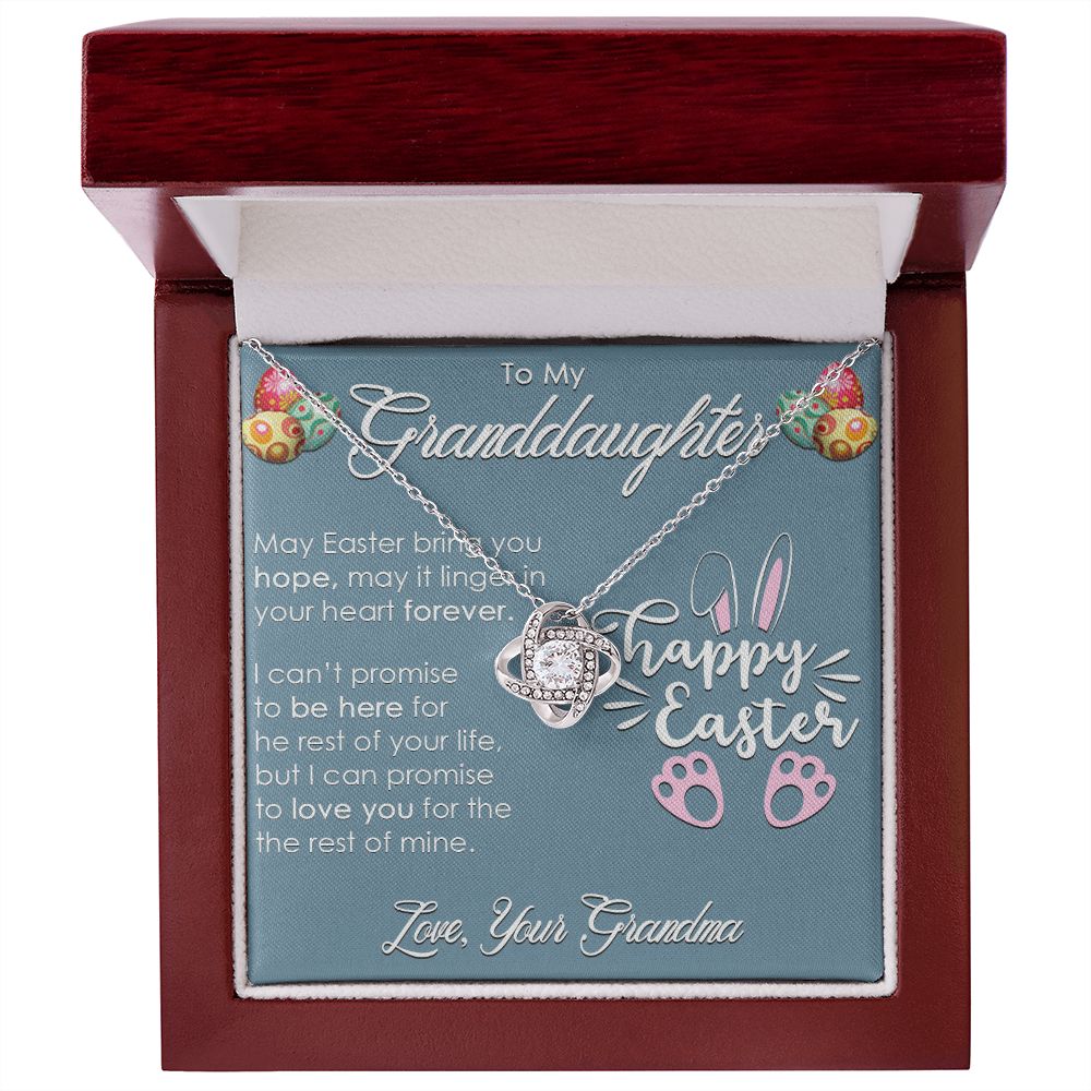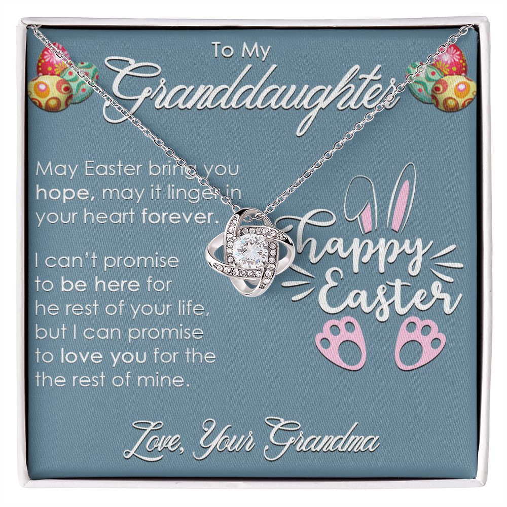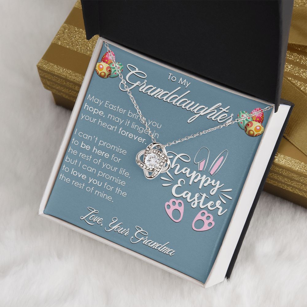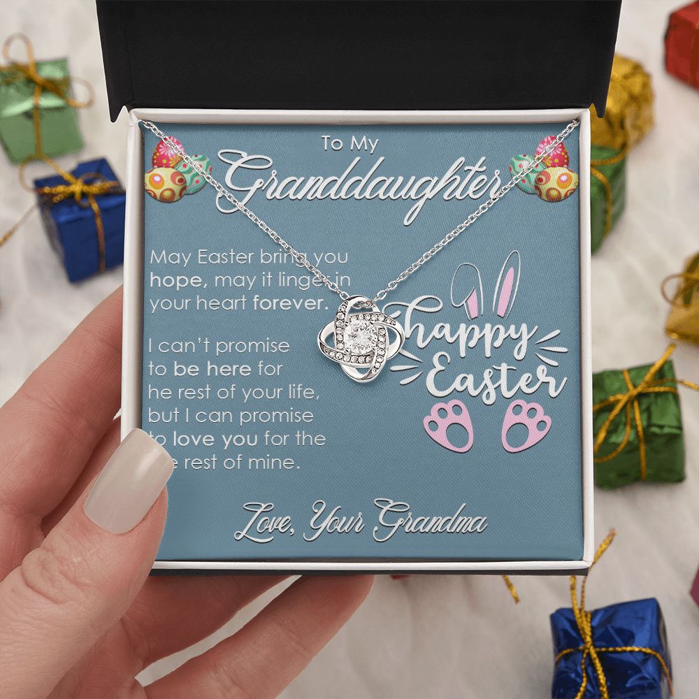 TO MY GRANDDAUGHTER, HAPPY EASTER, INTERLOCKING HEART NECKLACE WITH MESSAGE CARD, EASTER DAY GIFT FROM GRANDMOTHER