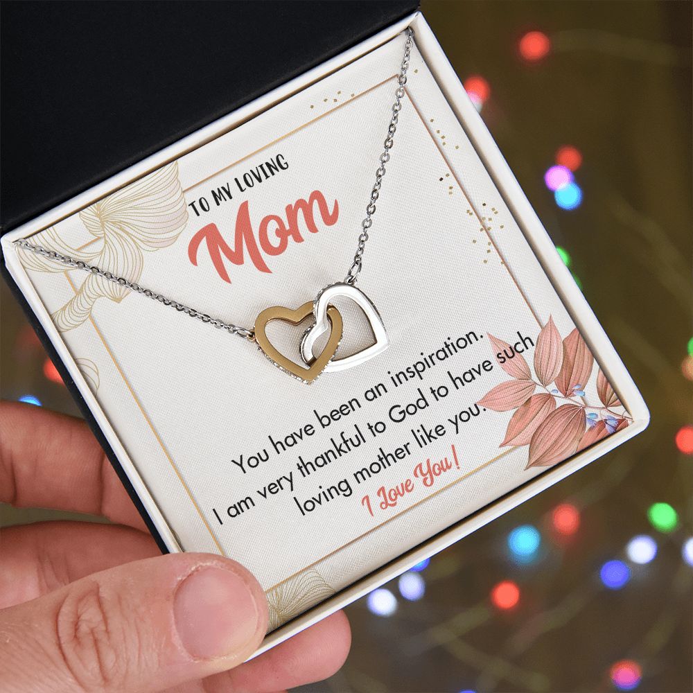 TO MY LOVING MOM, INTERLOCKING HEART NECKLACE FOR MOM, NECKLACE WITH MESSAGE CARD, BIRTHDAY, MOTHER'S DAY GIFT FOR HER