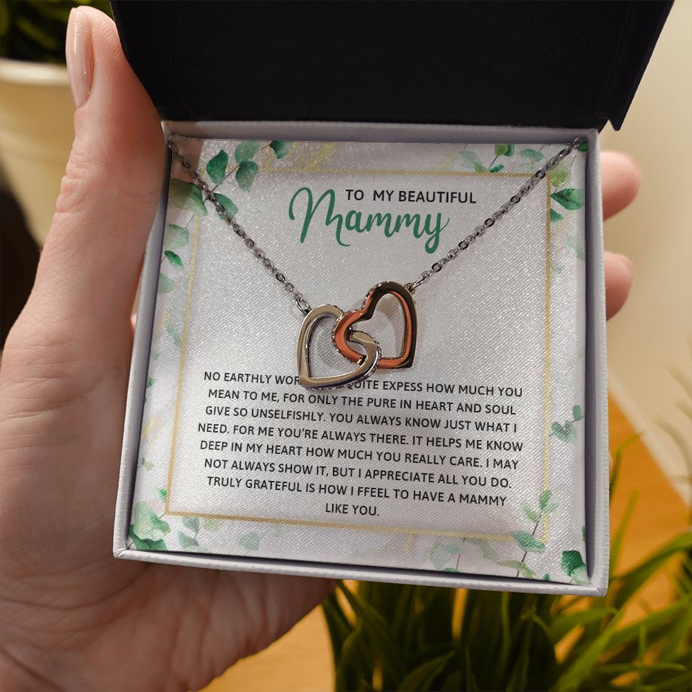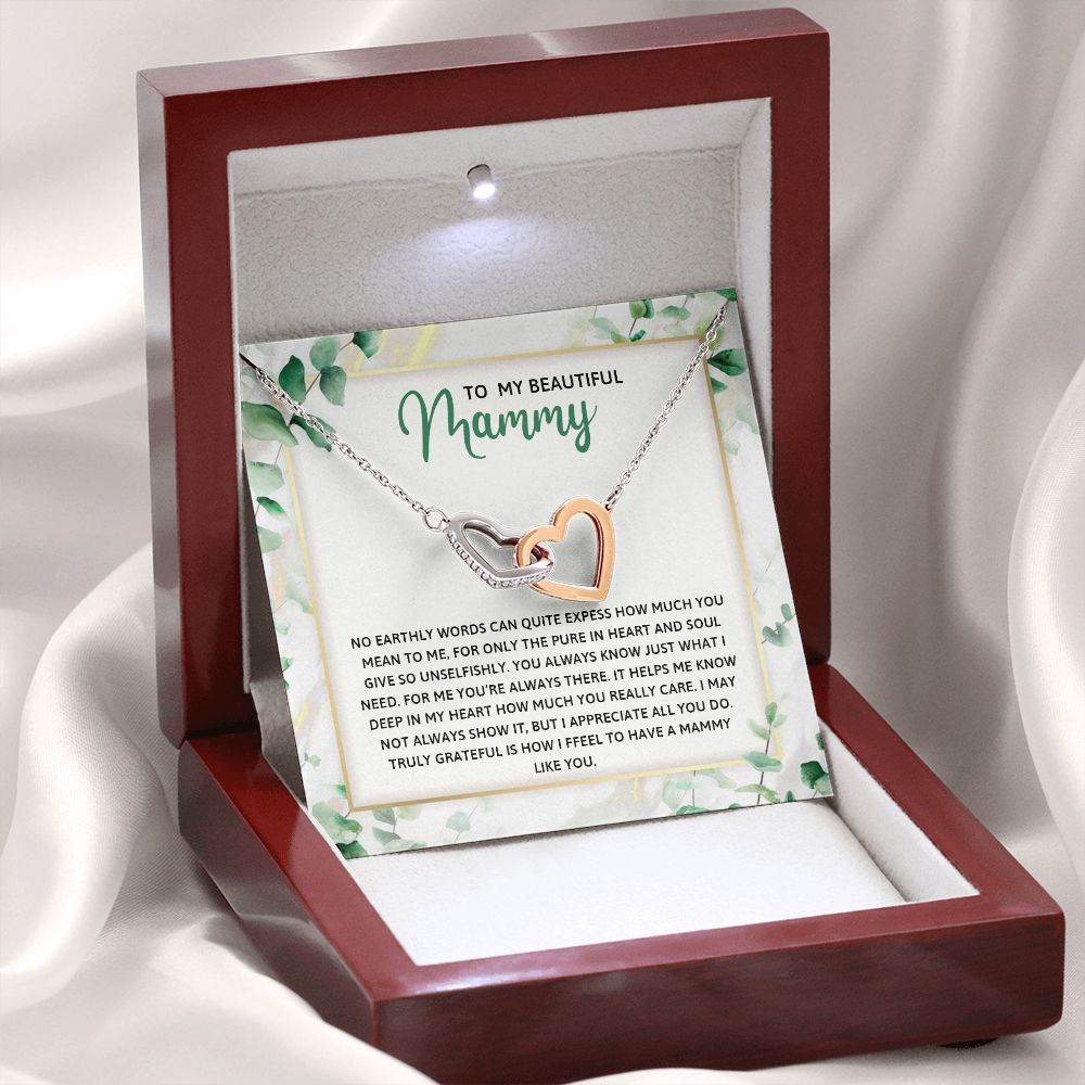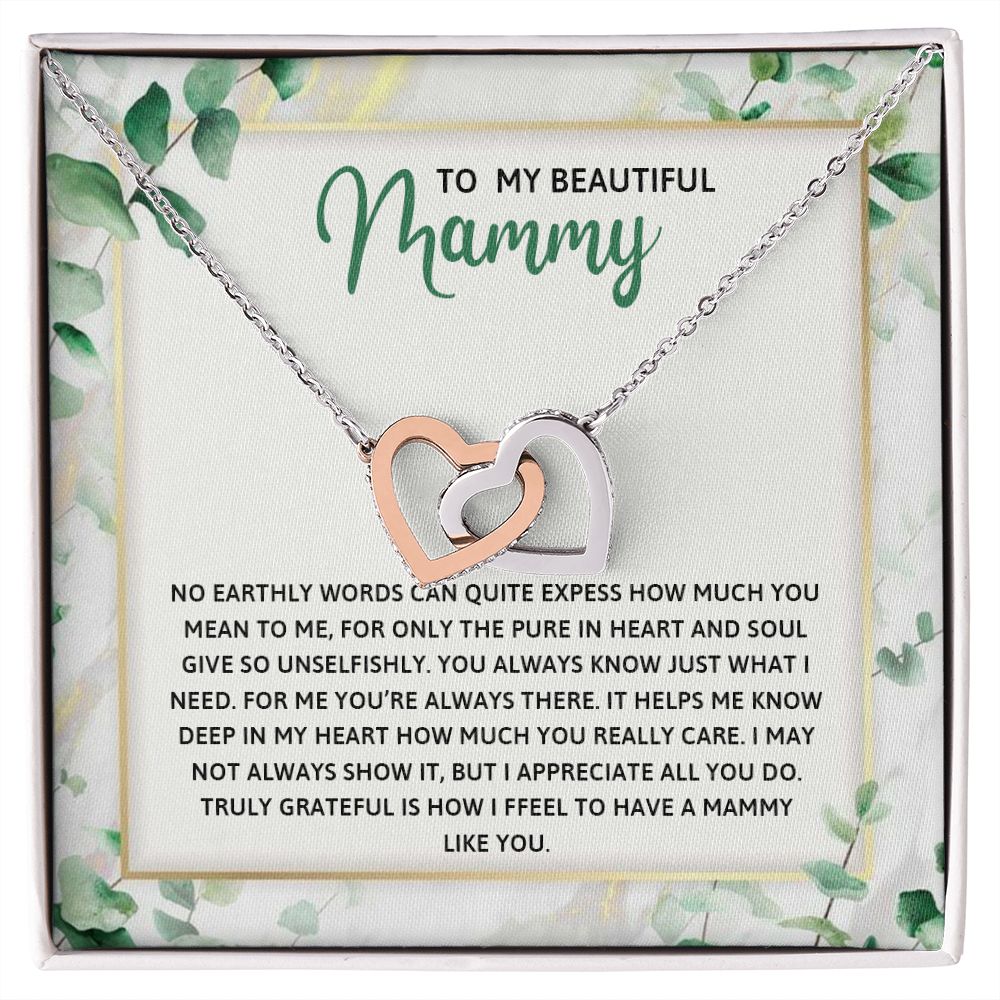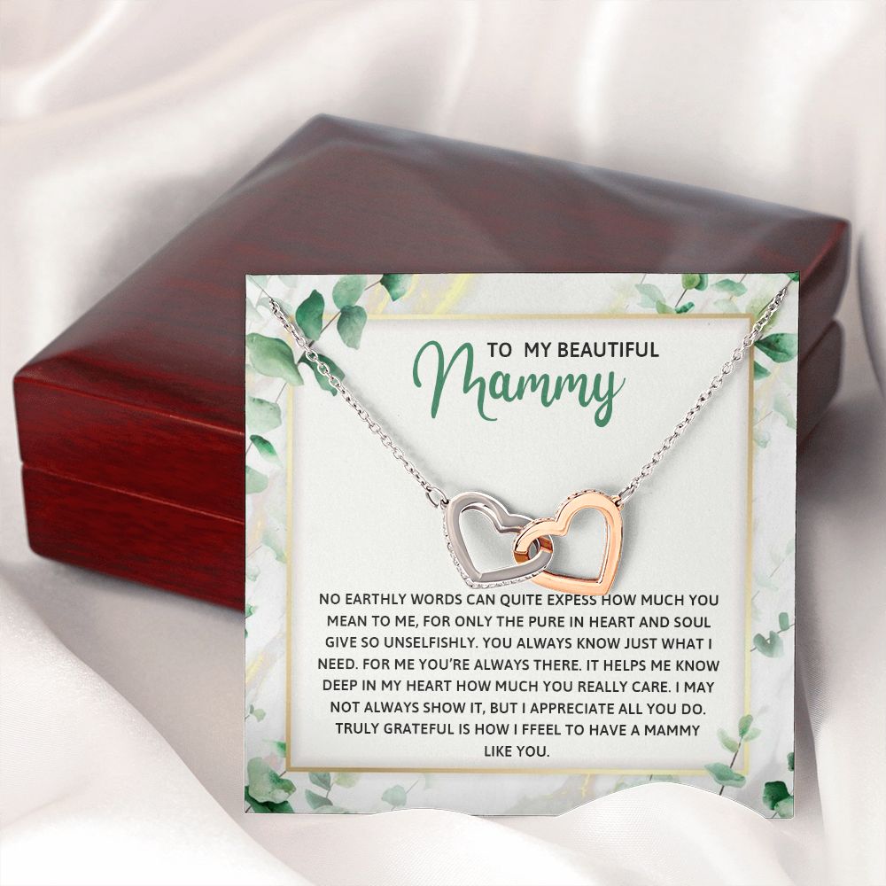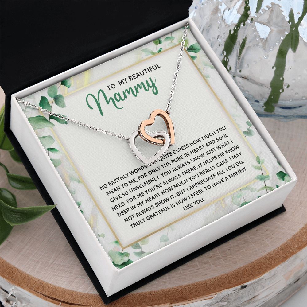 TO MY MAMMY, INTERLOCKING HEART NECKLACE FOR MOM, NECKLACE WITH MESSAGE CARD, BIRTHDAY, MOTHER'S DAY GIFT FOR HER