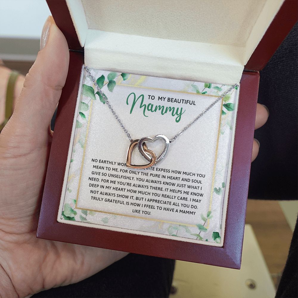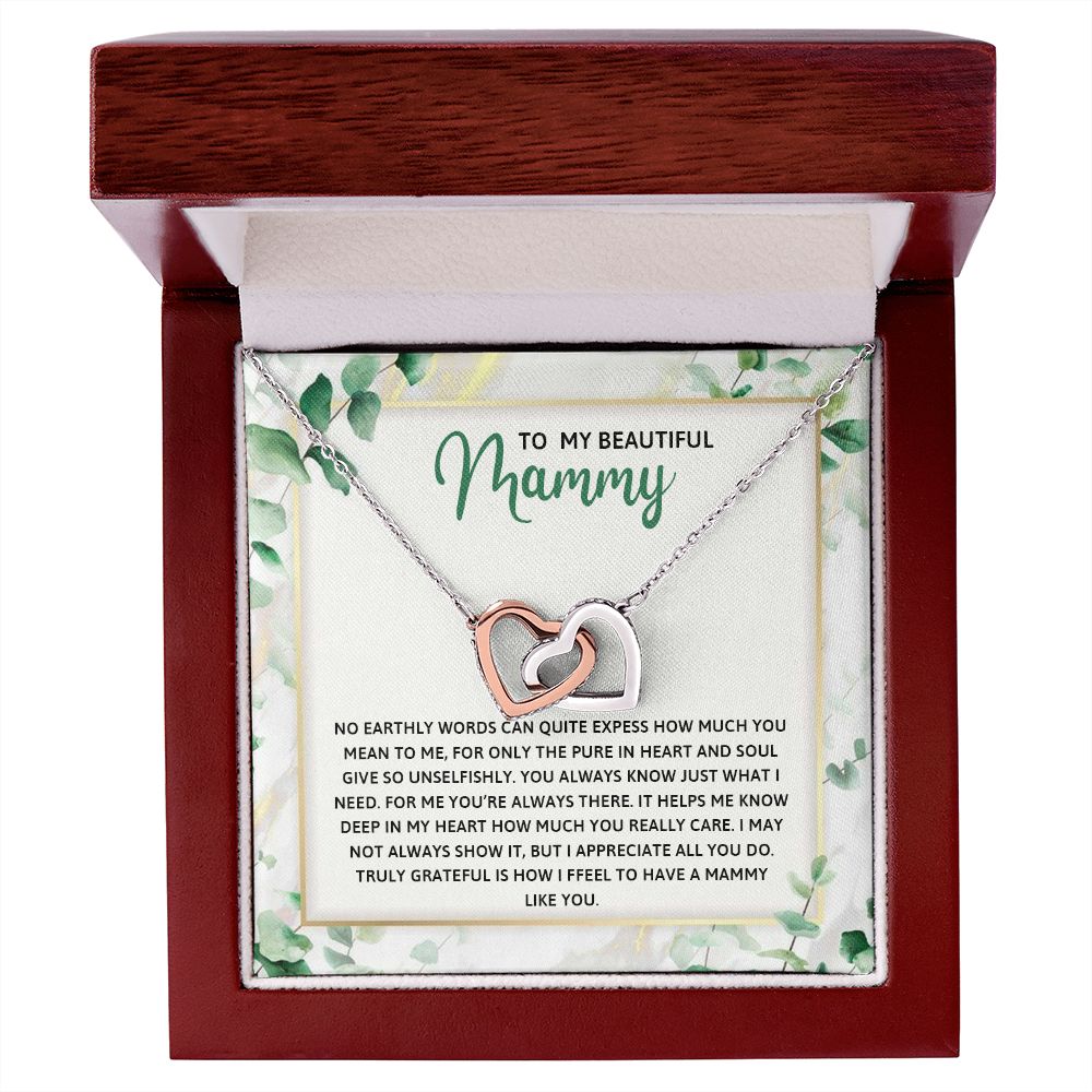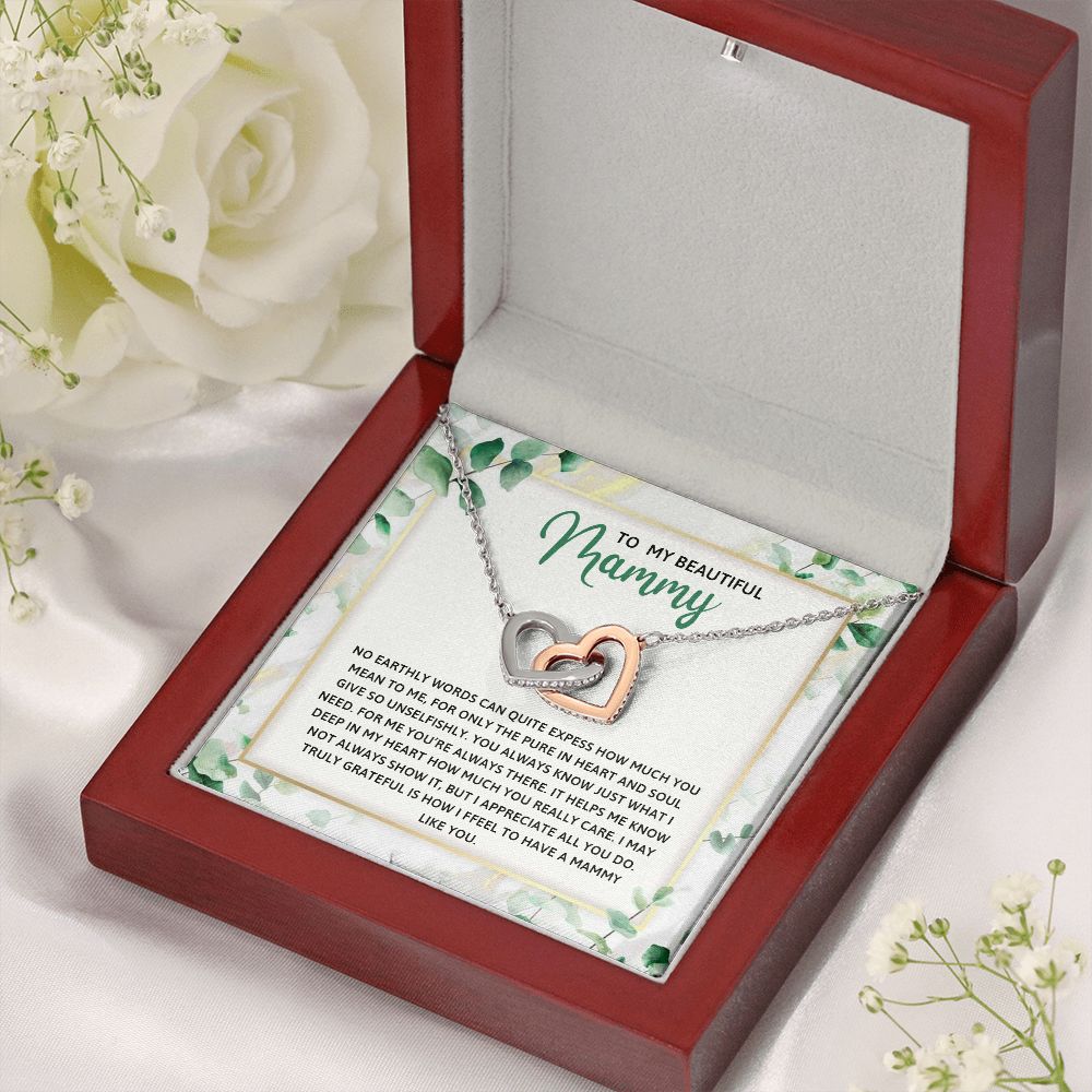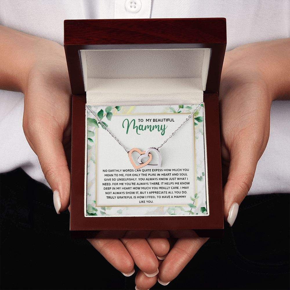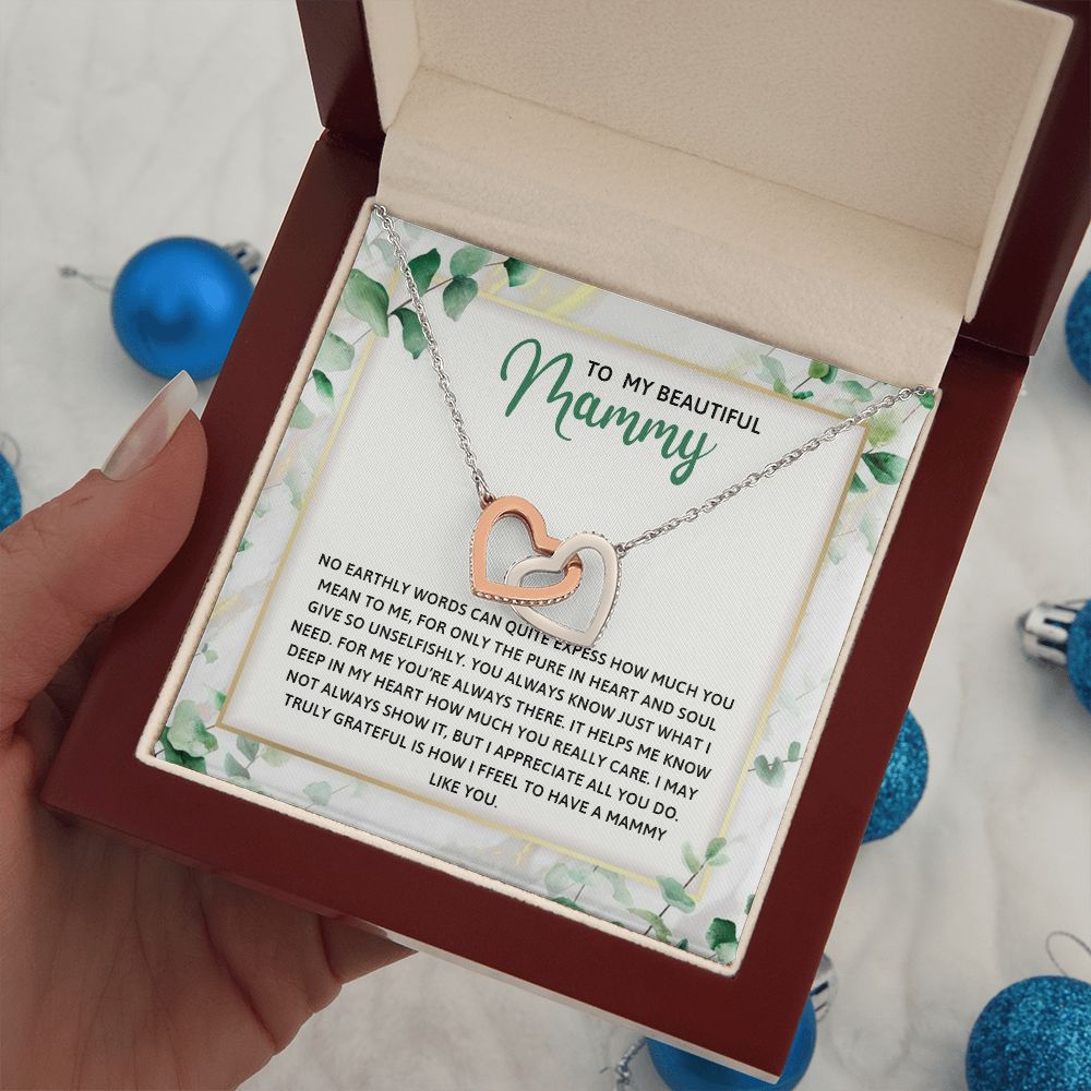 TO MY MAMMY, INTERLOCKING HEART NECKLACE FOR MOM, NECKLACE WITH MESSAGE CARD, BIRTHDAY, MOTHER'S DAY GIFT FOR HER