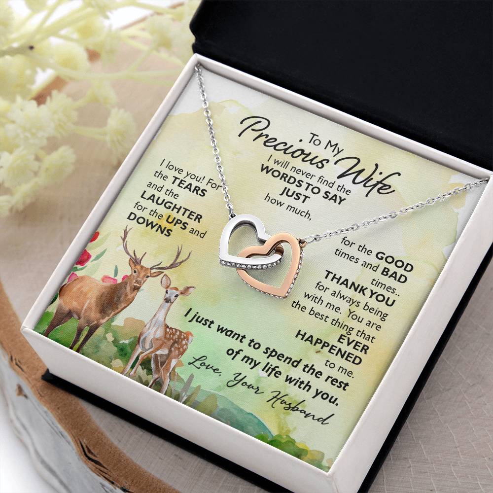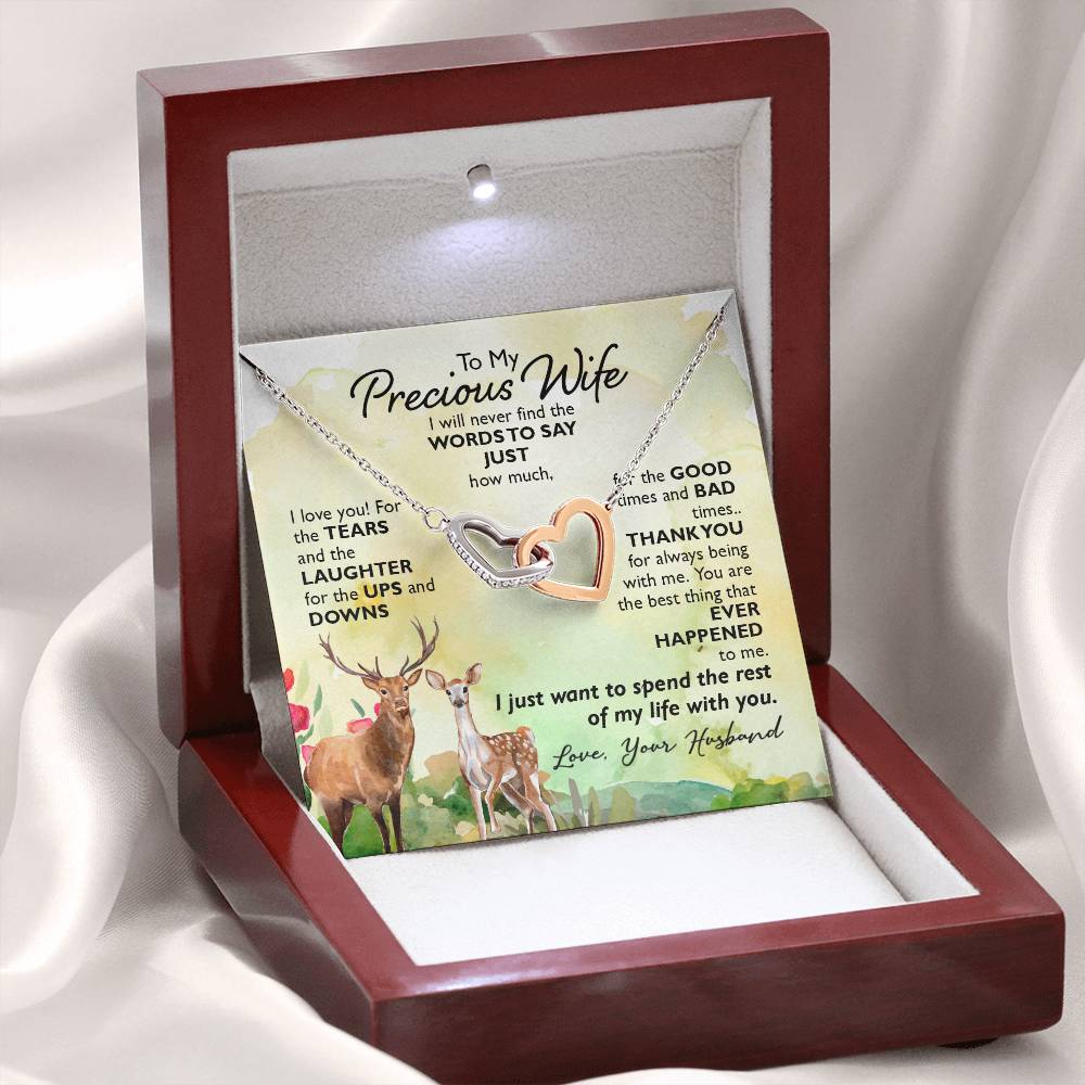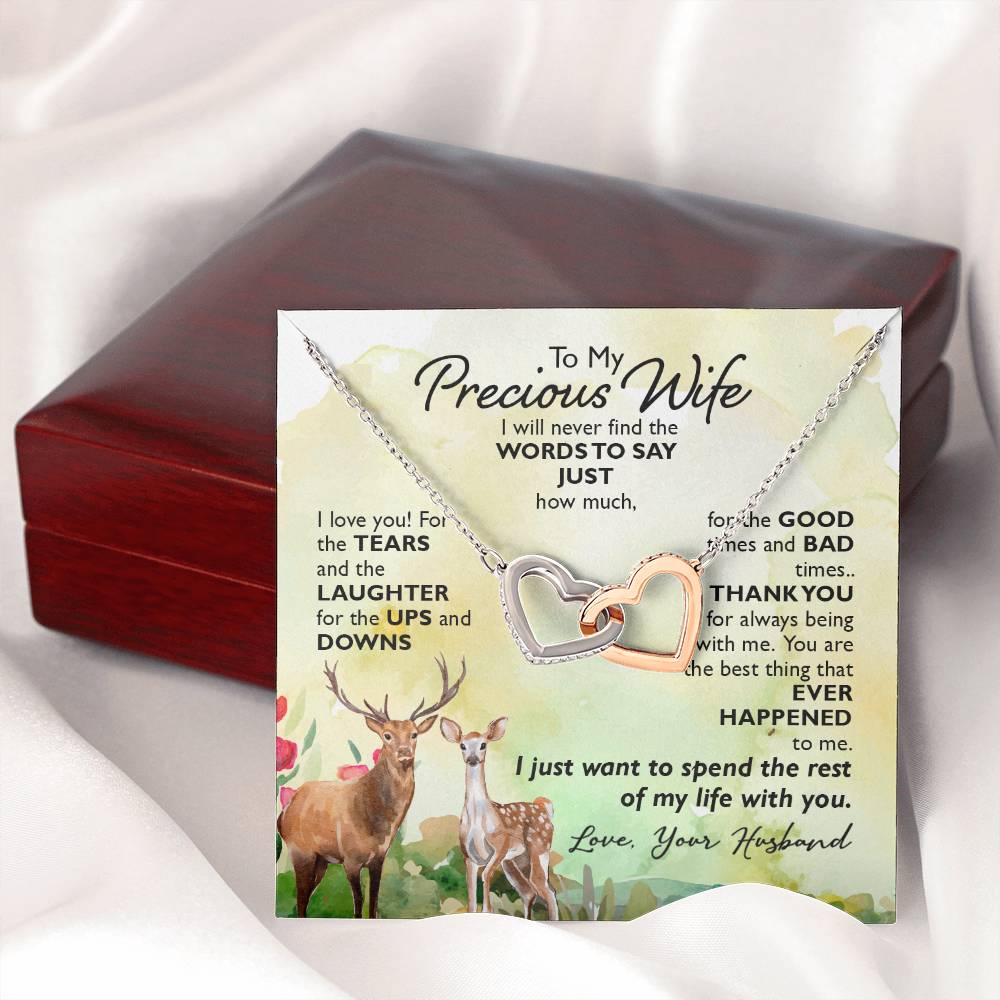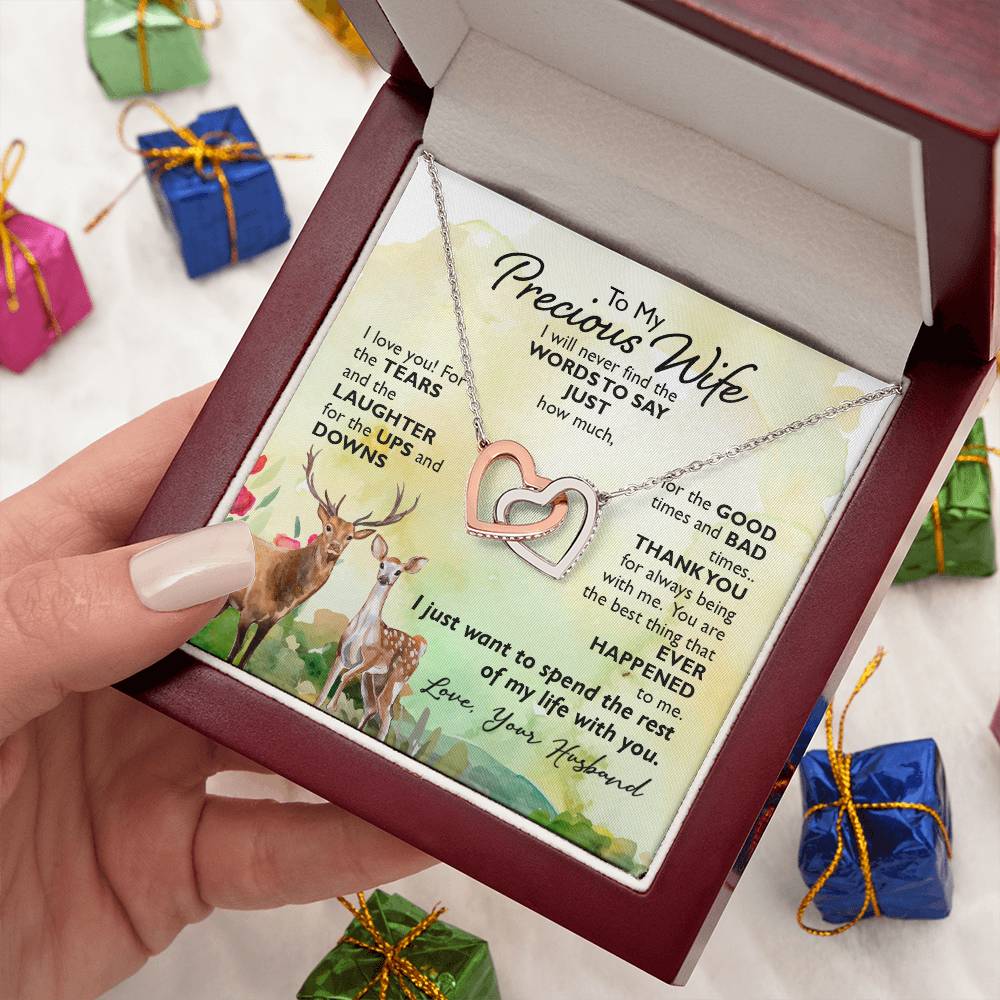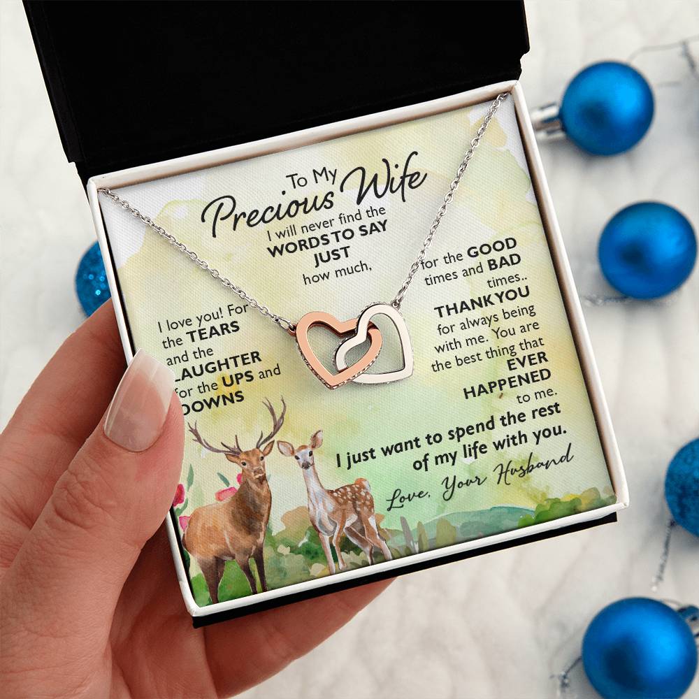 TO MY PRECIOUS WIFE, INTERLOCKING HEART NECKLACE, UNIQUE GIFT WITH BEAUTIFUL MESSAGE CARD FOR HER, BIRTHDAY AND ANNIVERSARY GIFT, NECKLACE JWELERY FOR HER