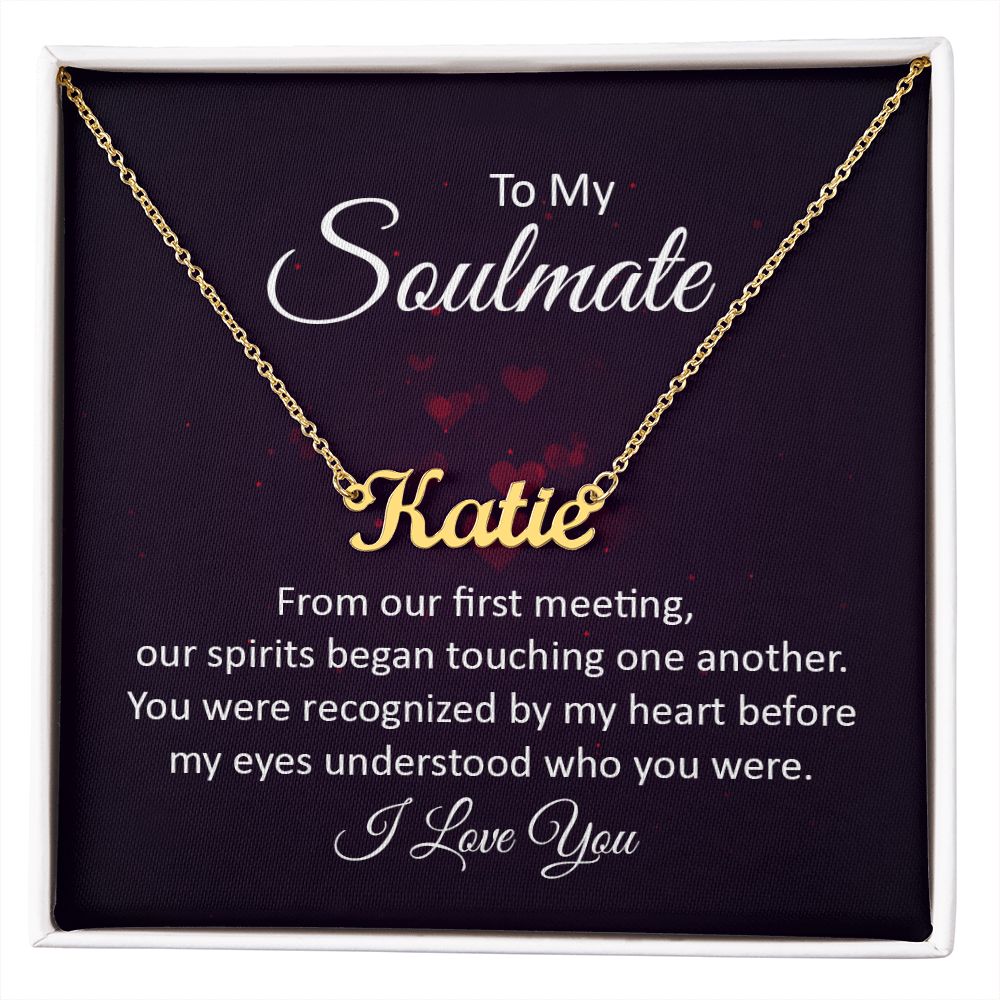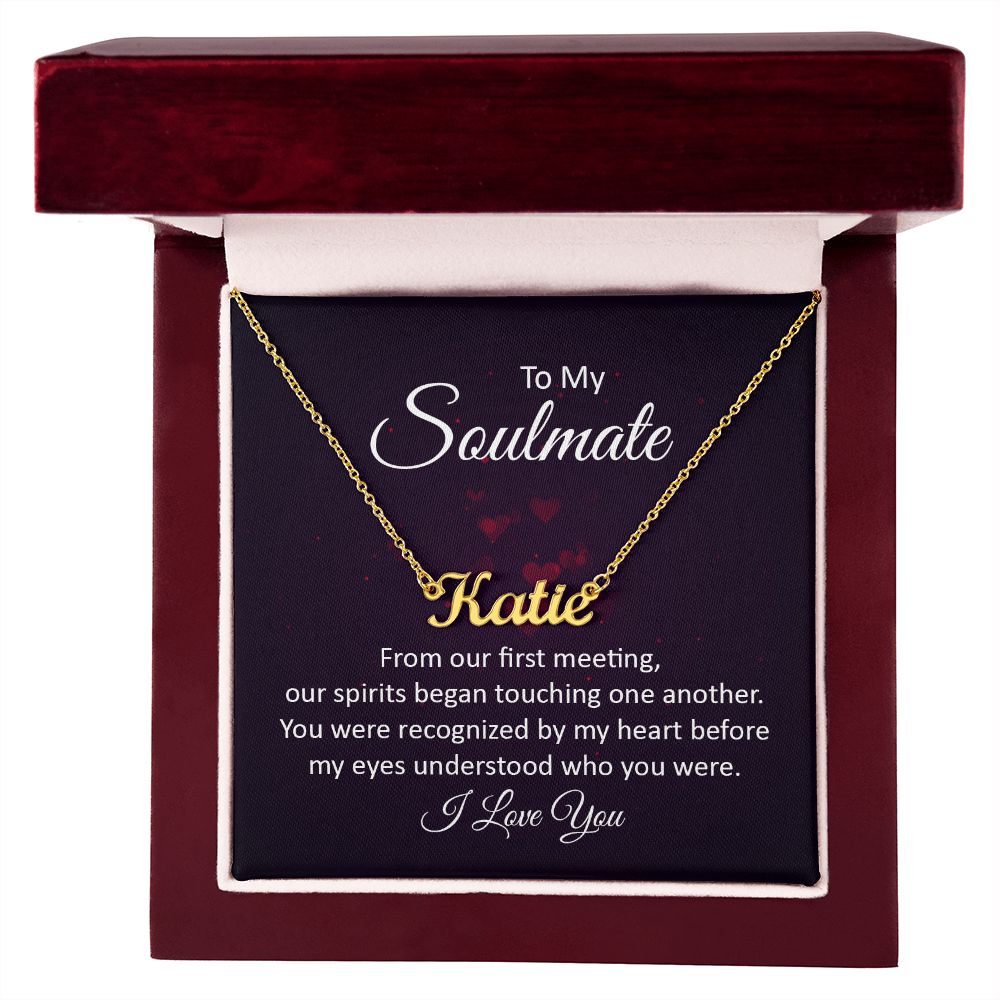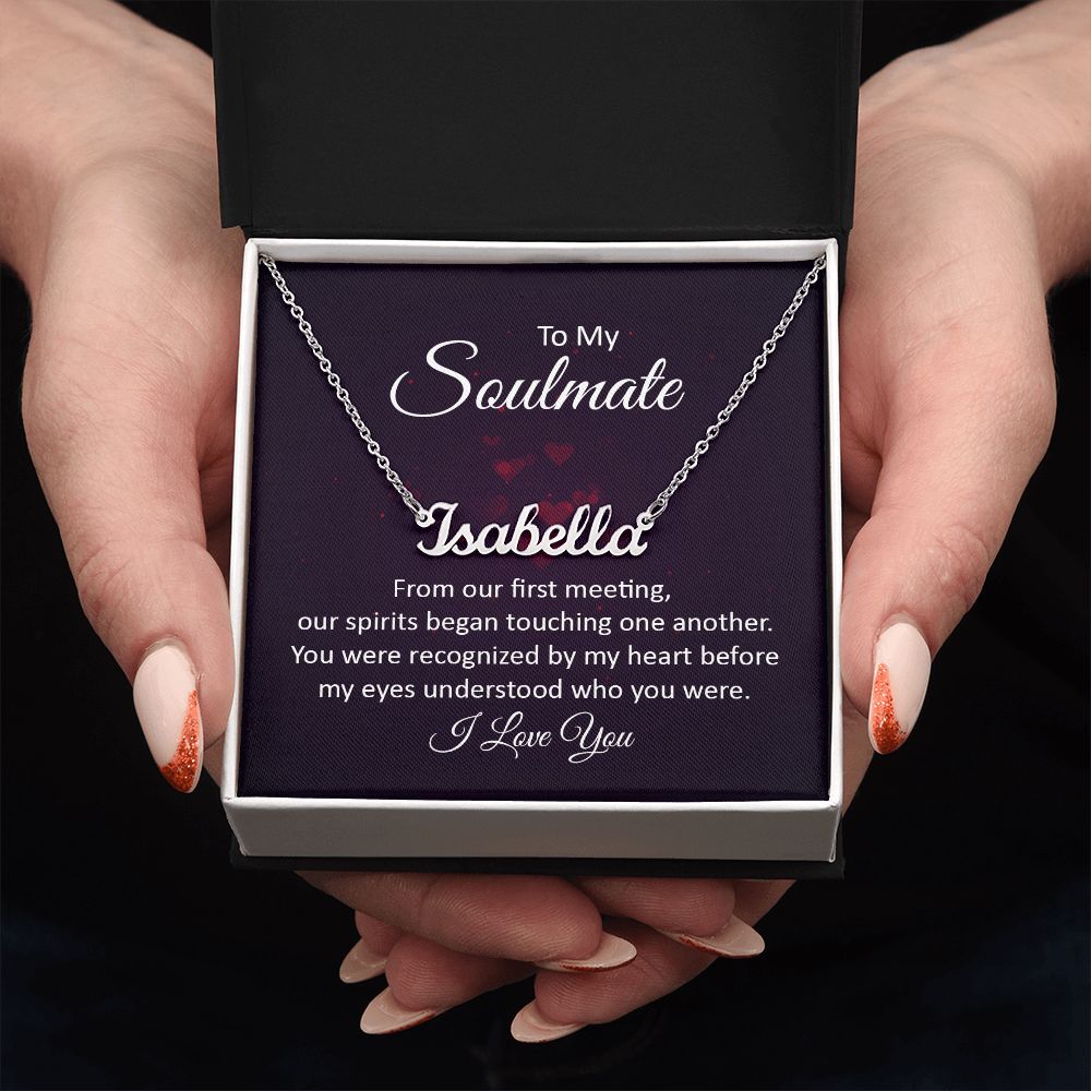 TO MY SOULMATE, CUSTOM NAME NECKLACE, GIFT FOR HER, NECKLACE PENDANT WITH MESSAGE CARD, FOR WIFE FROM HUSBAND