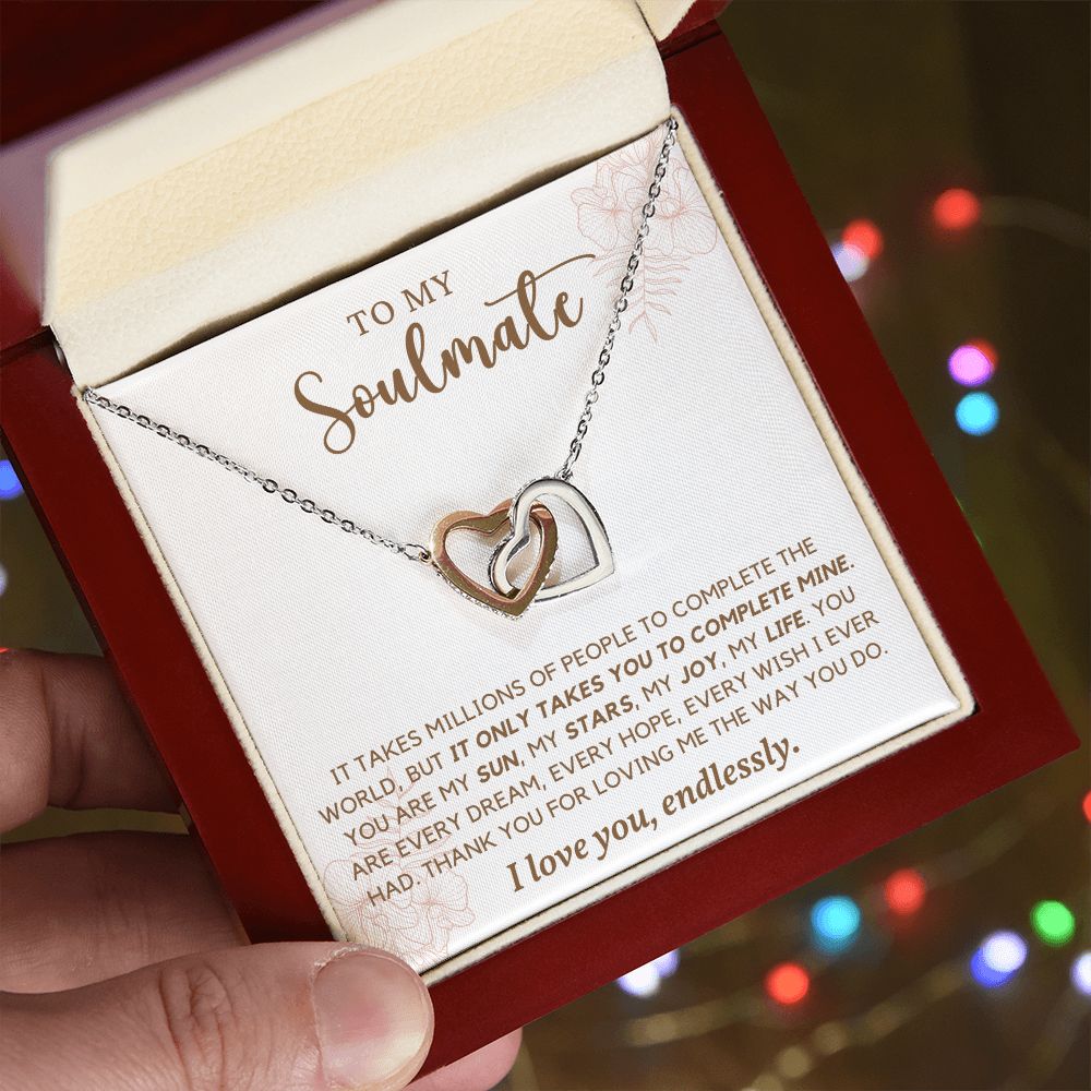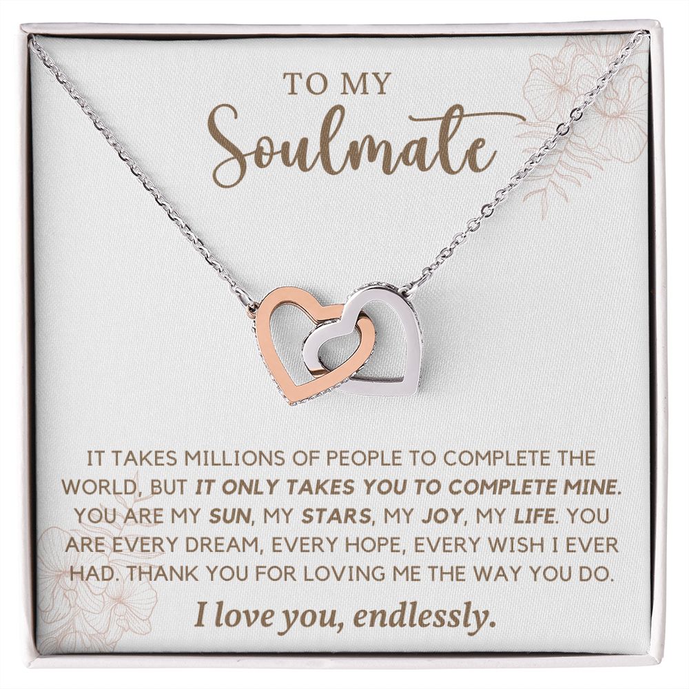 To My Soulmate I Love You Endlessly, Interlocking Heart Necklace, Gift For Her, Birthday, Anniversary Gift For Wife