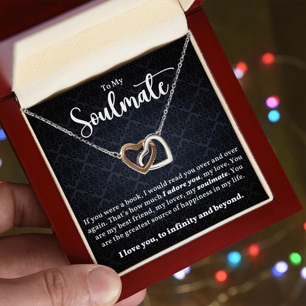 TO MY SOULMATE, INTERLOCKING HEART NECKLACE WITH MESSAGE CARD, GIFT FOR HER