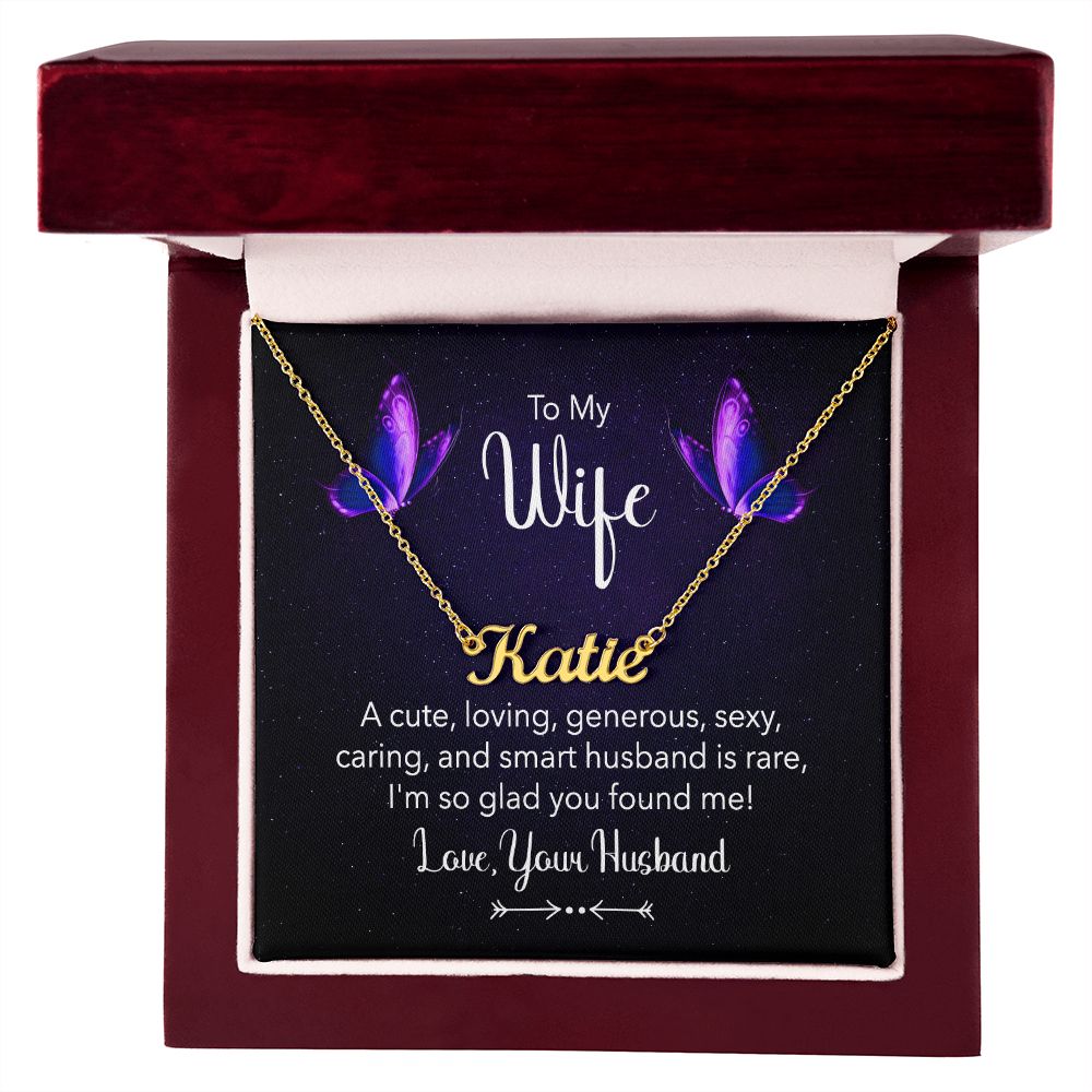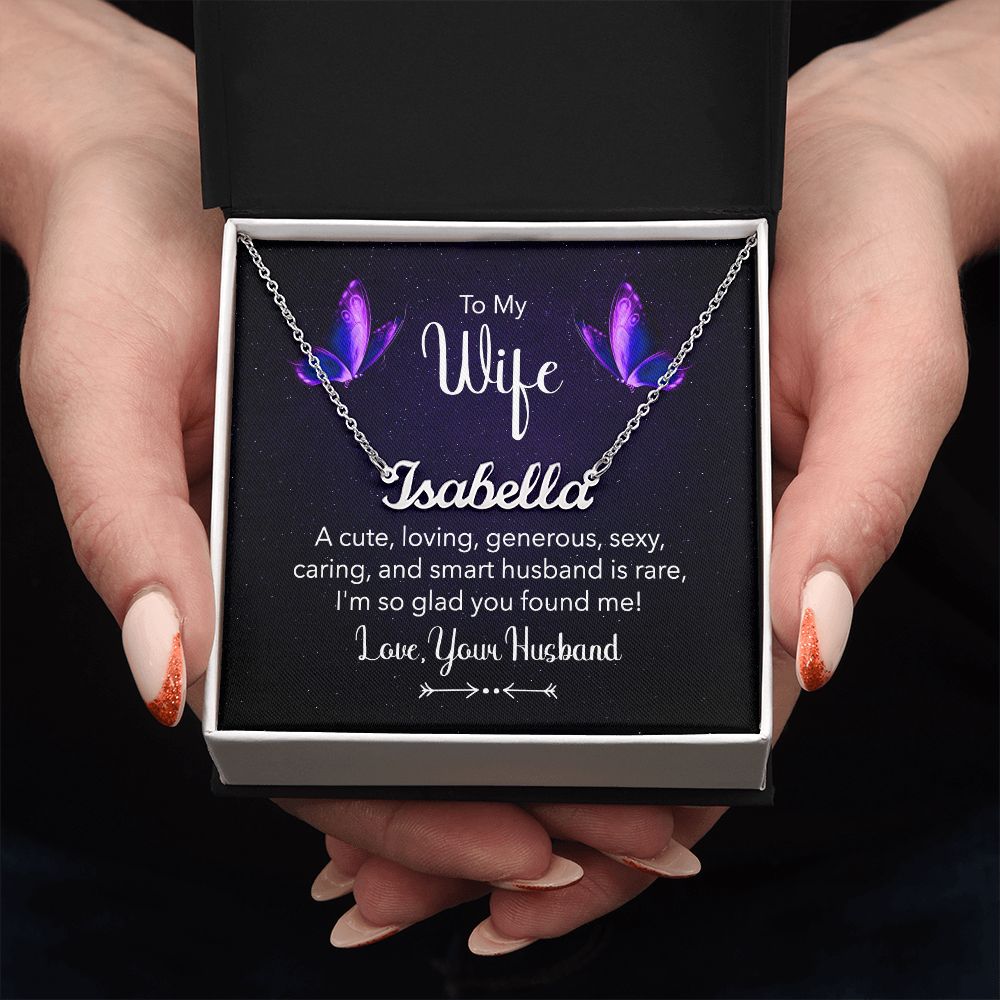 TO MY WIFE, CUSTOM NAME NECKLACE, GIFT FOR HER, NECKLACE PENDANT WITH MESSAGE CARD, FOR WIFE FROM HUSBAND