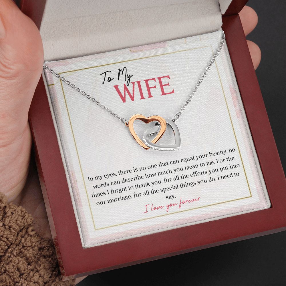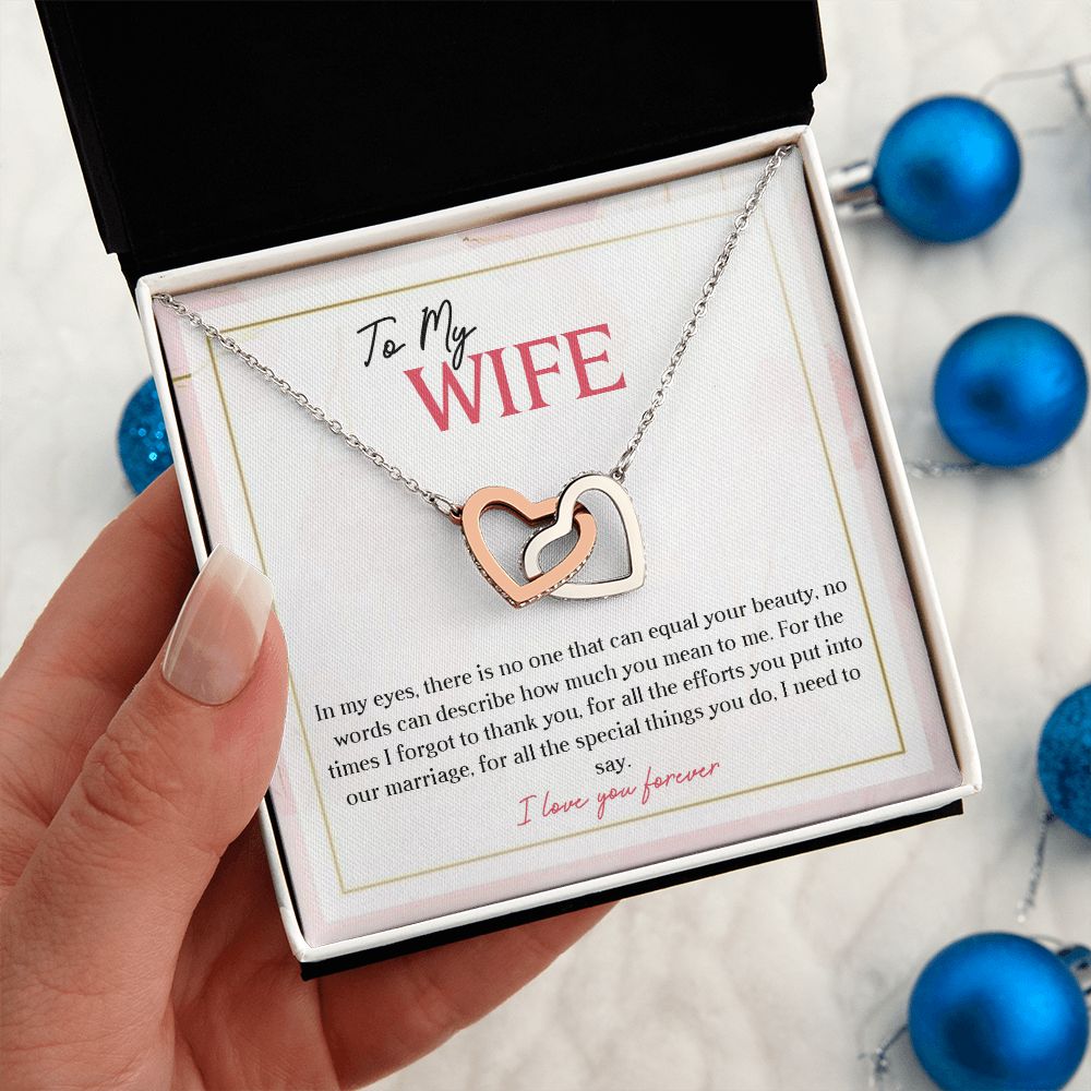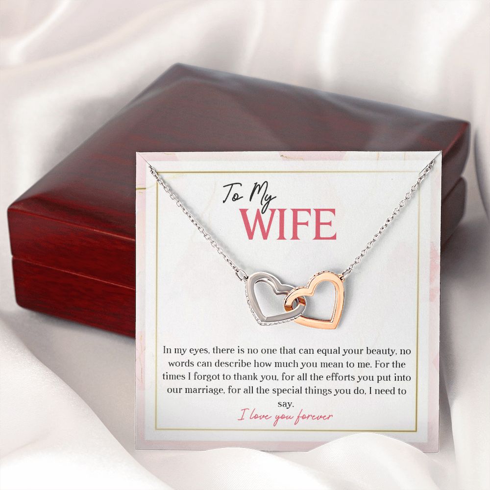 To My Wife I Love You Forever, Interlocking Hearts Necklace, For Wife With Message Card, Birthday, Valentine's Day Gift For Her