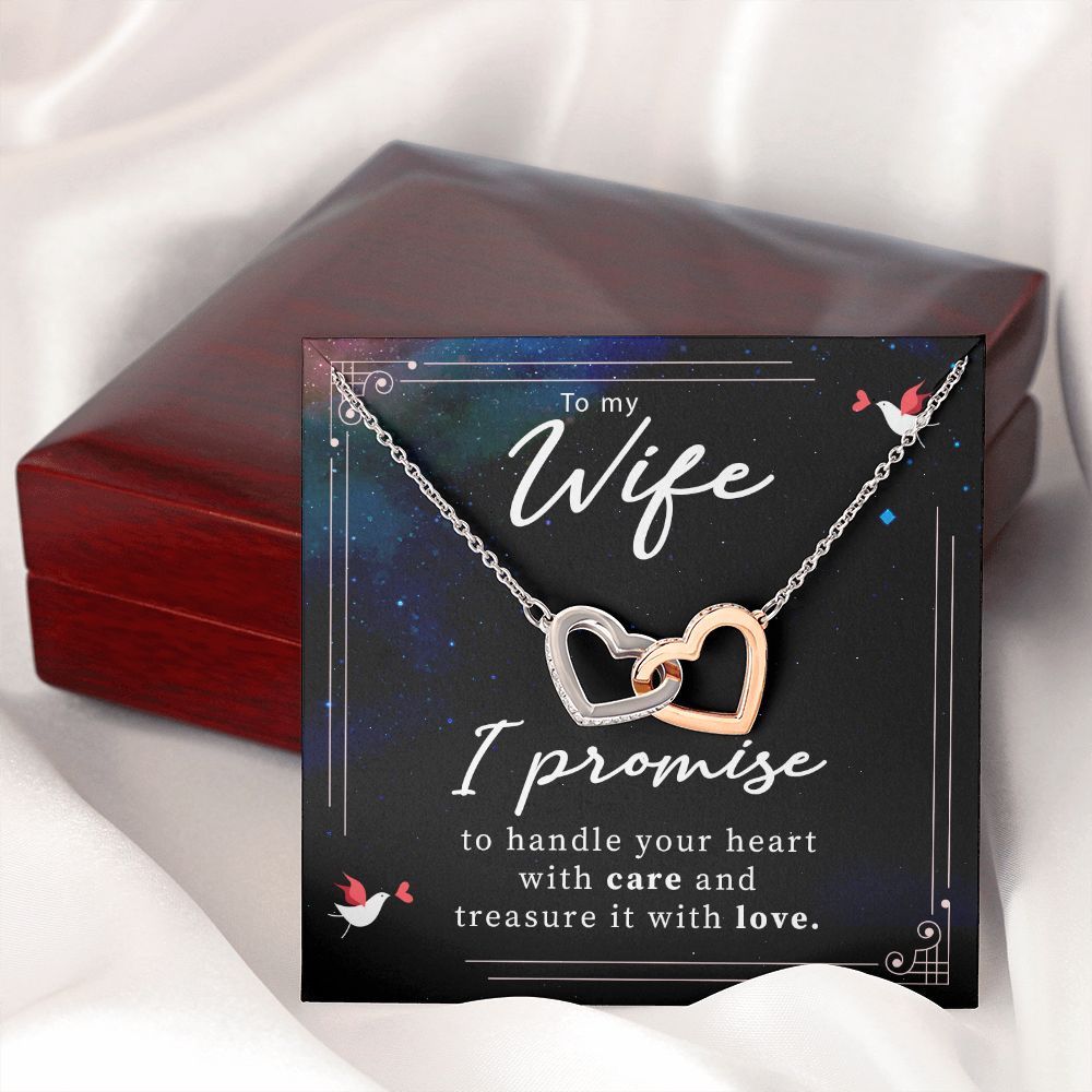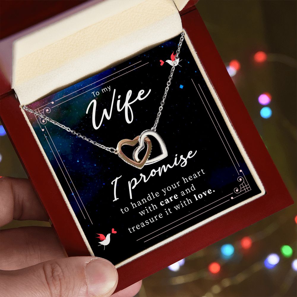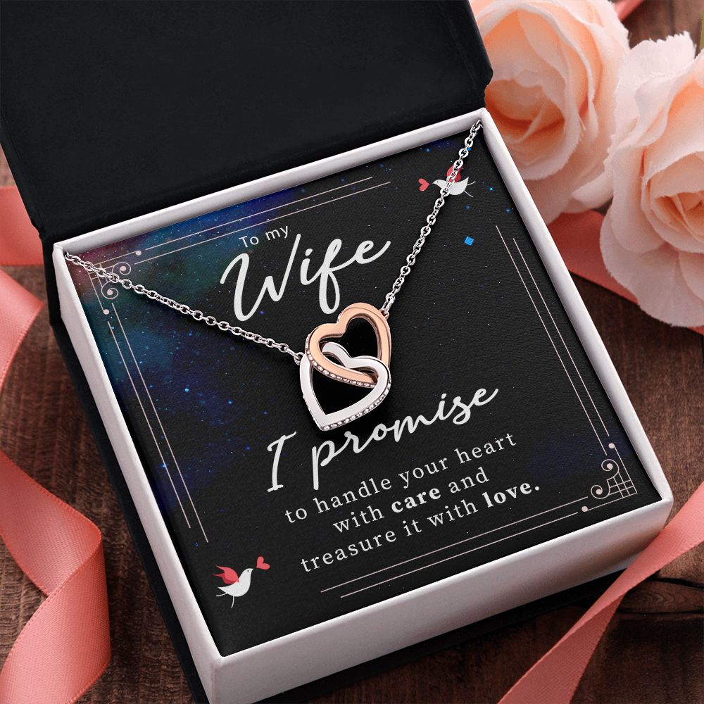 TO MY WIFE, INTERLOCKING HEART NECKLACE WITH MESSAGE CARD, BIRTHDAY AND ANNIVERSARY GIFT FOR WIFE, NECKLACE JWELERY FOR HER