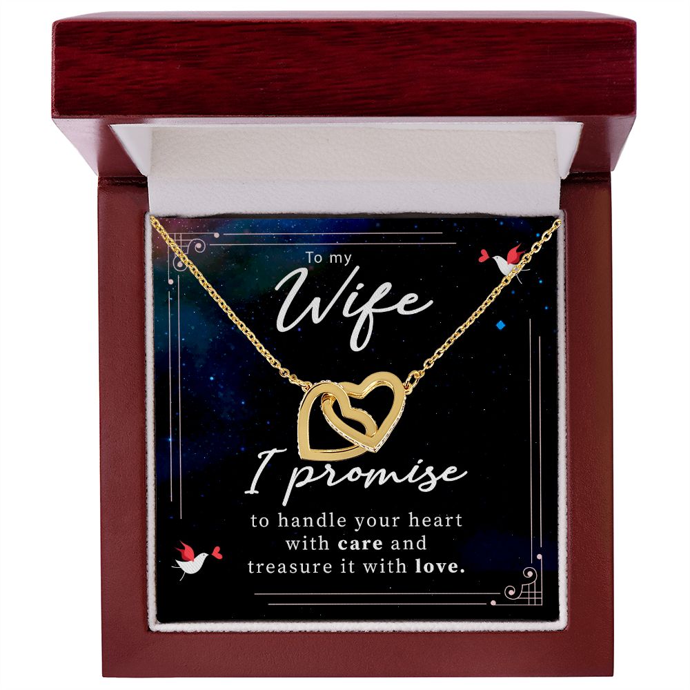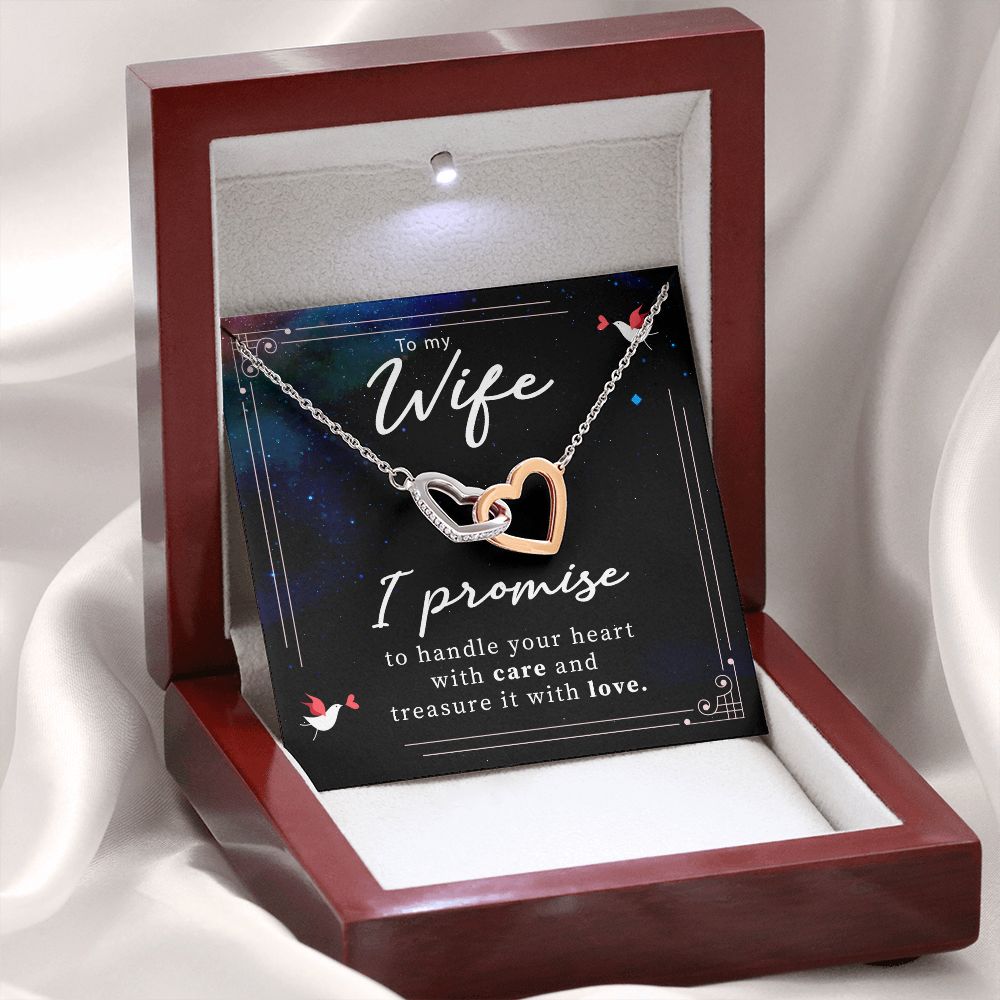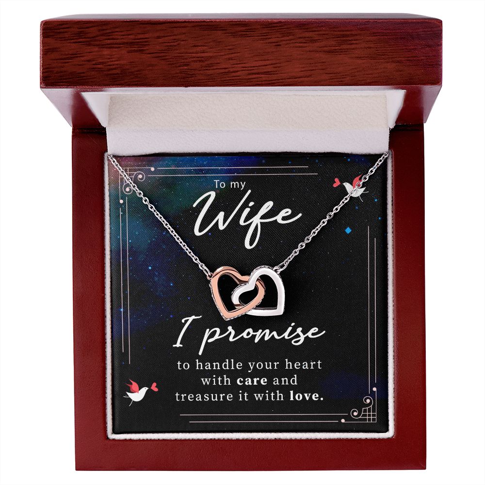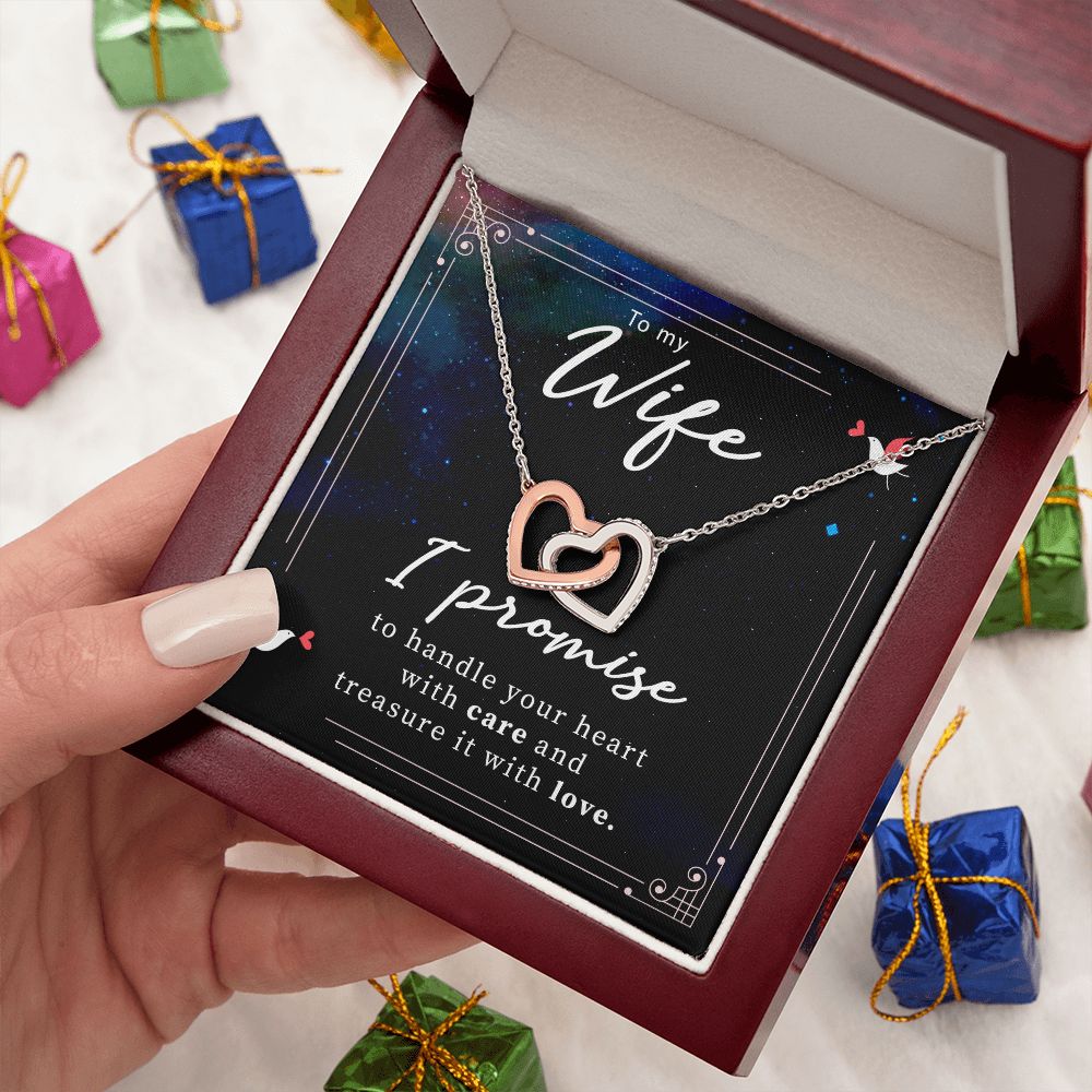TO MY WIFE, INTERLOCKING HEART NECKLACE WITH MESSAGE CARD, BIRTHDAY AND ANNIVERSARY GIFT FOR WIFE, NECKLACE JWELERY FOR HER