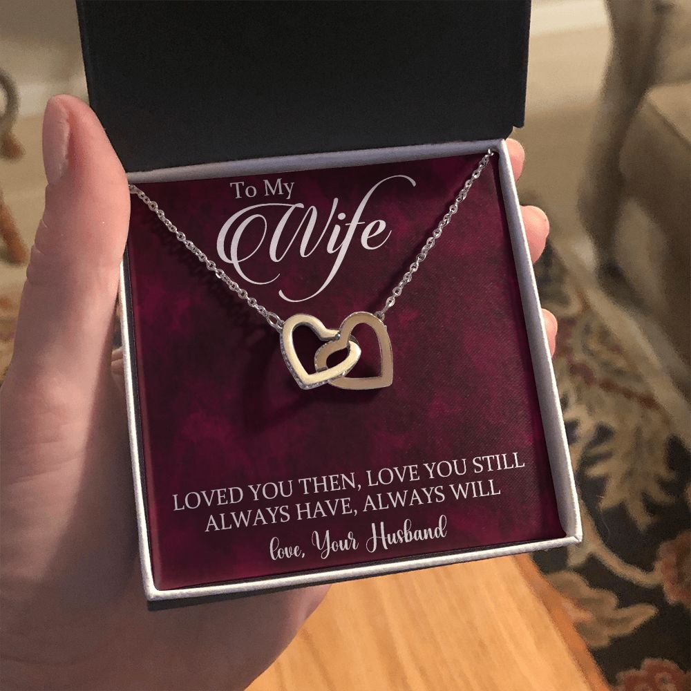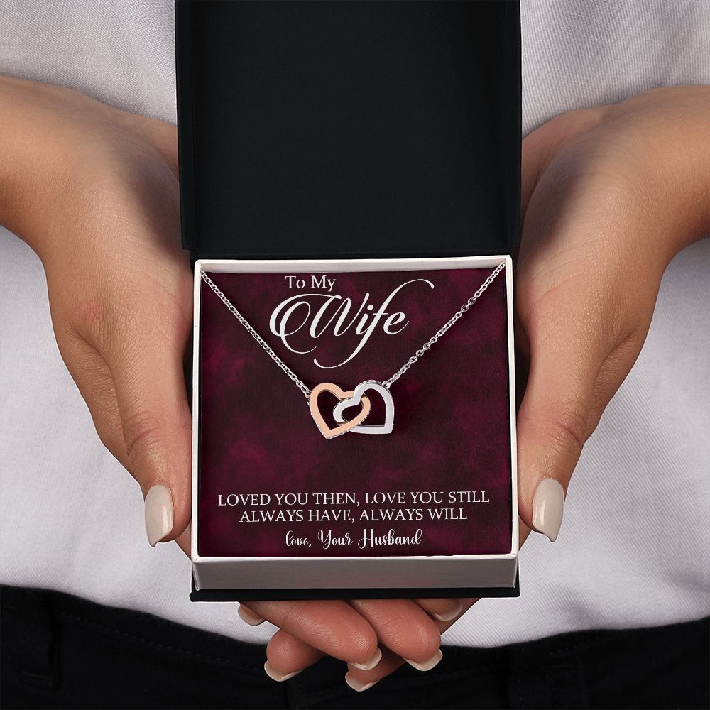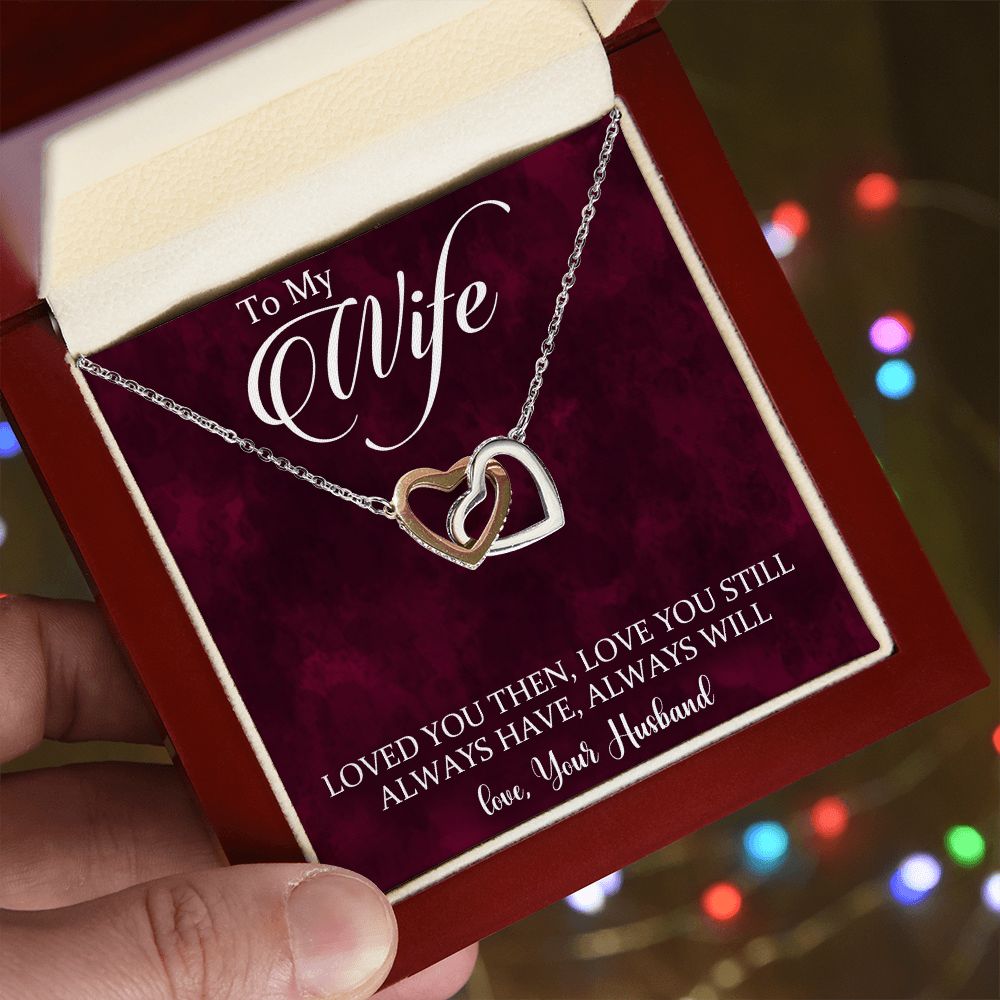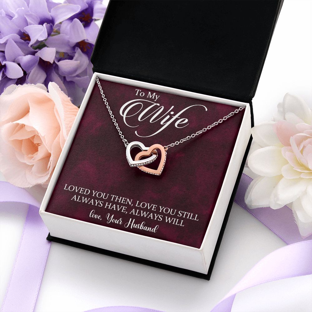 To My Wife Loved You Then Love You Still, Interlocking Hearts Necklace, For Wife With Message Card, Birthday, Valentine's Day Gift For Her