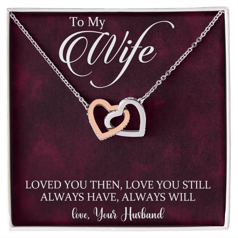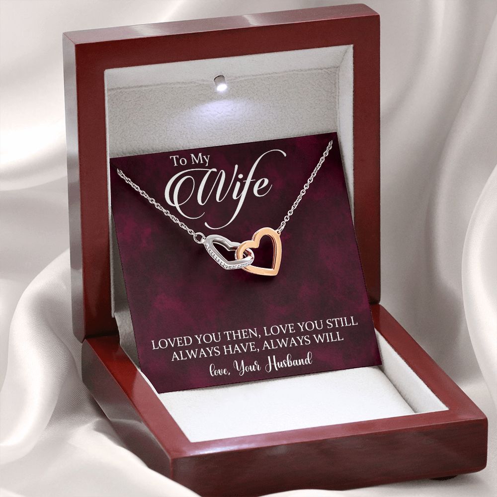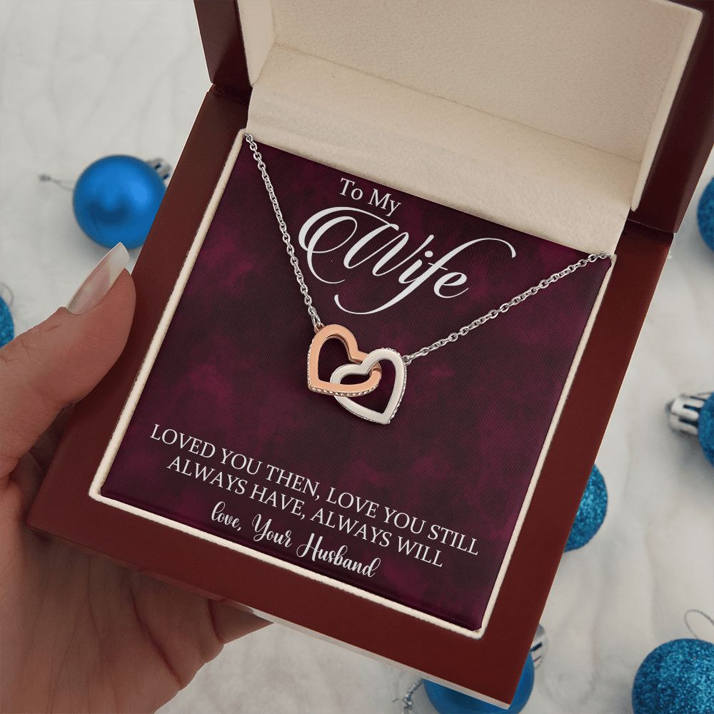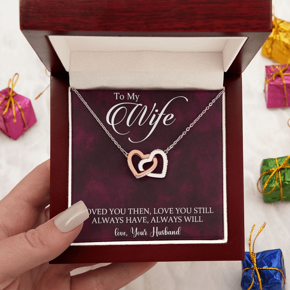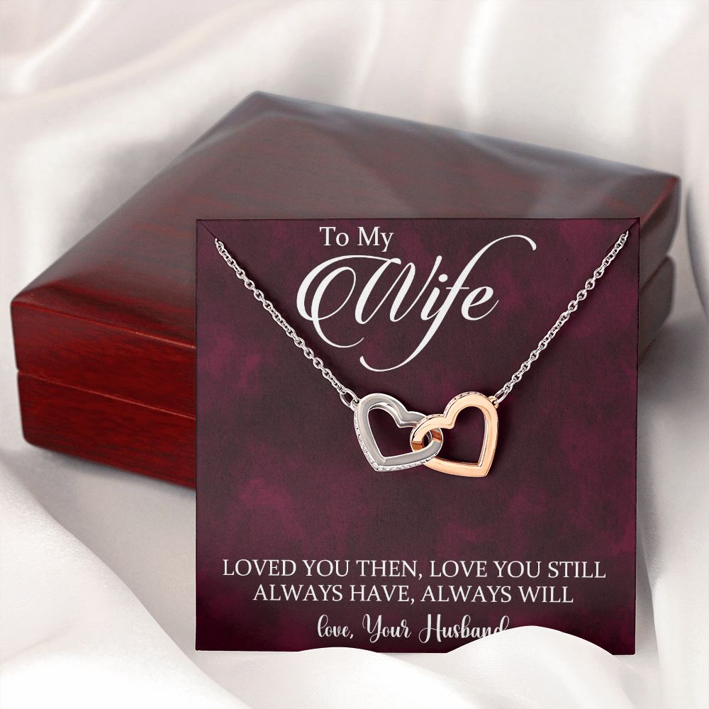 To My Wife Loved You Then Love You Still, Interlocking Hearts Necklace, For Wife With Message Card, Birthday, Valentine's Day Gift For Her