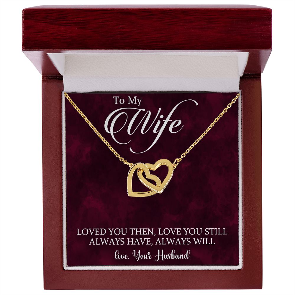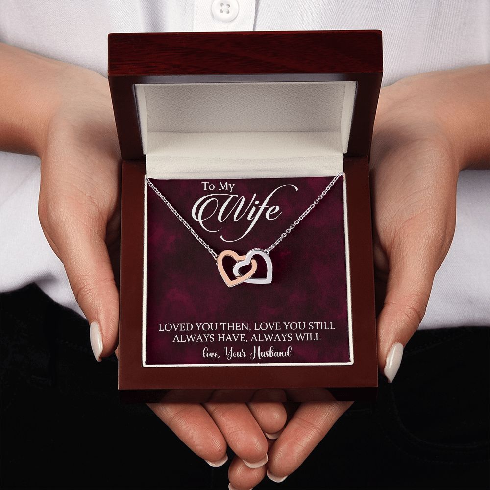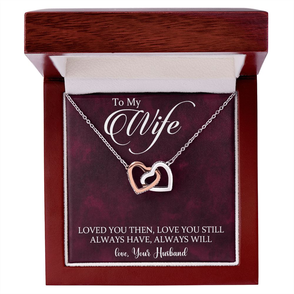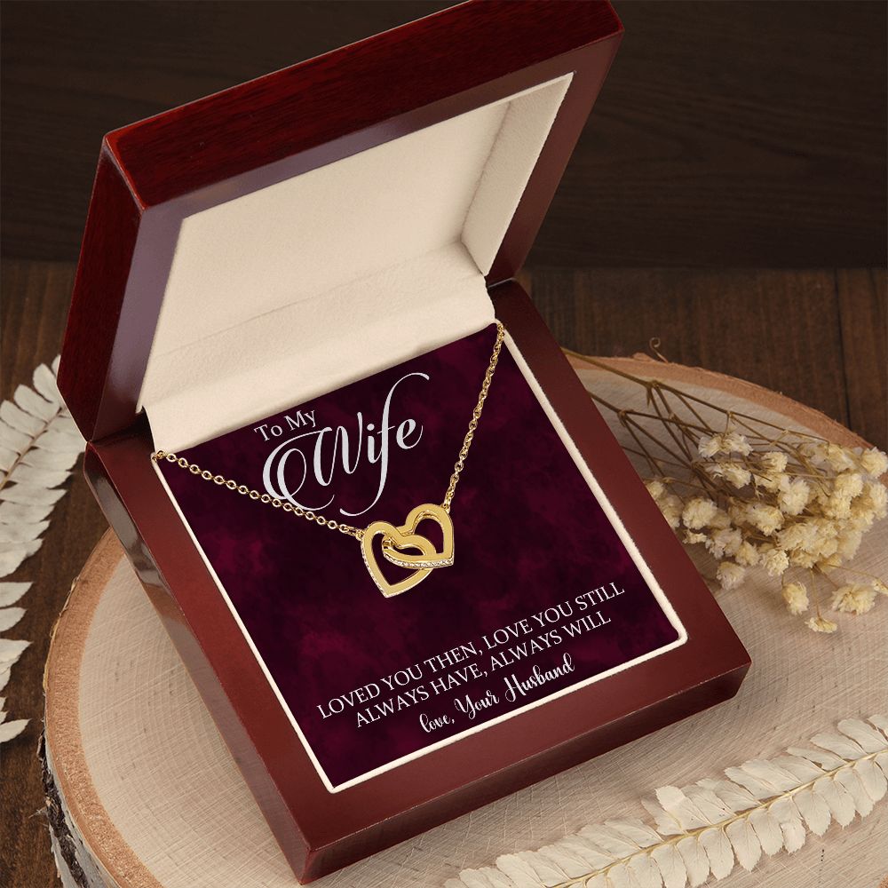 To My Wife Loved You Then Love You Still, Interlocking Hearts Necklace, For Wife With Message Card, Birthday, Valentine's Day Gift For Her