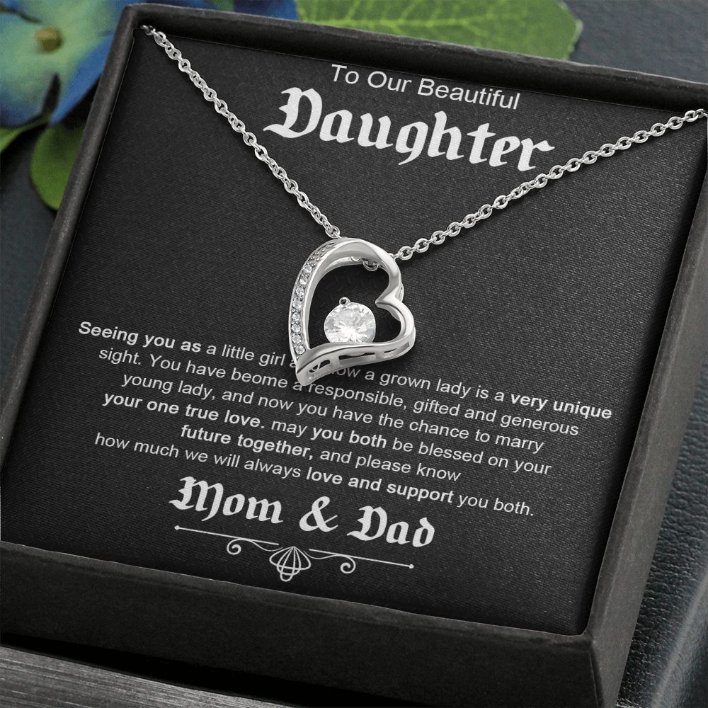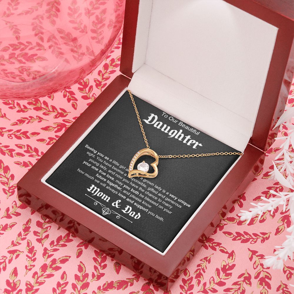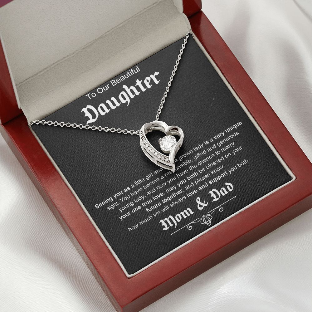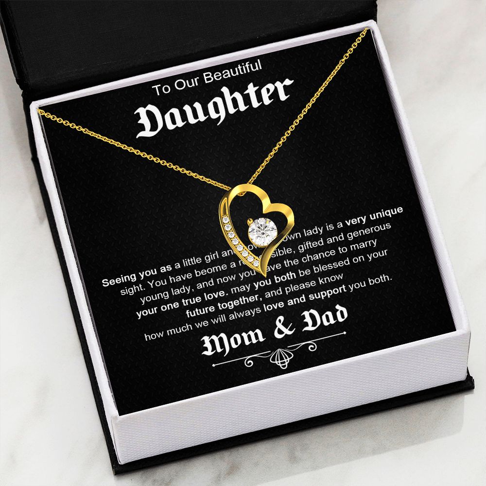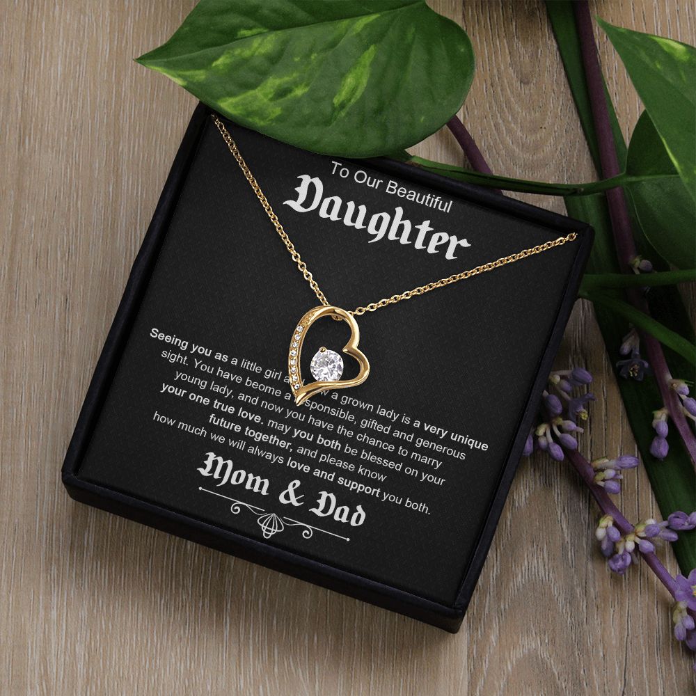 TO OUR BEAUTIFUL DAUGHTER, FOREVER LOVE NECKLACE WITH MESSAGE CARD, FROM MOM AND DAD, BIRTHDAY AND DAUGHTERS DAY GIFT FOR HER