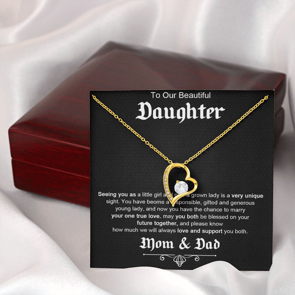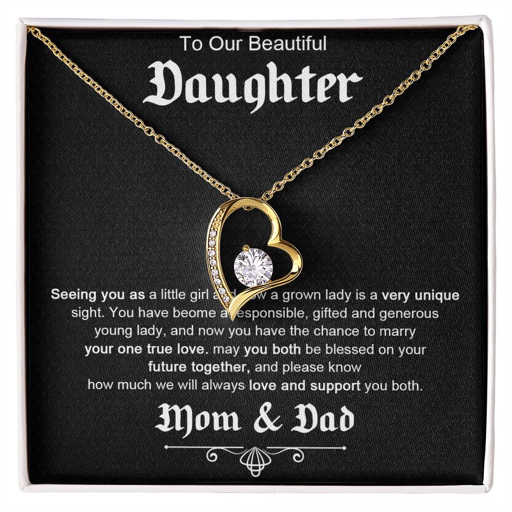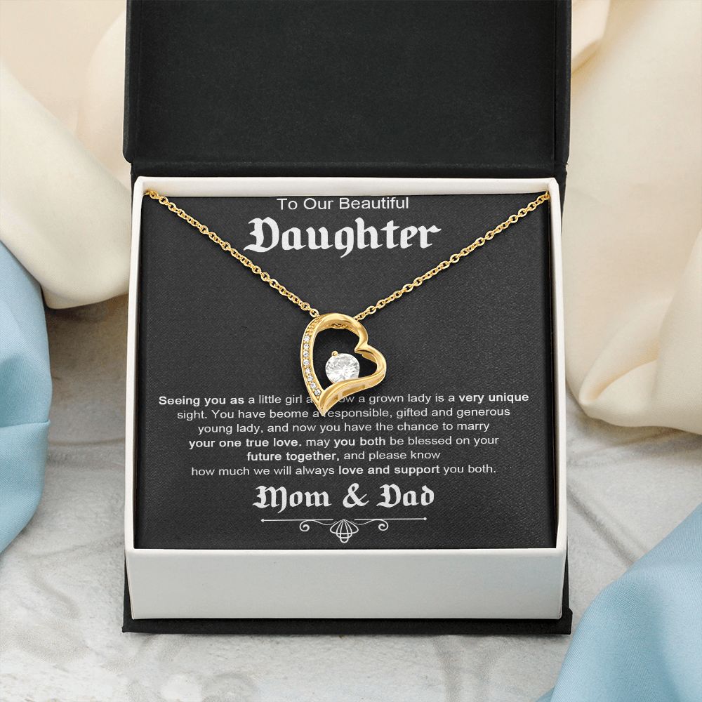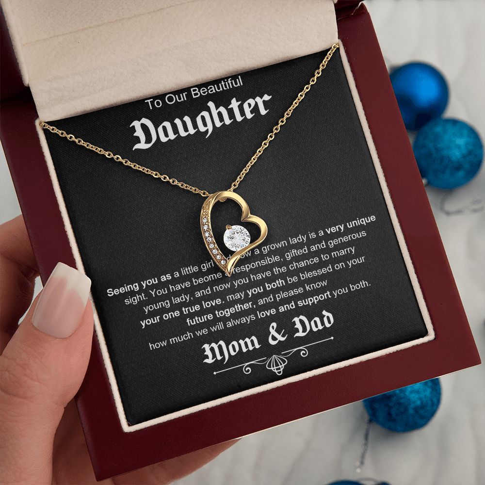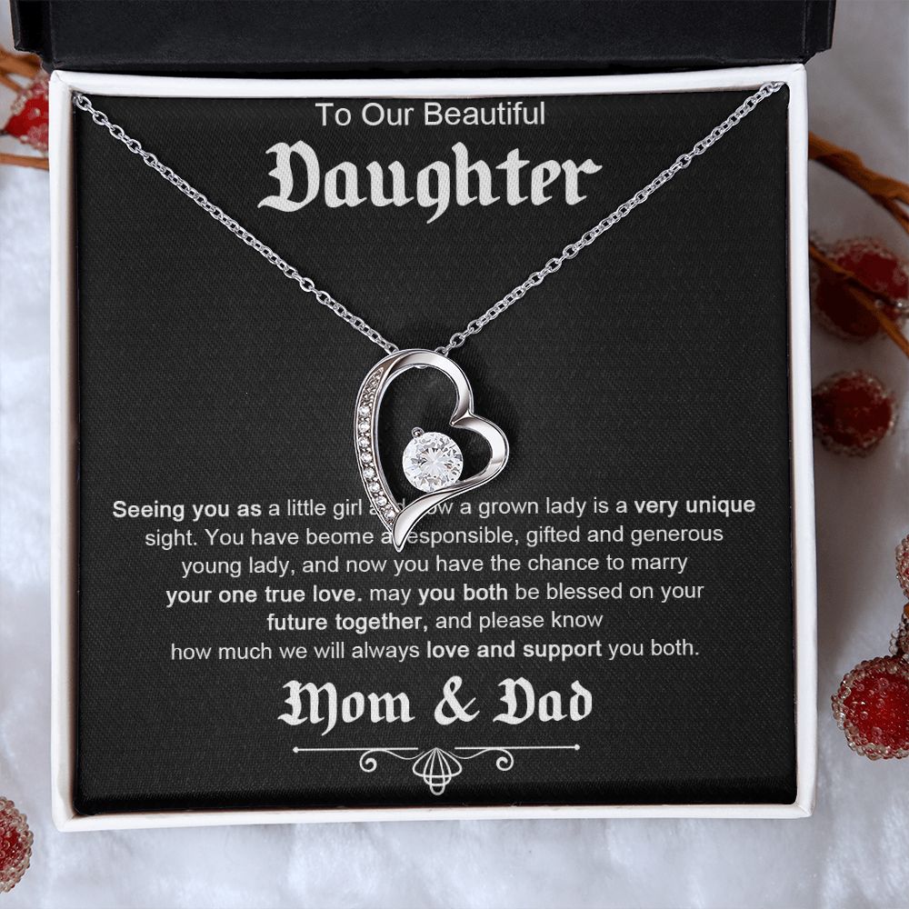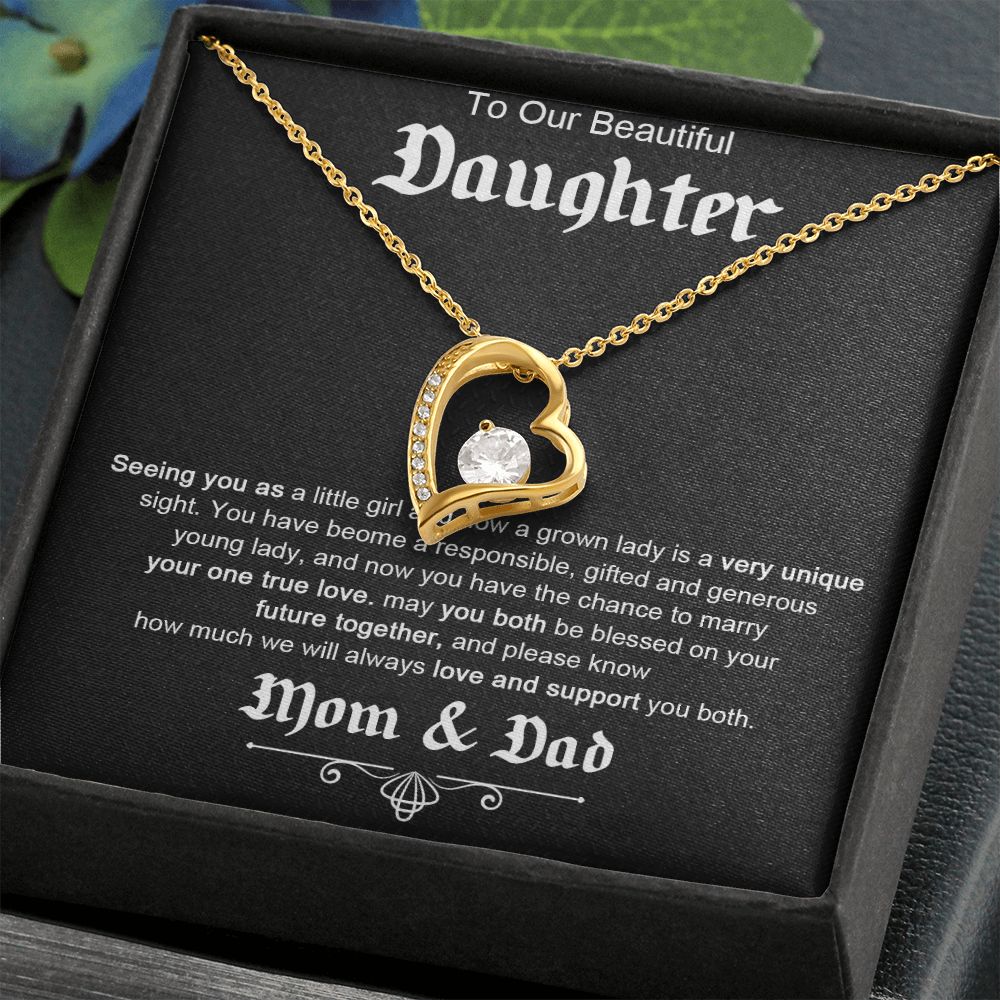 TO OUR BEAUTIFUL DAUGHTER, FOREVER LOVE NECKLACE WITH MESSAGE CARD, FROM MOM AND DAD, BIRTHDAY AND DAUGHTERS DAY GIFT FOR HER