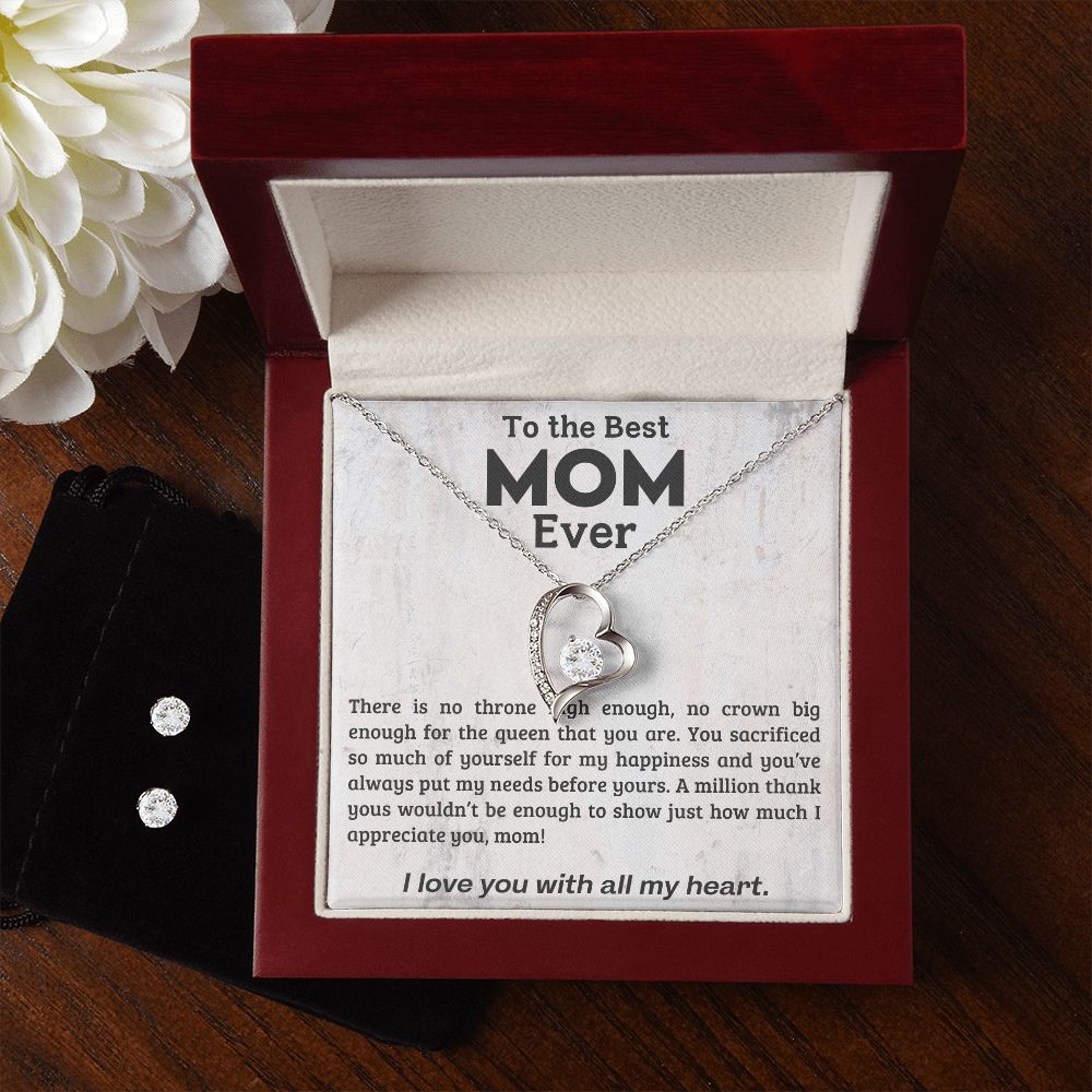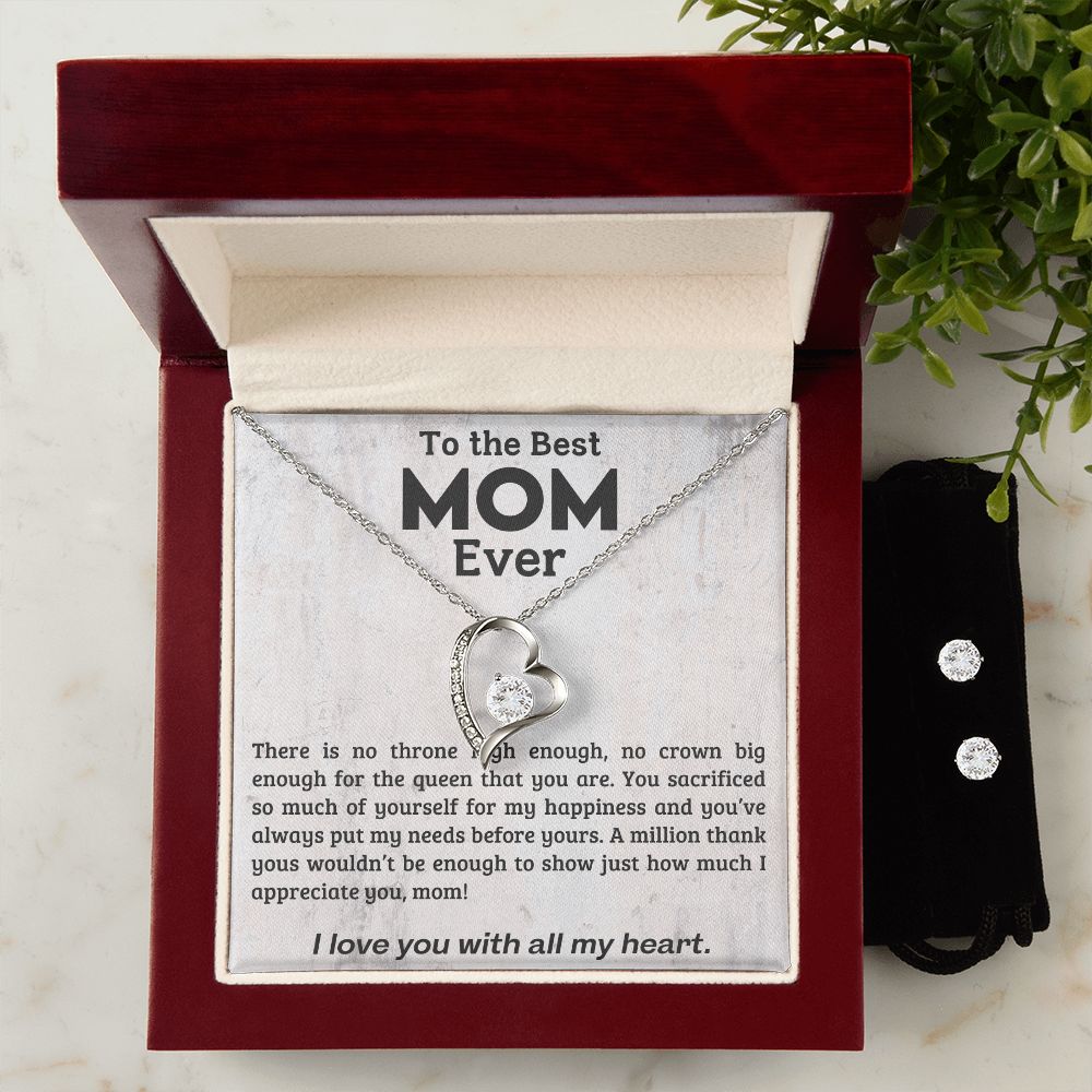 TO THE BEST MOM EVER, I LOVE YOU WITH ALL MY HEART, LOVE KNOT NECKLACE WITH MESSAGE CARD FOR MOM, BIRTHDAY, MOTHER'S DAY GIFT FOR HER