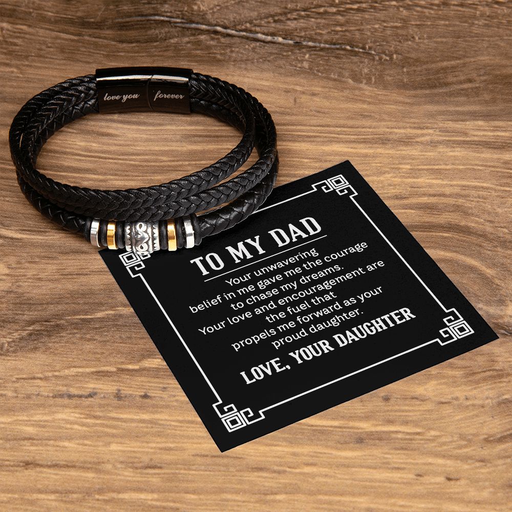 YOUR LOVE PROPELS ME FORWARD AS YOUR PROUD DAUGHTER, LOVE YOU FOREVER MEN'S BRACELET FOR DAD, FATHER'S DAY/ BIRTHDAY GIFT FOR HIM, BRACELET WITH MESSAGE CARD FOR YOUR FATHER