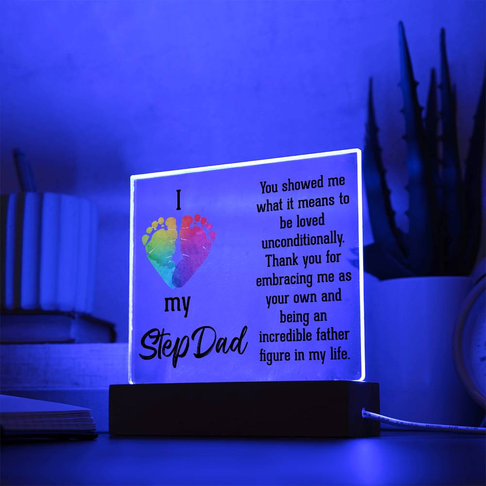 ACRYLIC PLAQUE WITH WOODEN LED BASE, GIFT FOR DAD, FATHERS DAY GIFT, DESK DECOR, DAD GIFT FROM DAUGHTER/SON