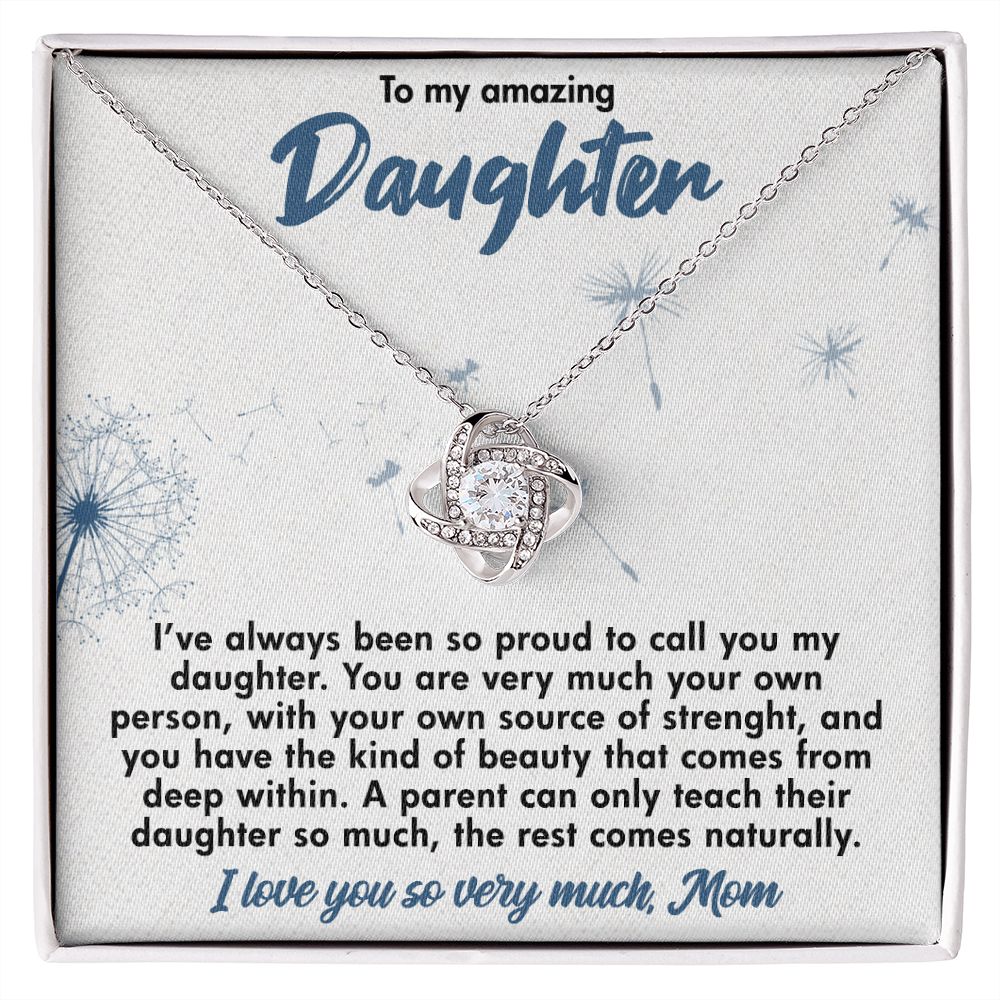 TO MY AMAZING DAUGHTER, LOVE KNOT NECKLACE WITH BEAUTIFUL MESSAGE CARD, BIRTHDAY GIFT FOR HER, UNIQUE GIFT