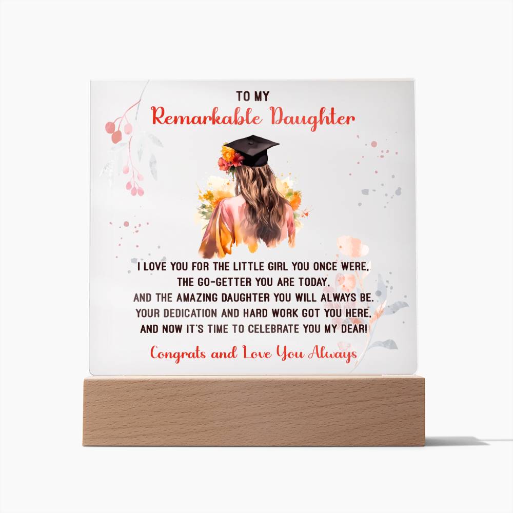 TO MY REMARKABLE DAUGHTER, ACRYLIC SQUARE PLAQUE WITH WOODEN LED BASE, CONGRATULATION ON YOUR GRADUATION, GRADUATION GIFT FOR HER