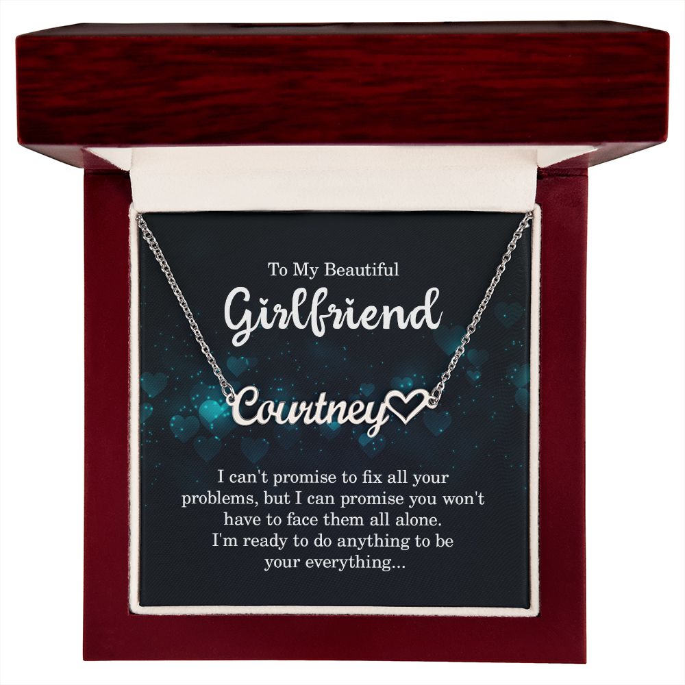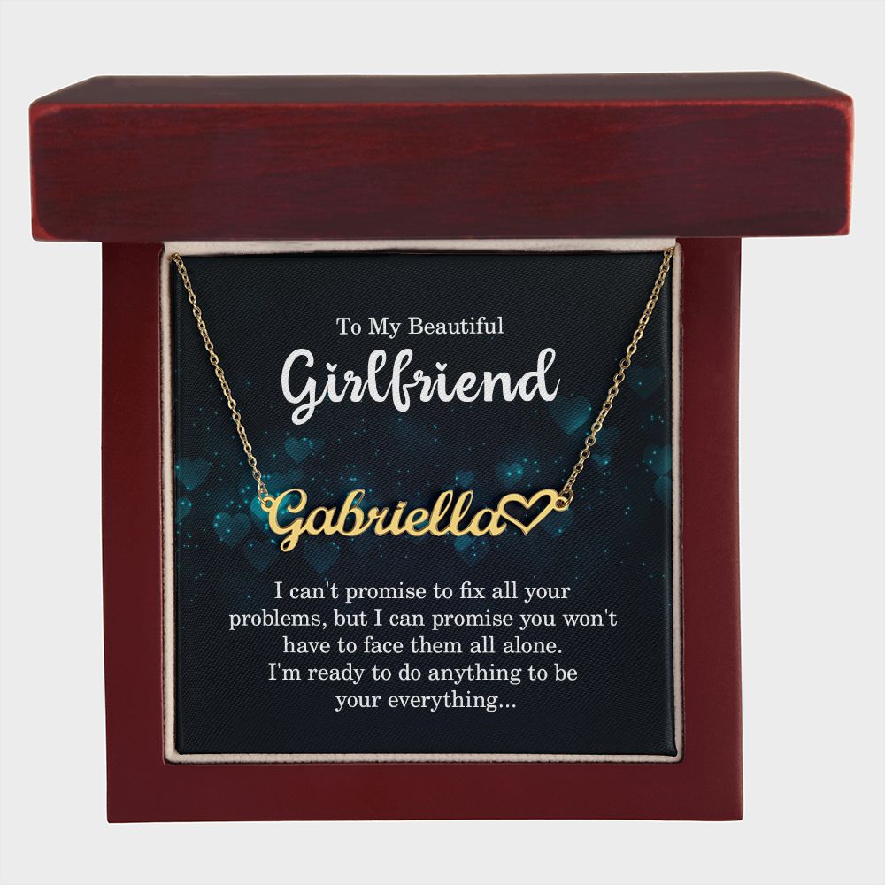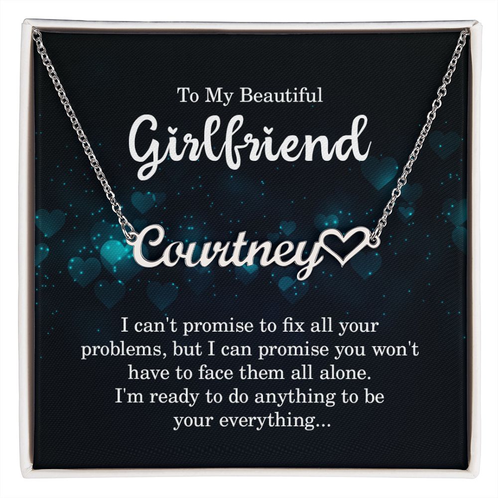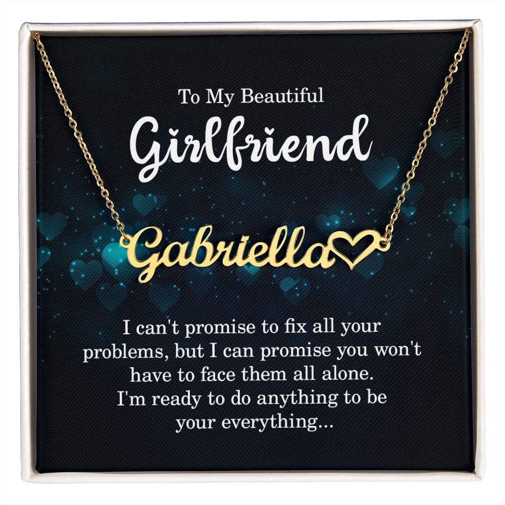 TO MY BEAUTIFUL GIRLFRIEND, NAME NECKLACE WITH HEART CHARACTER, WITH MESSAGE CARD, BIRTHDAY GIFT FOR HER, NECKLACE PENDANT FOR GIRLFRIEND FROM BOYFRIEND