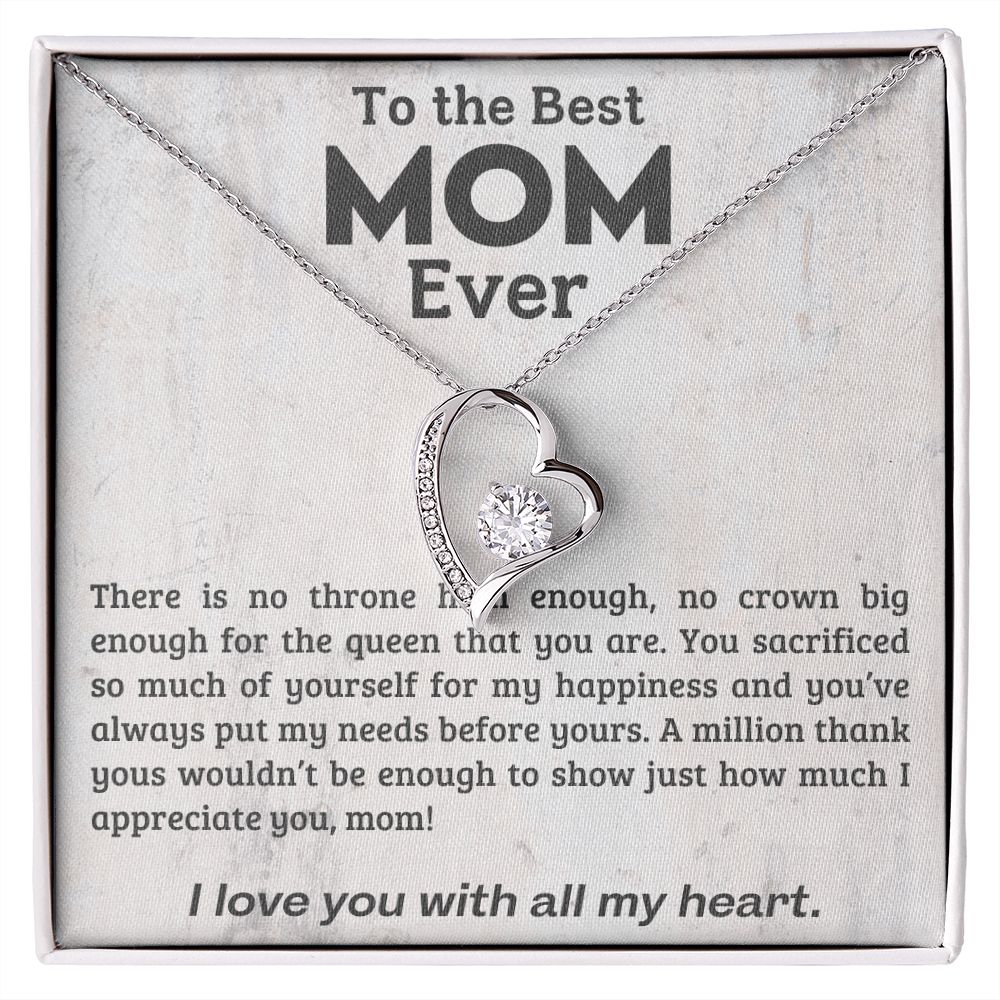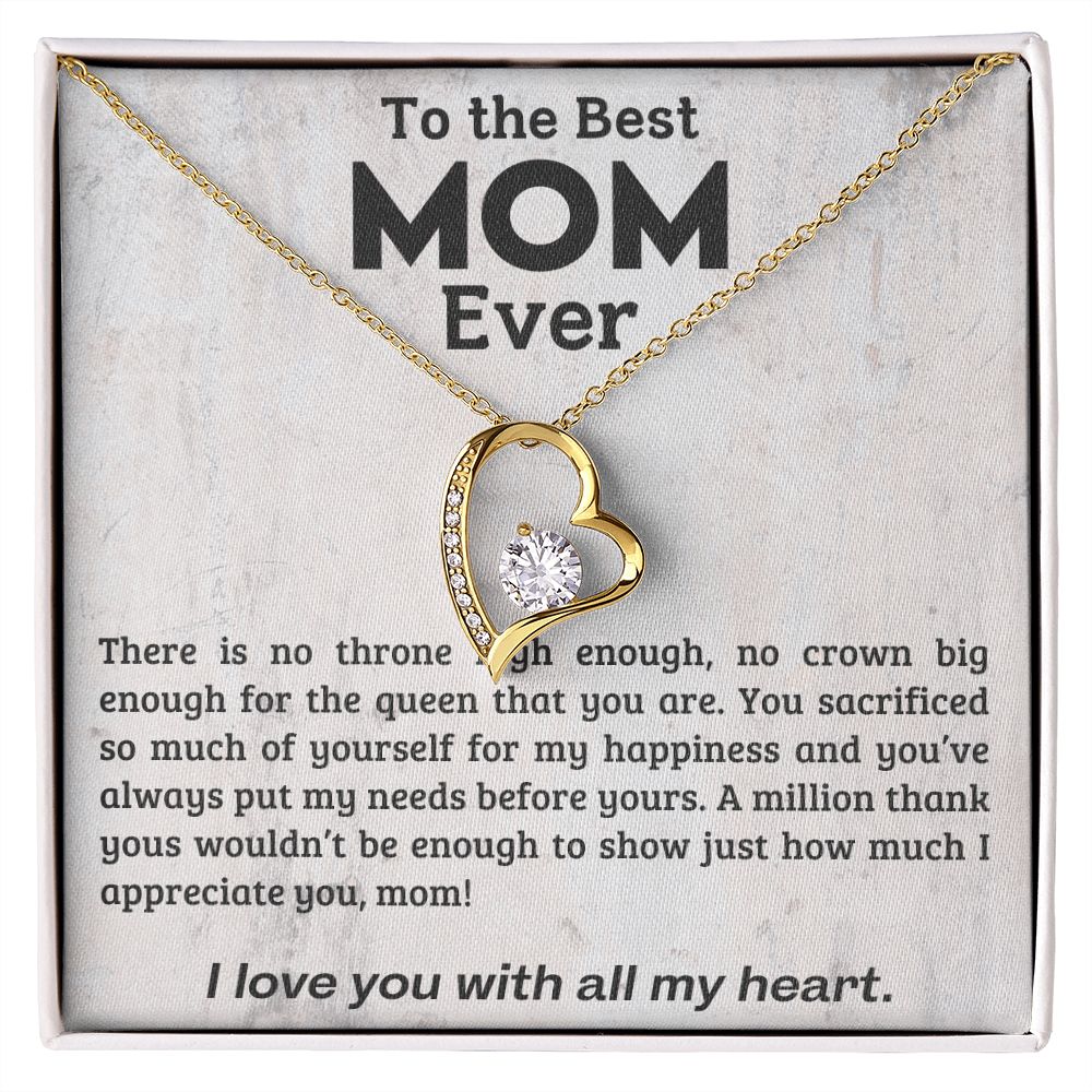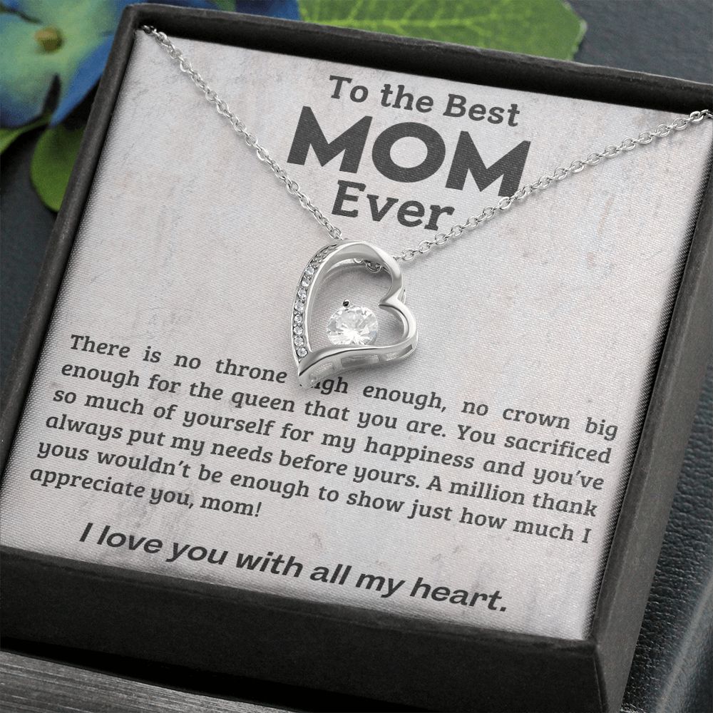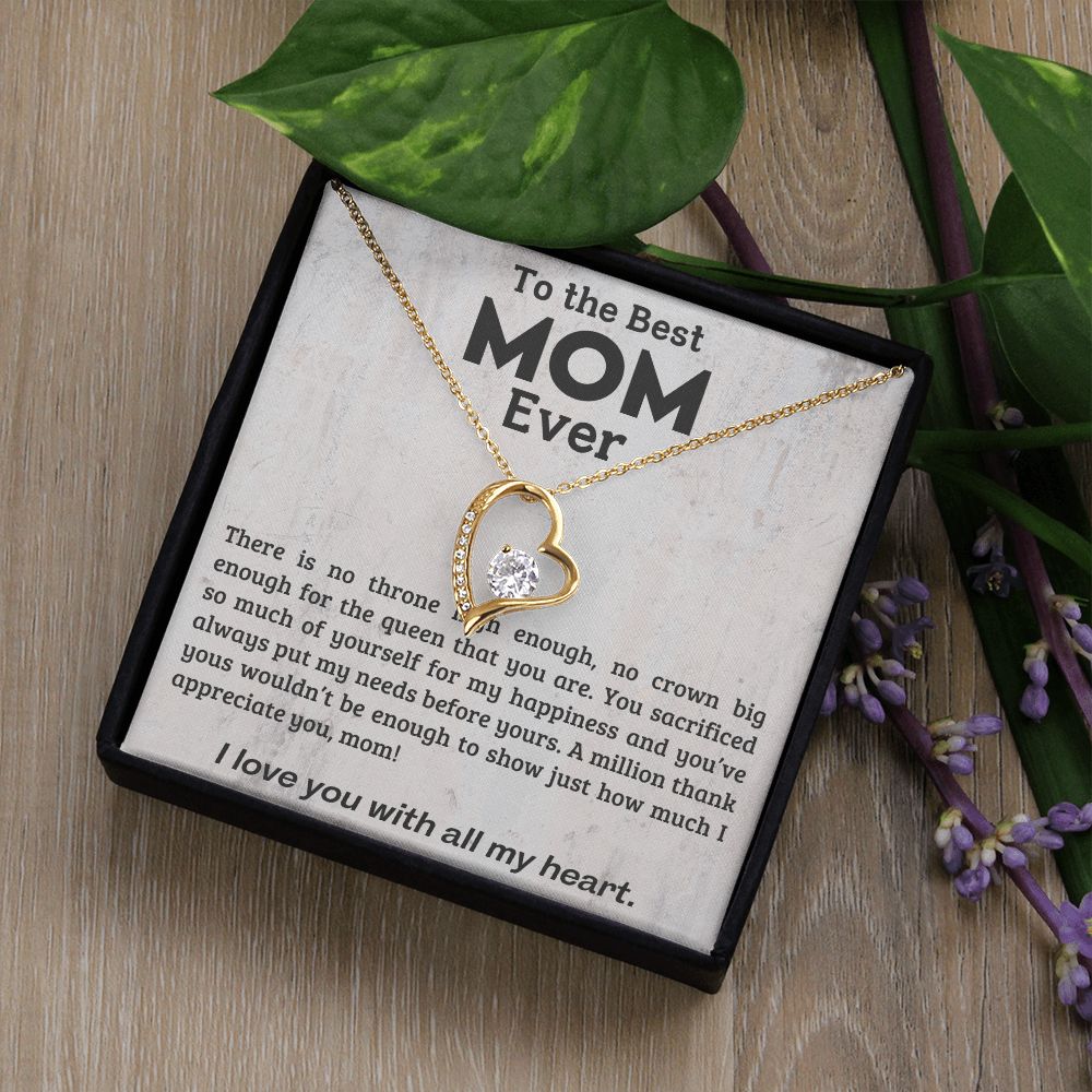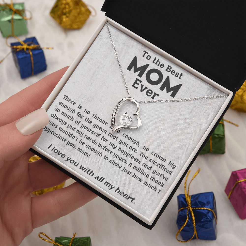 TO THE BEST MOM EVER, I LOVE YOU WITH ALL MY HEART, FOREVER LOVE NECKLACE WITH MESSAGE CARD FOR MOM, BIRTHDAY, MOTHER'S DAY GIFT FOR HER